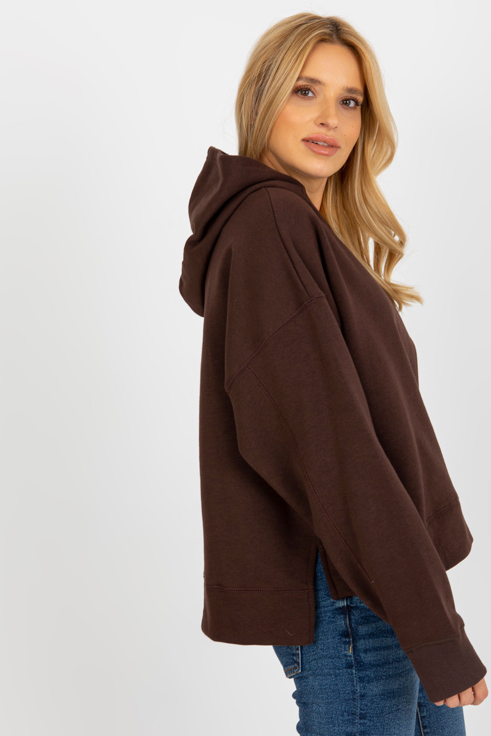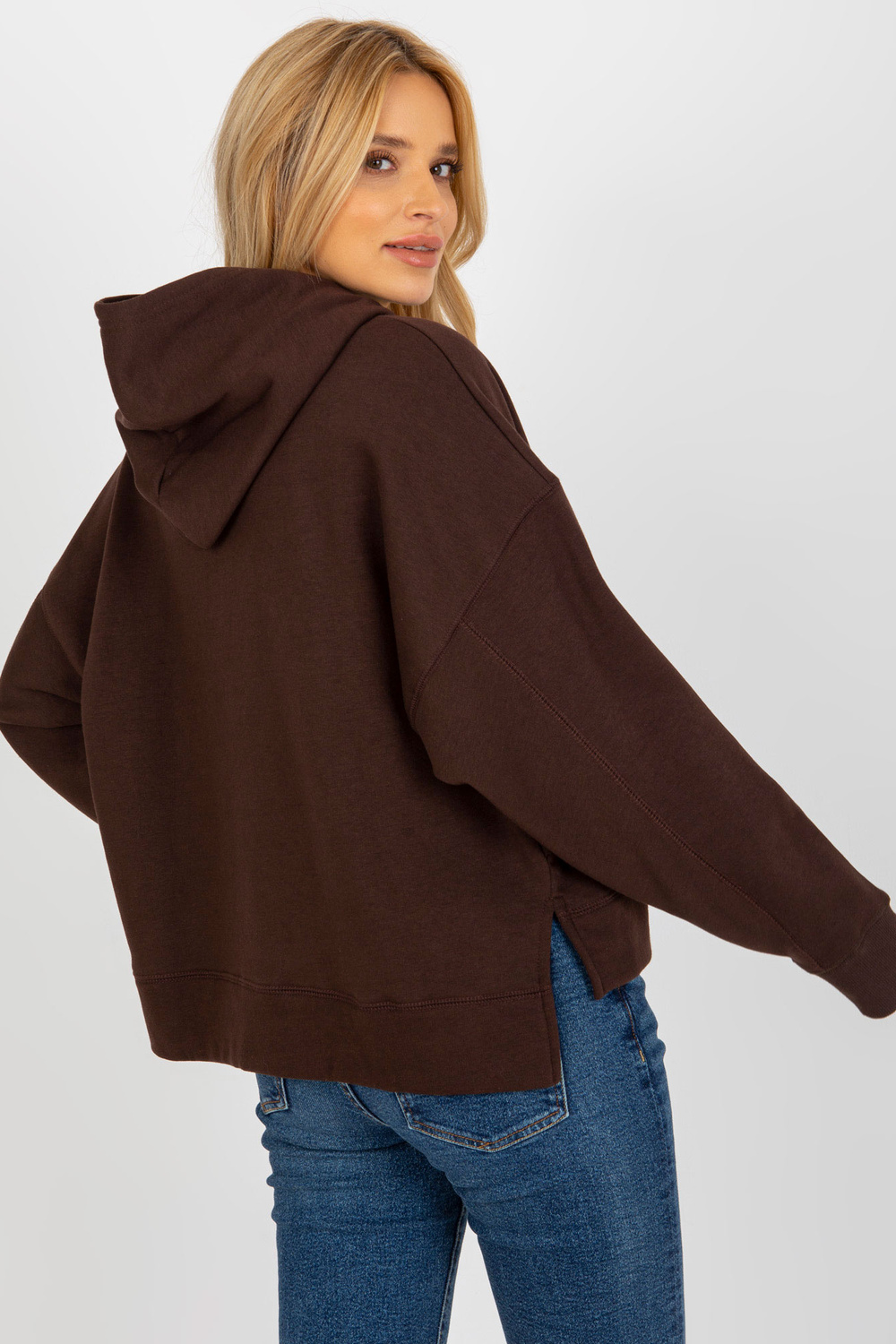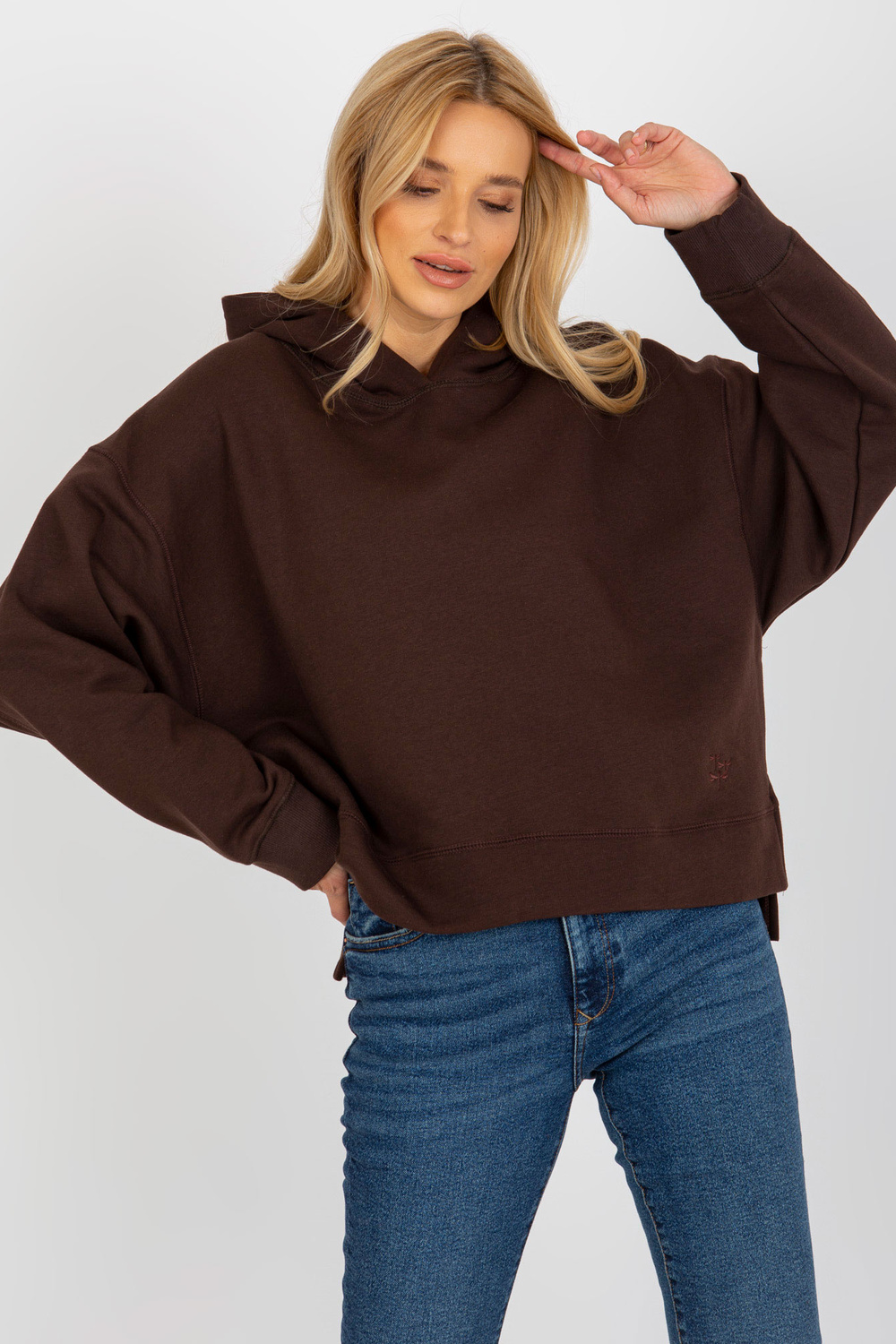 Tumepruun ülisuur kapuutsiga dressipluus MAYFLIES.