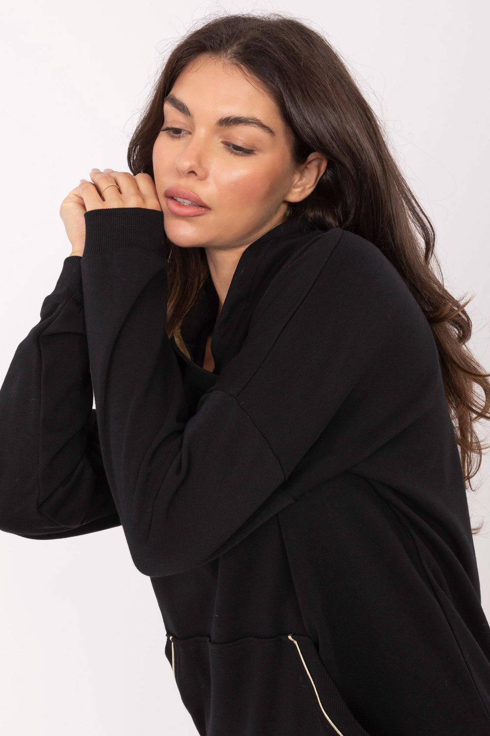 Ühe suurusega dressipluusi mõõdud: laius kaenla alt - 65 cm, kogu pikkus - 68 cm, varruka pikkus - 47 cm (õmblusest), laius puusade juures - 49 cm.