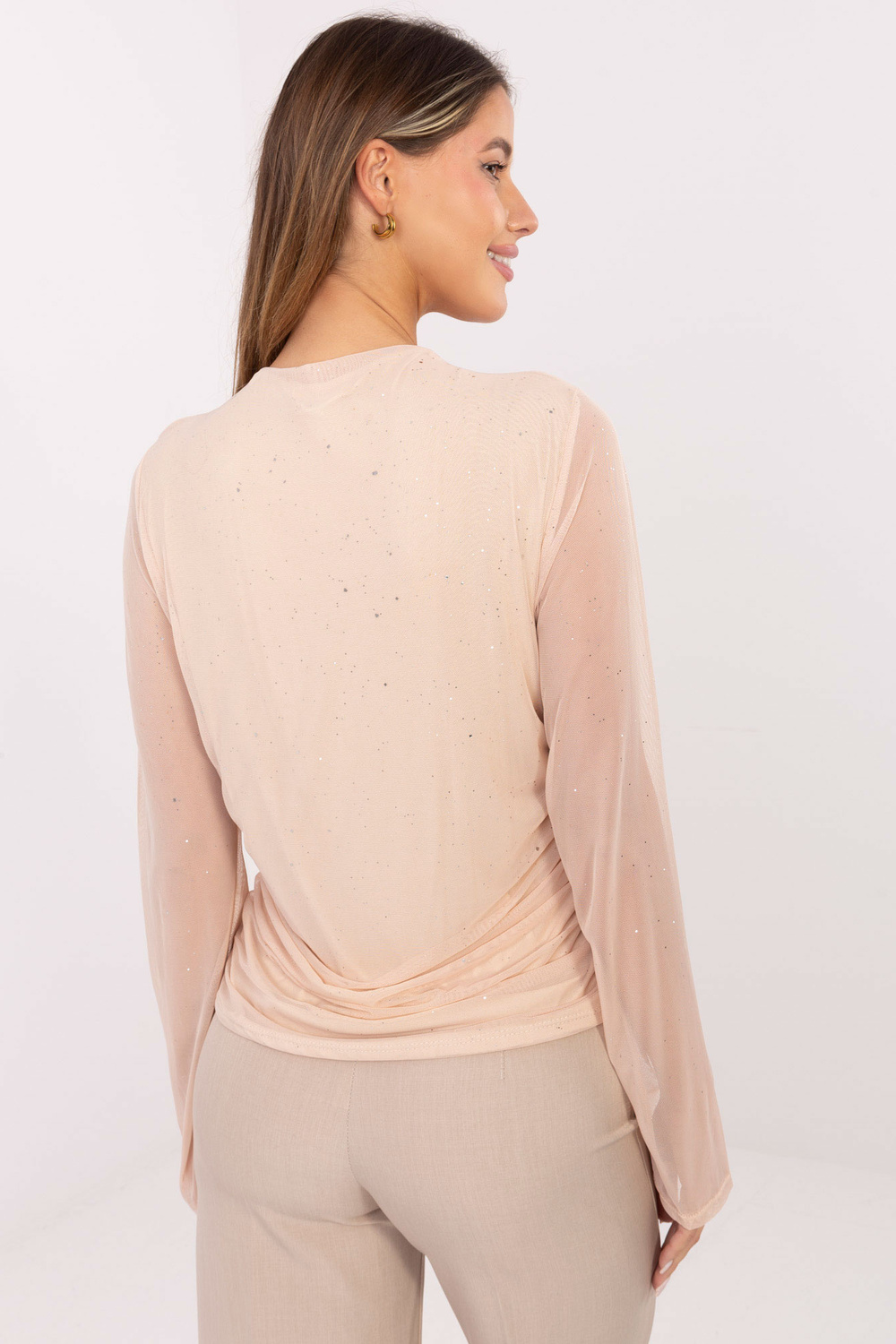 Ühe suurusega pluusi mõõtmed, mõõdetud sirgelt: laius kaenla alt - 46 cm, varruka pikkus - 71 cm (õmblusest), laius puusadel - 57 cm, kogupikkus - 64 cm (seljaosa), kogupikkus - 58 cm (esiosa).