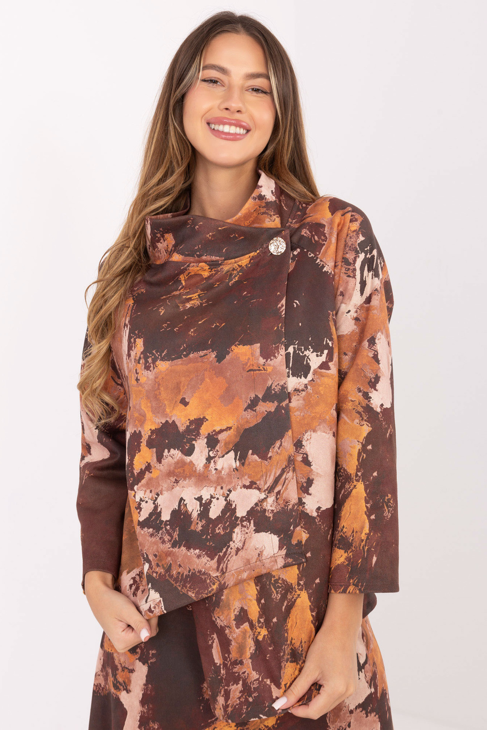 One size suurusega mantel, mõõdetuna lamedalt: laius kaenlaalustest - 58 cm, varruka pikkus - 60 cm (õmblusest), laius puusadel - 57 cm, kogupikkus - 76 cm (paremal küljel), kogupikkus - 60 cm (vasakul küljel).