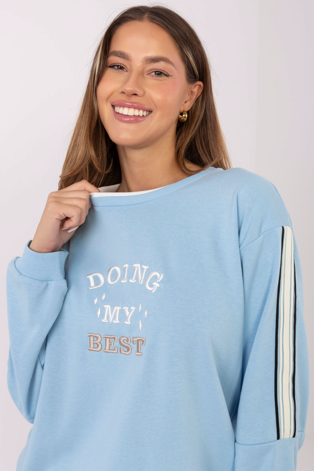 Ühe suurusega dressipluusi mõõdud, mõõdetud lamedalt: laius kaenla alt - 58 cm, varruka pikkus - 56 cm (õmblusest), laius puusadel - 48 cm, kogupikkus - 67 cm.