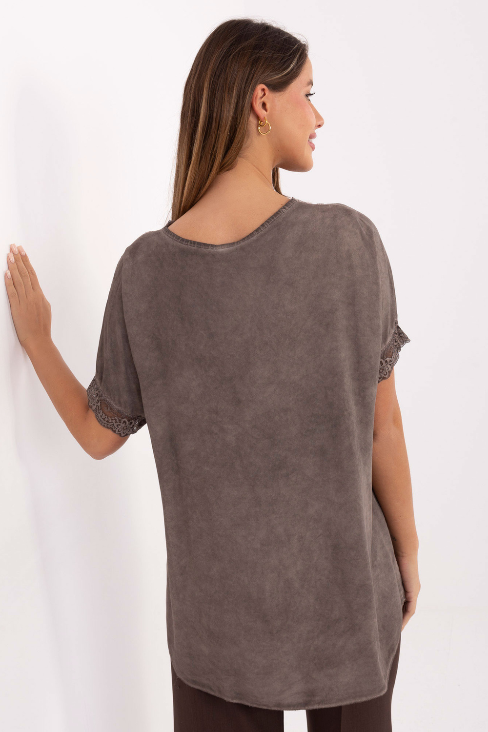 T-särgi mõõdud ühe suurusega, mõõdetud laotatult: laius kaenla alt – 64 cm, kogupikkus – 76 cm, laius puusade juures – 65 cm, varruka pikkus – 29 cm.