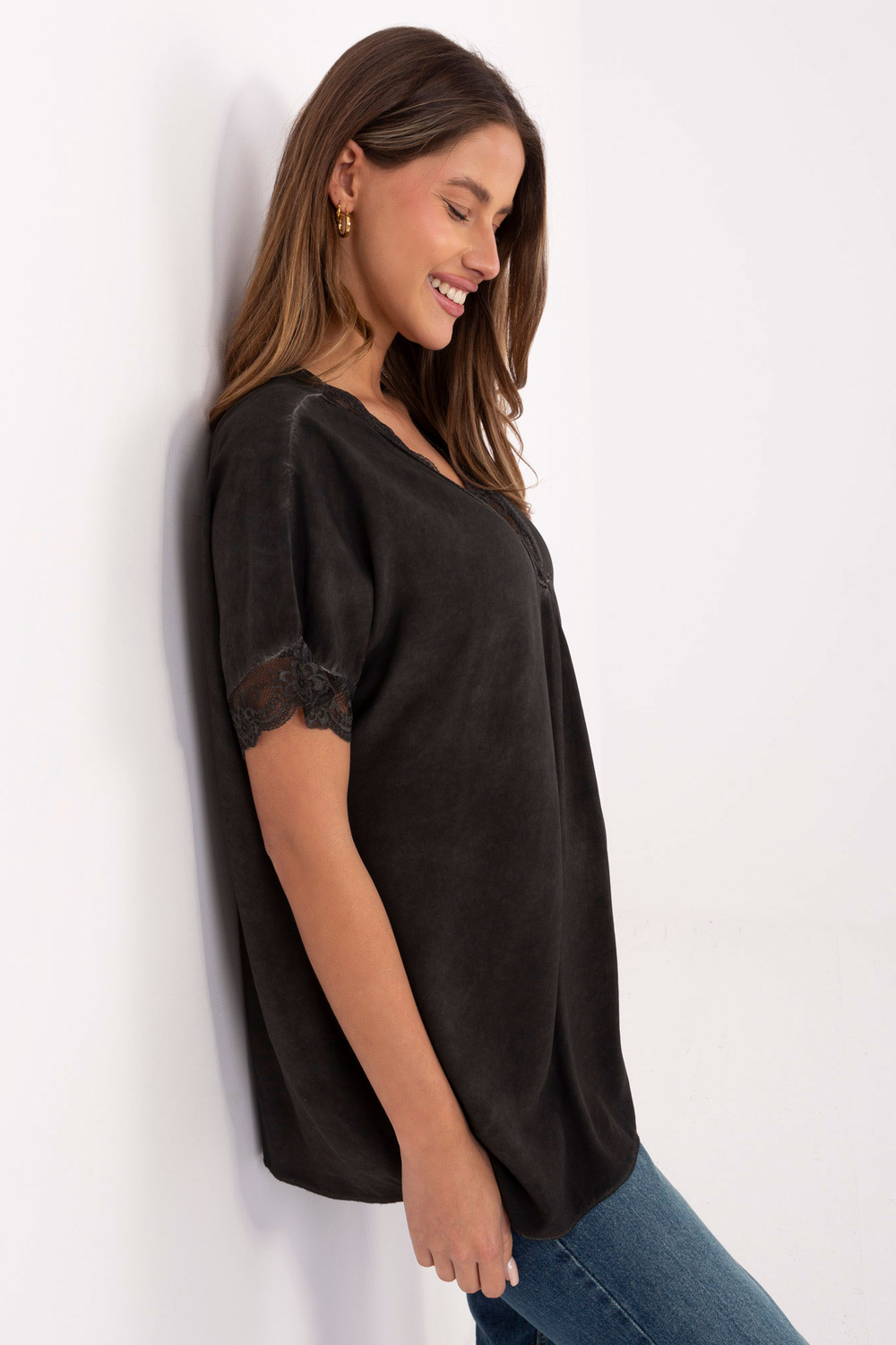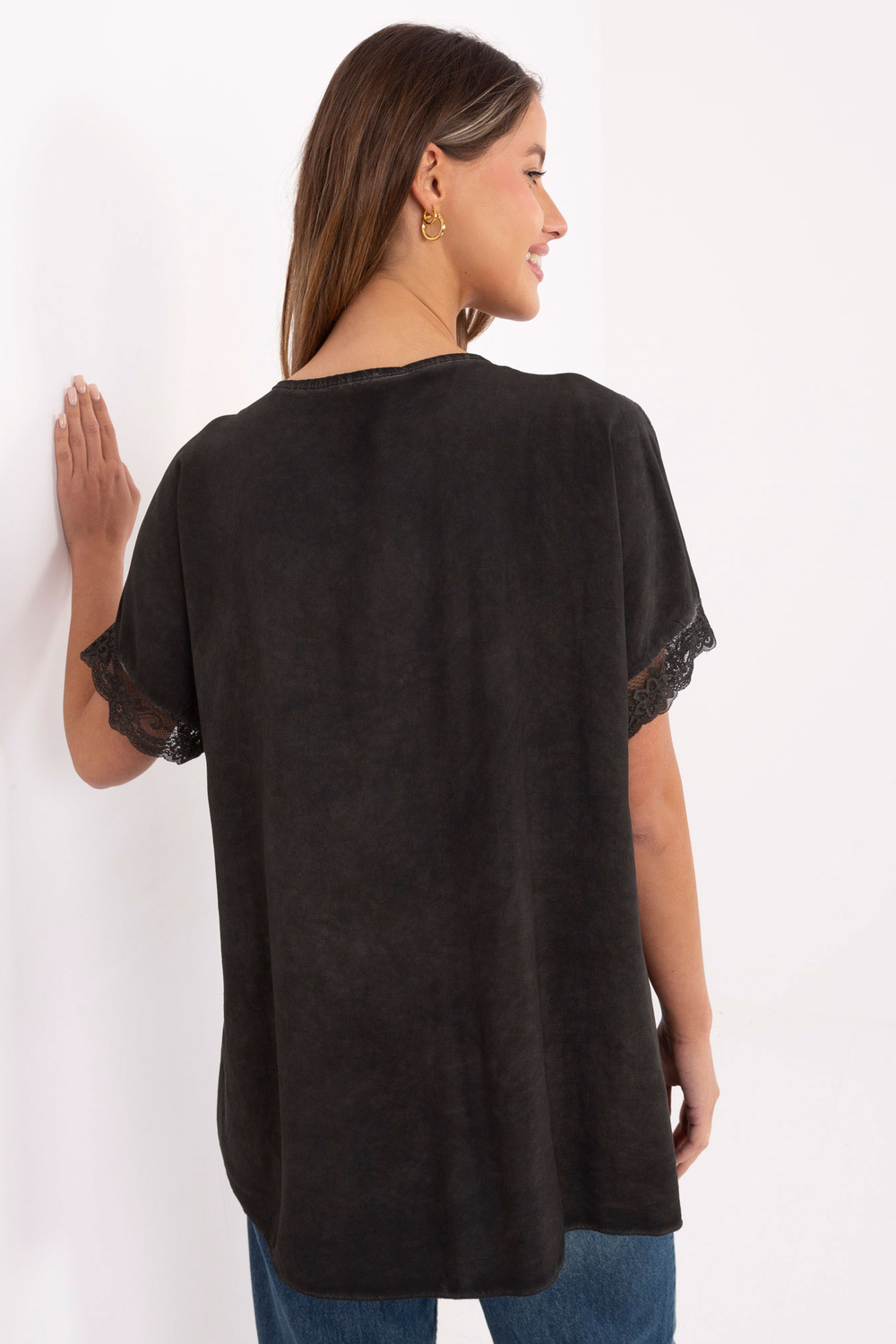 Ühesuuruse pluusi mõõdud sirgelt mõõdetuna: laius kaenla alt - 64 cm, kogu pikkus - 76 cm, puusade piirkonna laius - 65 cm, varruka pikkus - 29 cm.