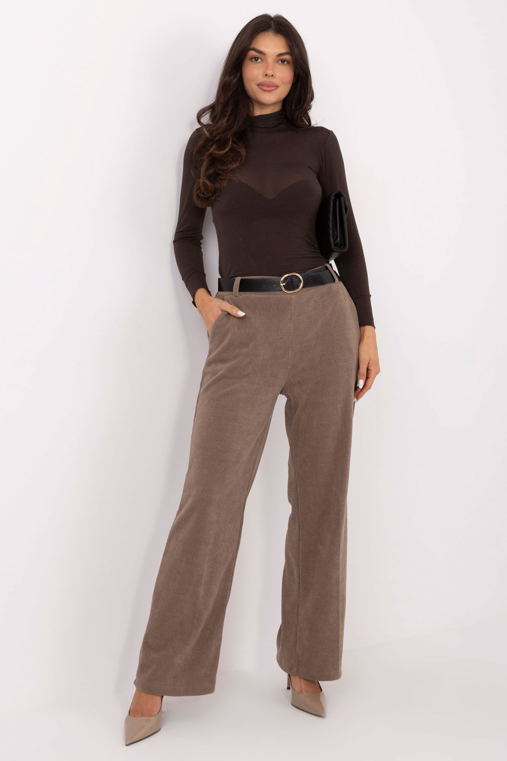 Modell kannab ühte suurust riiet. Modielli mõõtmed: pikkus 173 cm, rind 85 cm, vöö 62 cm, puusad 95 cm.