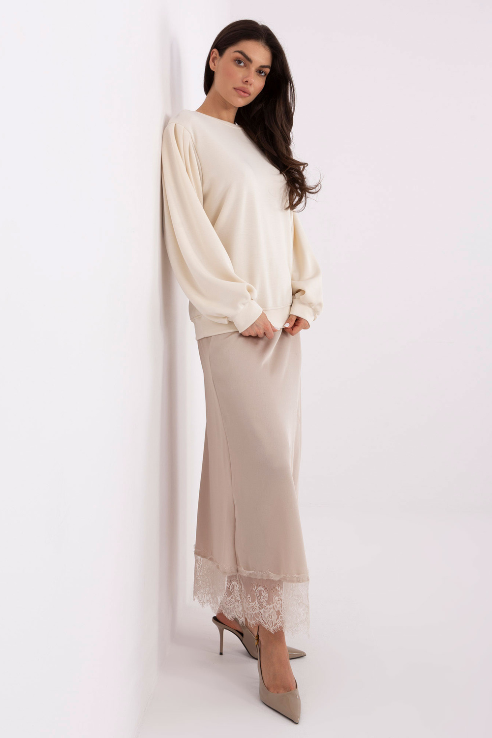 Model kannab ühesuurust riietust. Mudeli mõõdud: pikkus 173 cm, rind 85 cm, talje 62 cm, puusad 95 cm.