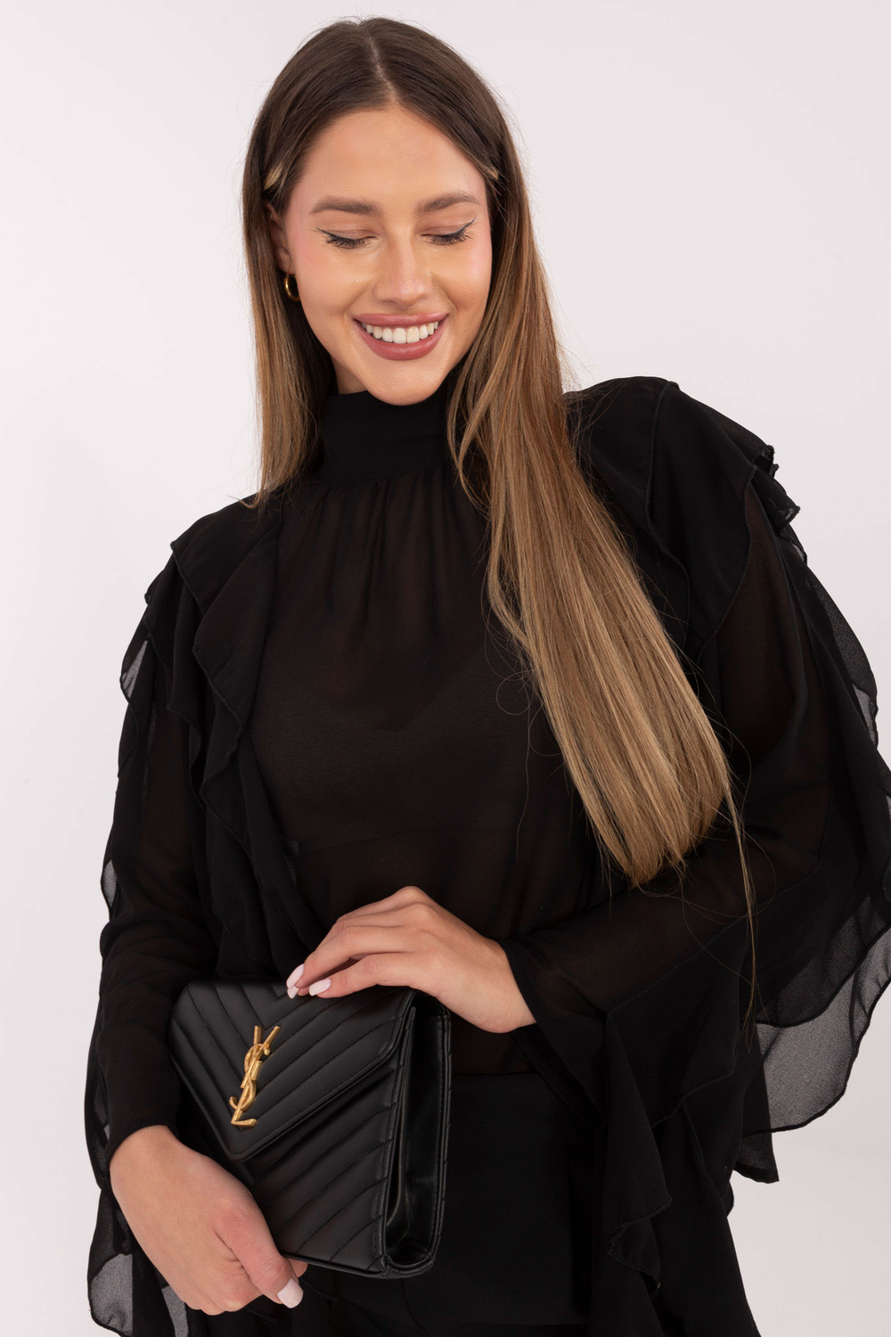 Ühesuuruse pluusi mõõtmed mõõdetuna sirgelt: laius kaenla alt - 72 cm, kogu pikkus - 59 cm, alaosa laius - 72 cm, varruka pikkus - 63 cm.