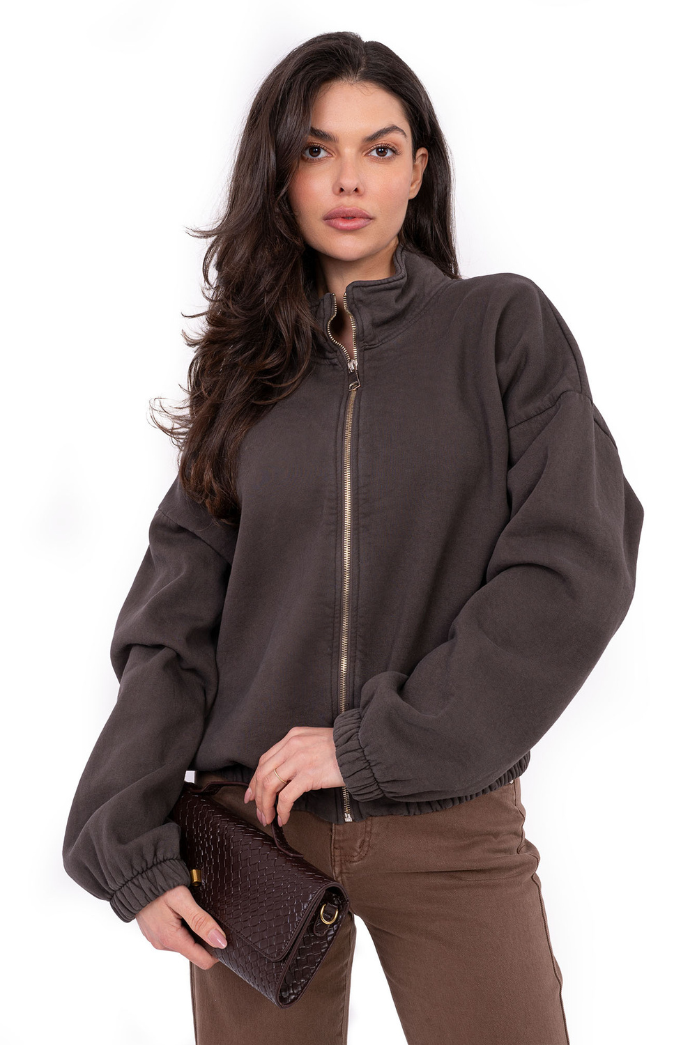 Ühesuuruse dressipluusi mõõtmed mõõdetuna lamades: laius kaenla alt - 69 cm, varruka pikkus - 55 cm, alaosa laius - 48 cm, kogupikkus - 61 cm.