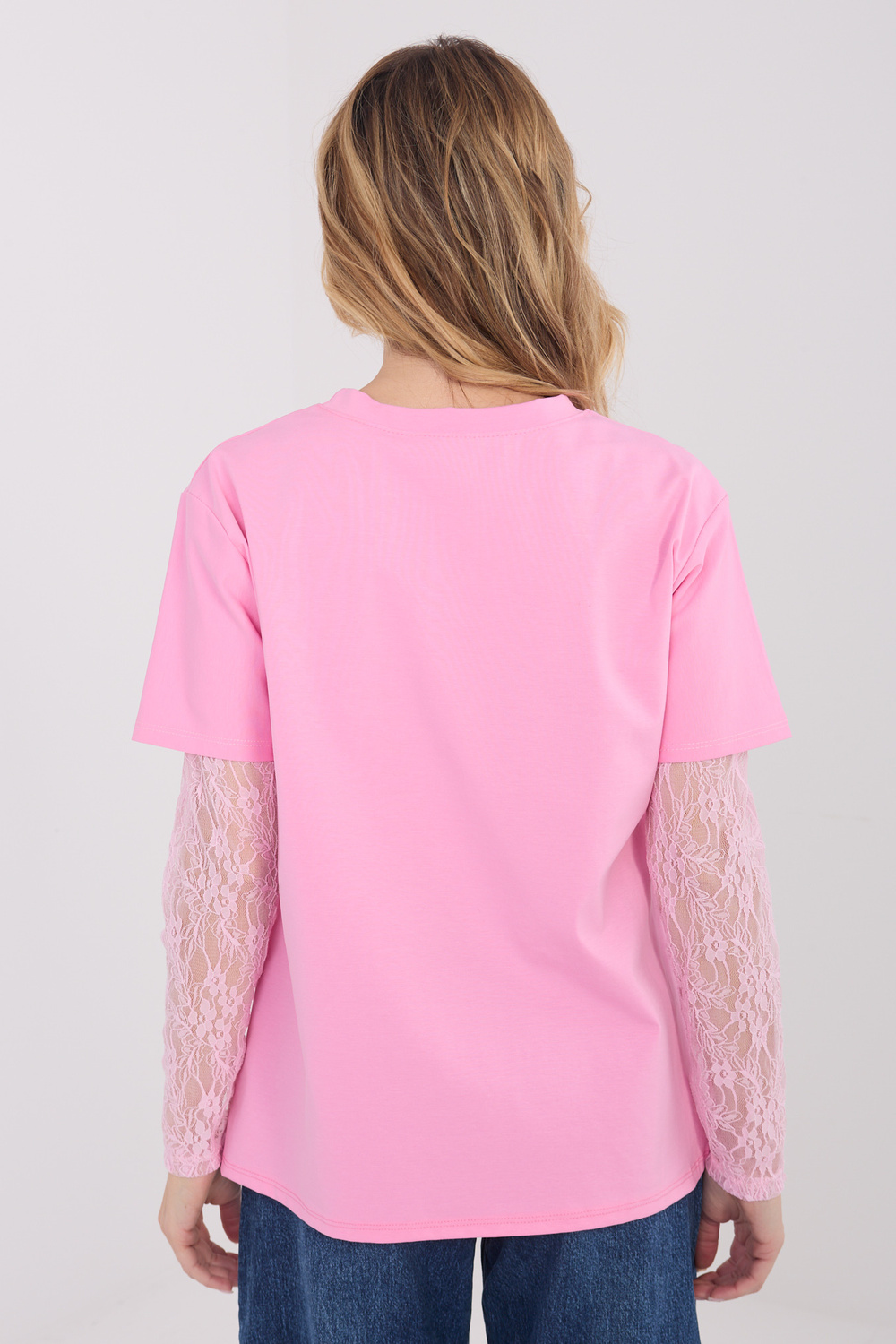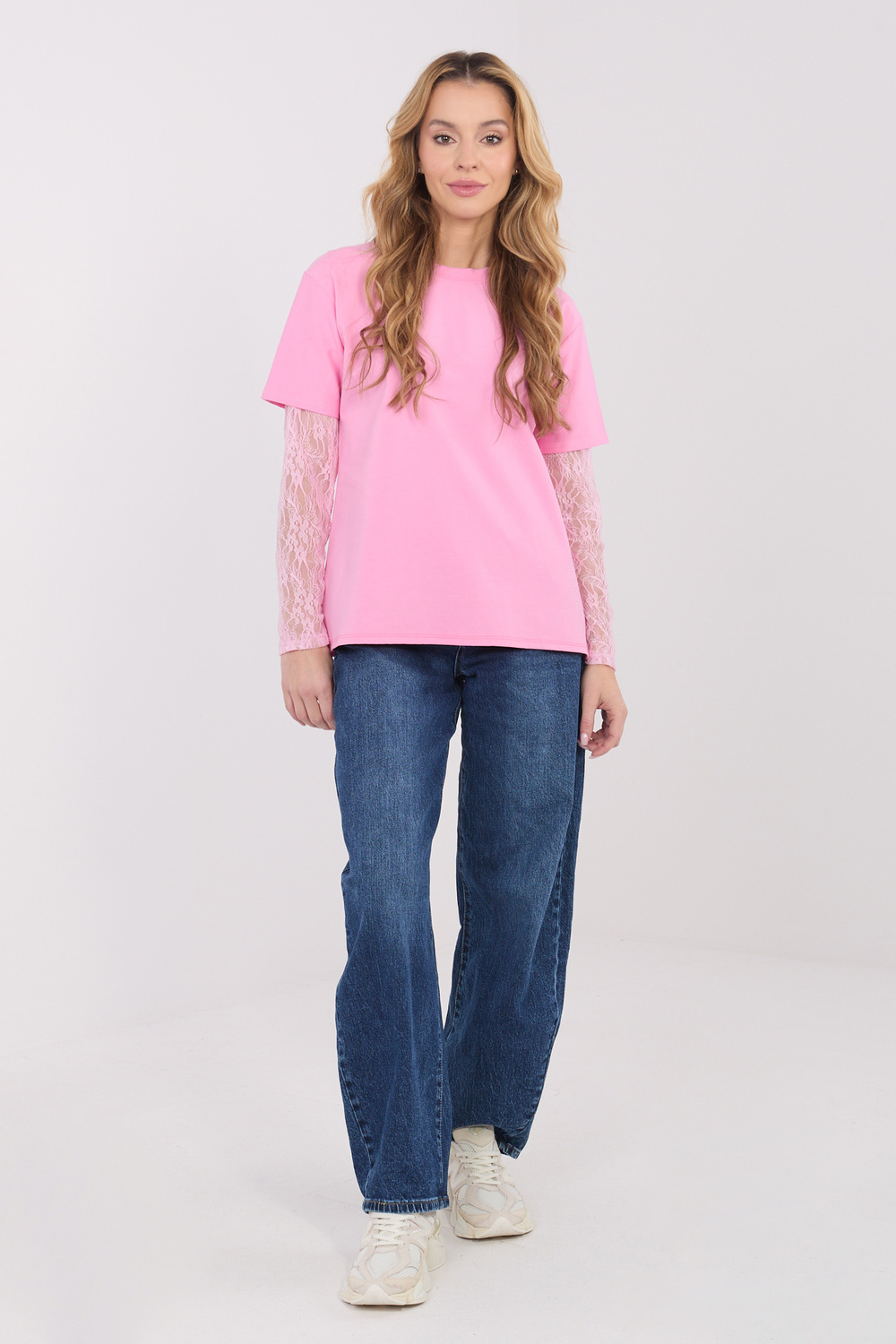 Model kannab ühe suurusega riietust. Mudeli mõõdud: pikkus 169 cm, rind 88 cm, talje 68 cm, puusad 89 cm.