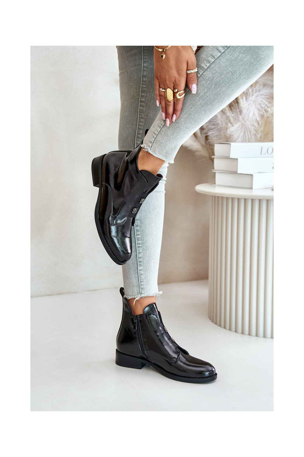lakiefektiga Soojad saapad Lossi laiade kontsadega S.Barski HY42-717 must värv