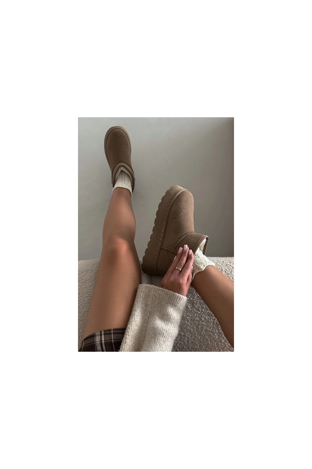 Women's Snow Boots On Platform Insulated With Fur Khaki Vesirae