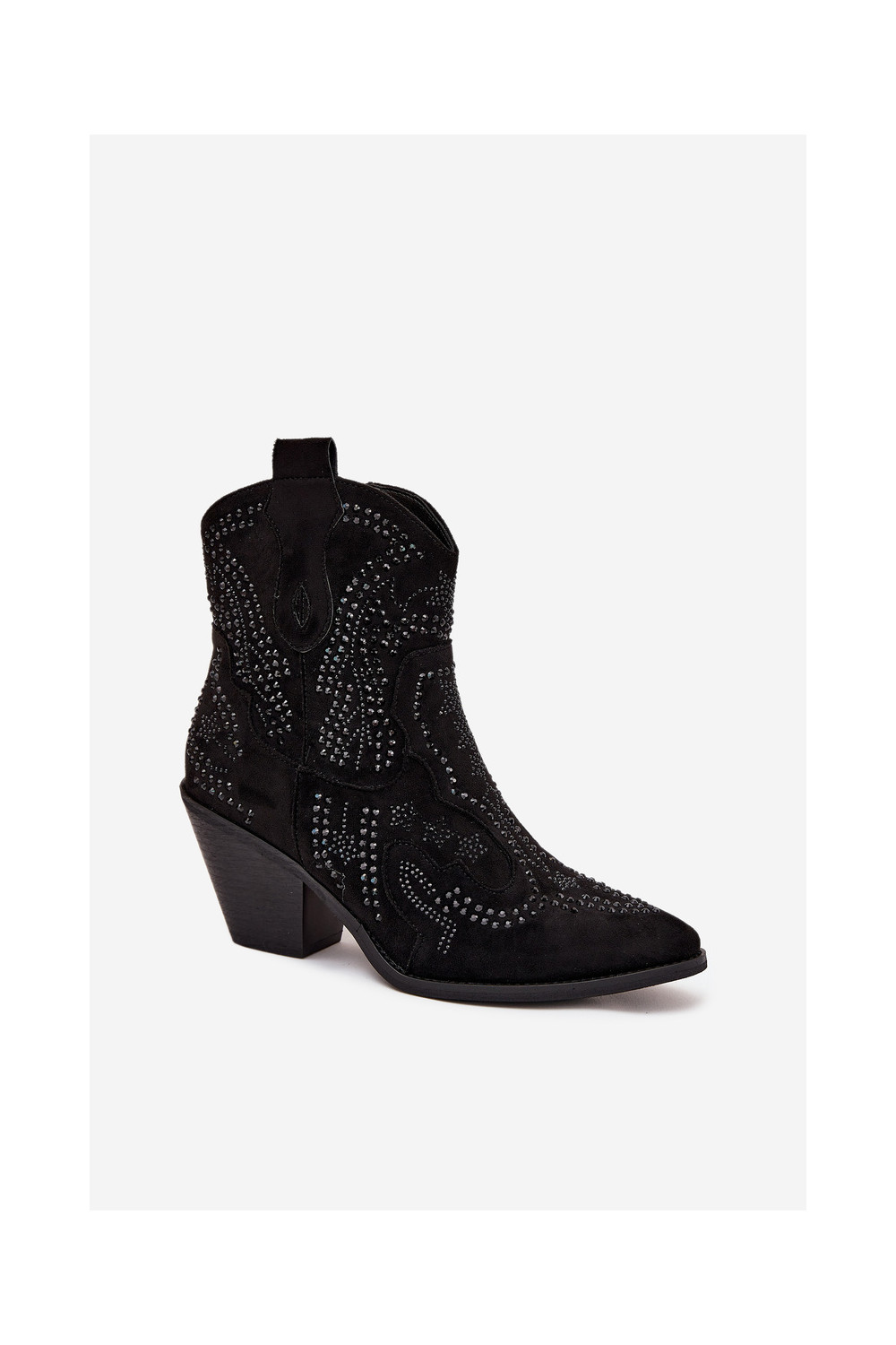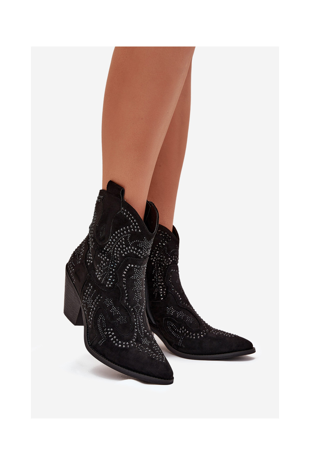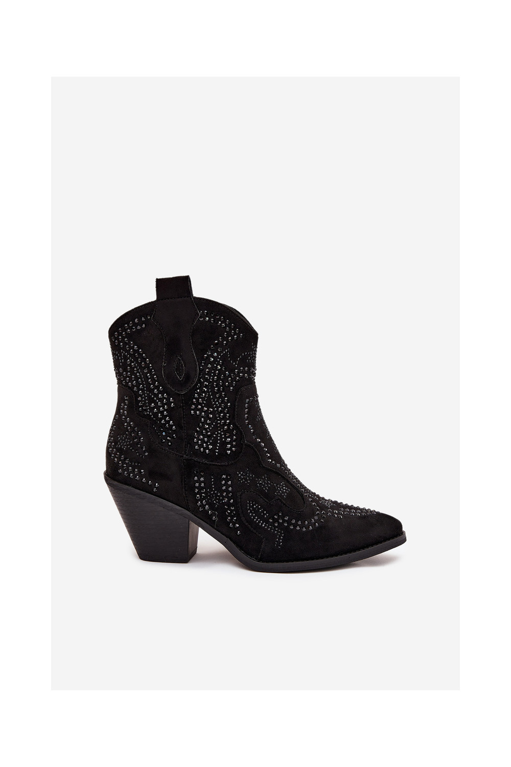 Soojustatud naiste cowboy-stiilis saapad kaunistustega, musta värvi Lelira