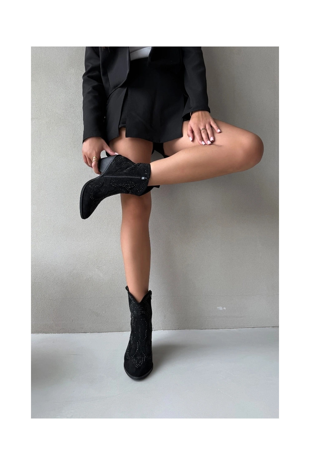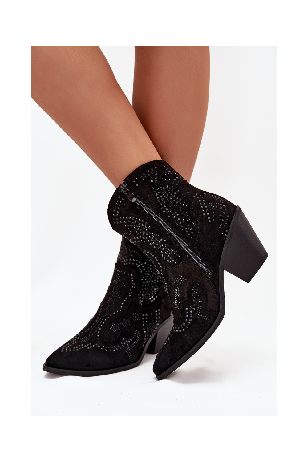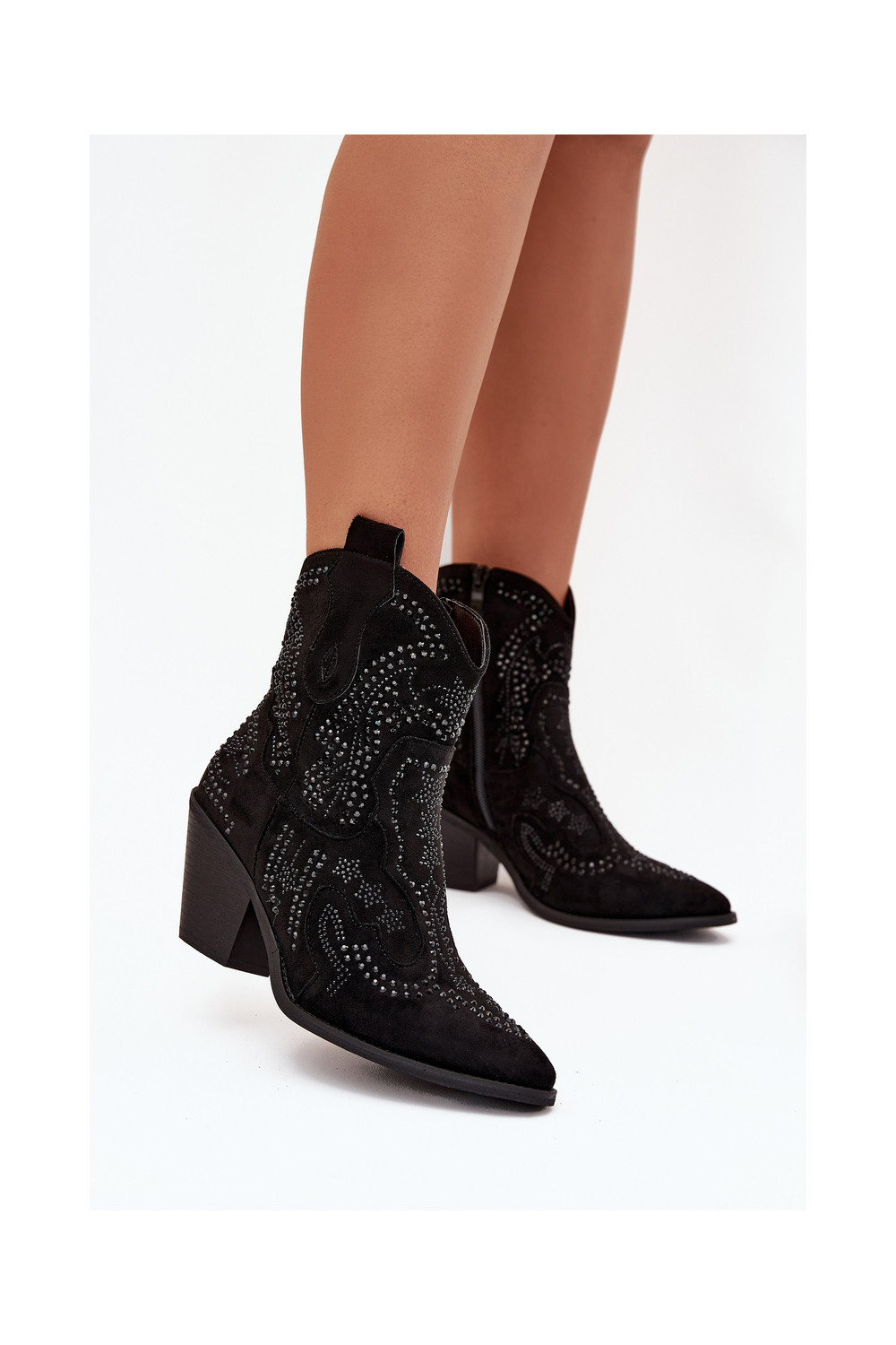 Soojustatud naiste cowboy-stiilis saapad kaunistustega, musta värvi Lelira