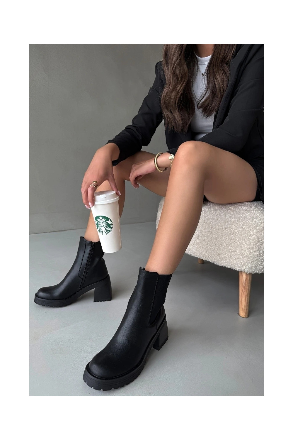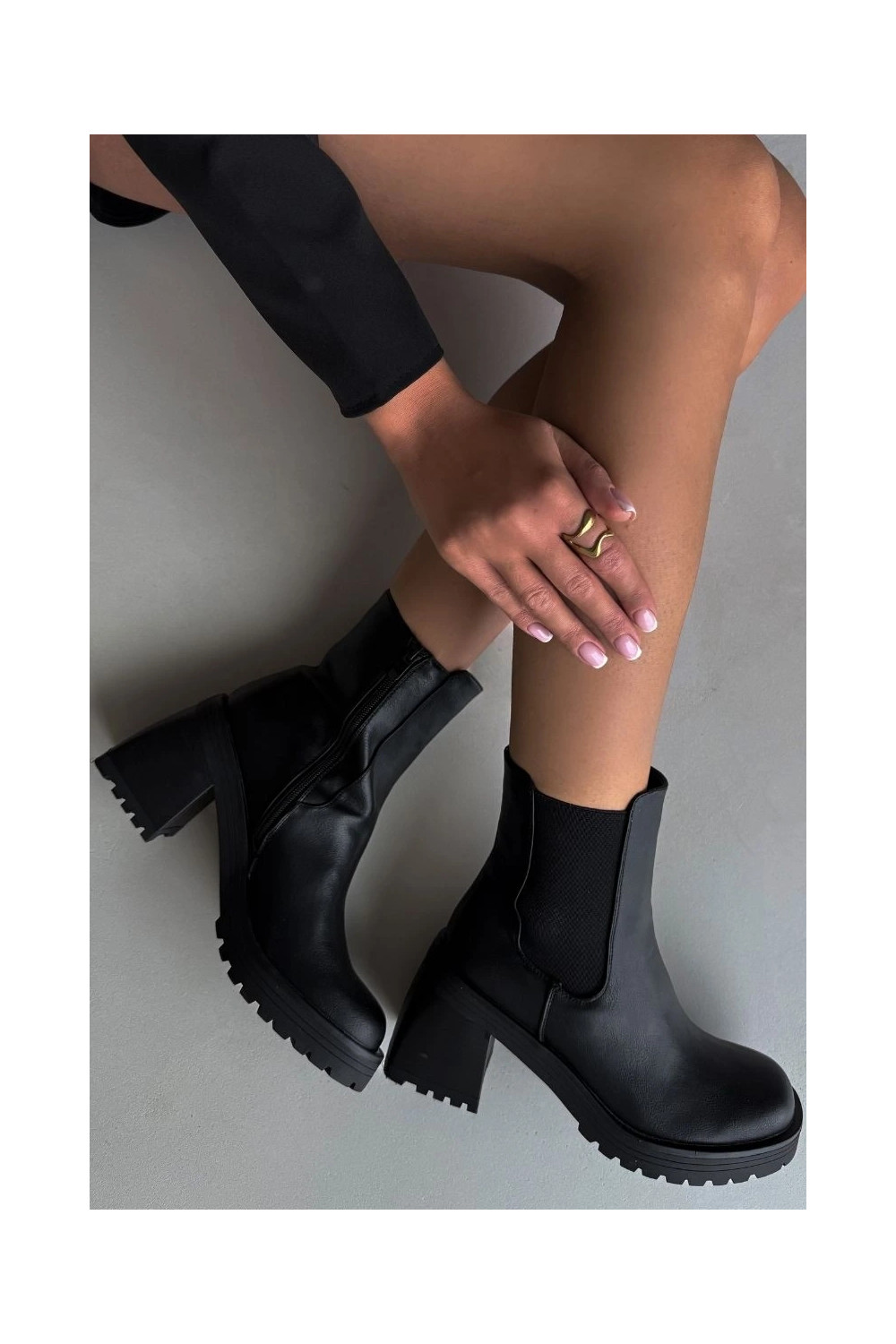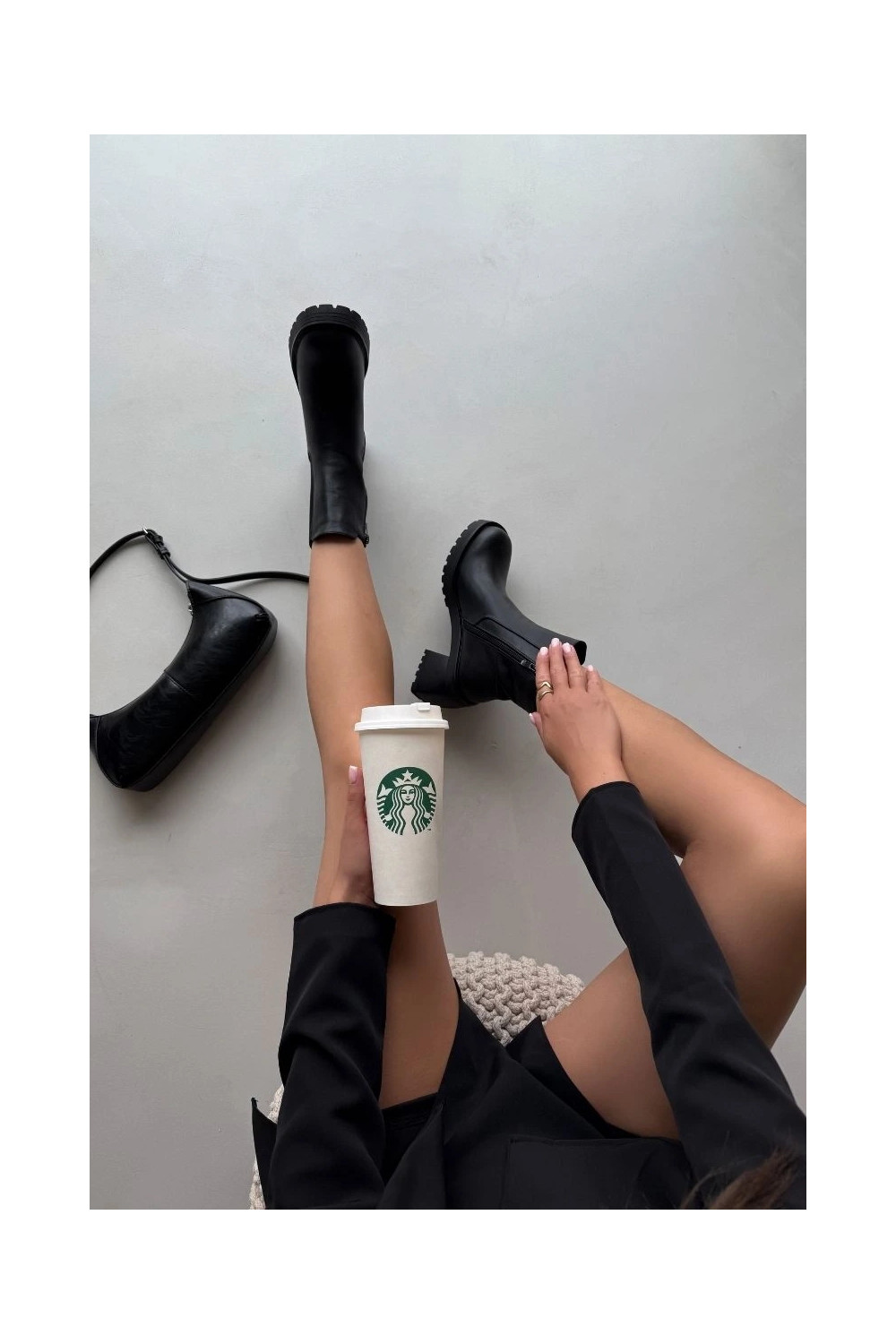 Stiilsed naiselikud saapad kontsaga musta värviga Thalira