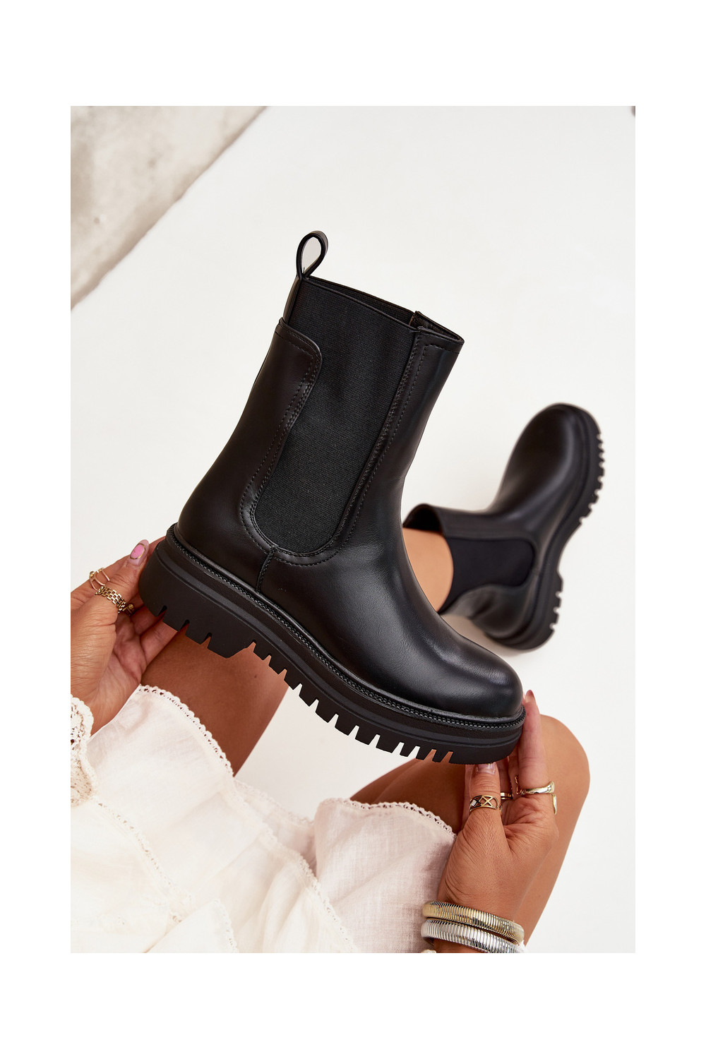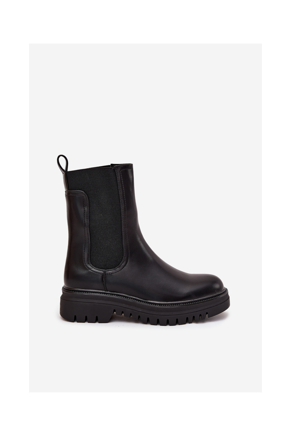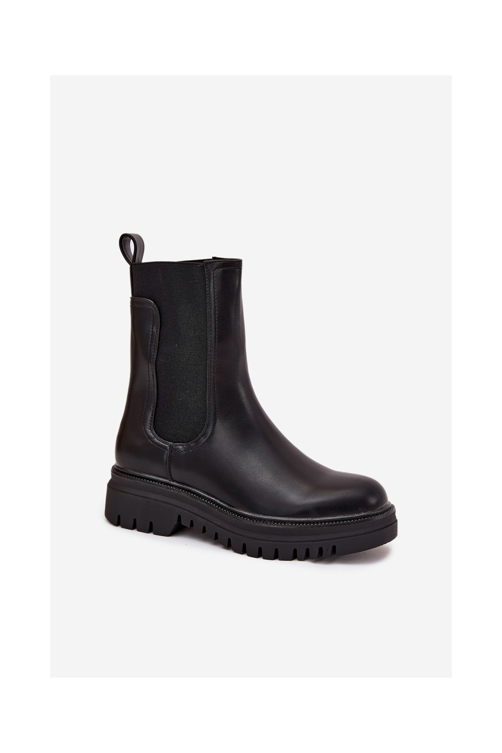 Stiilsed naiselikud saapad platvormiga ja madala kontsaga, sisseastumiseks mudel, musta värviga Ravessa