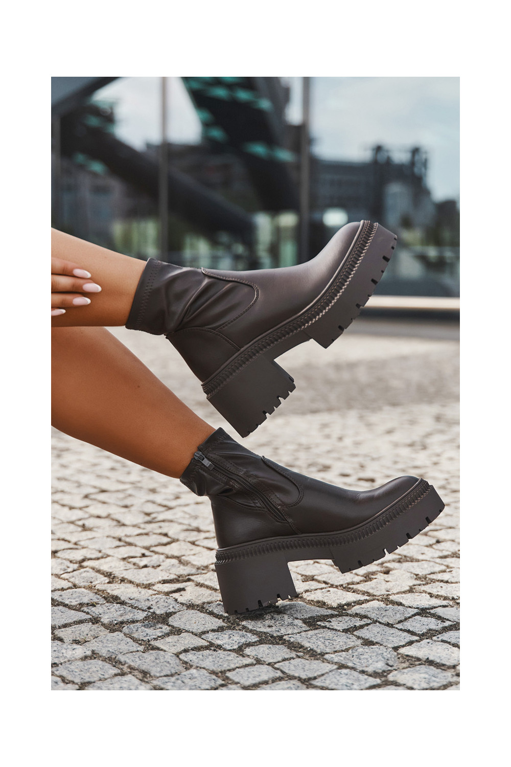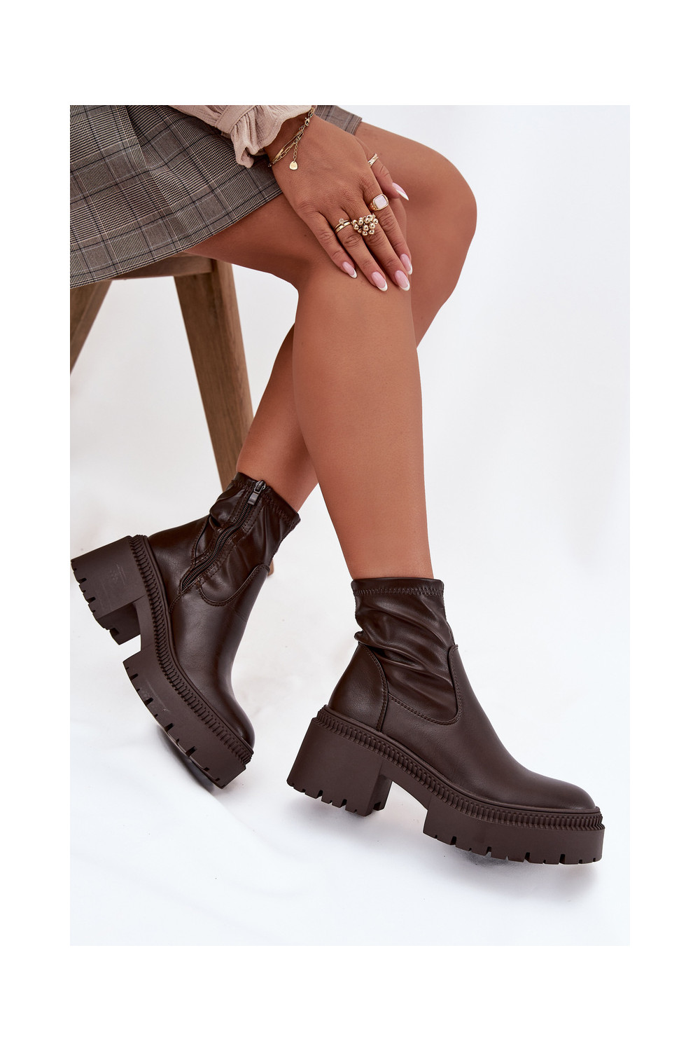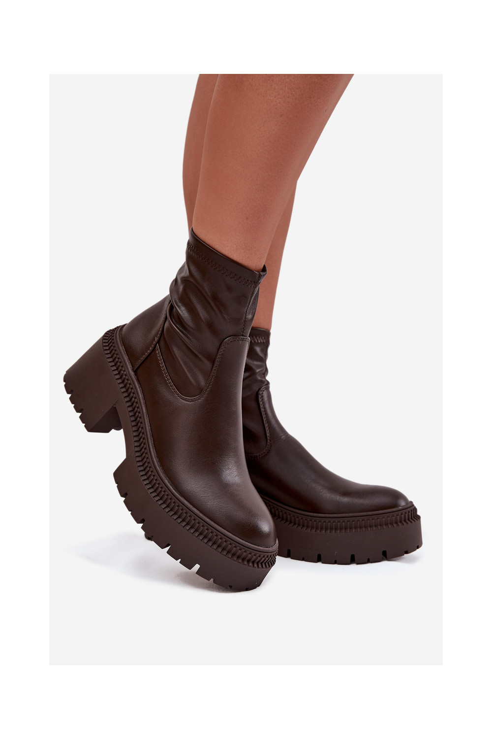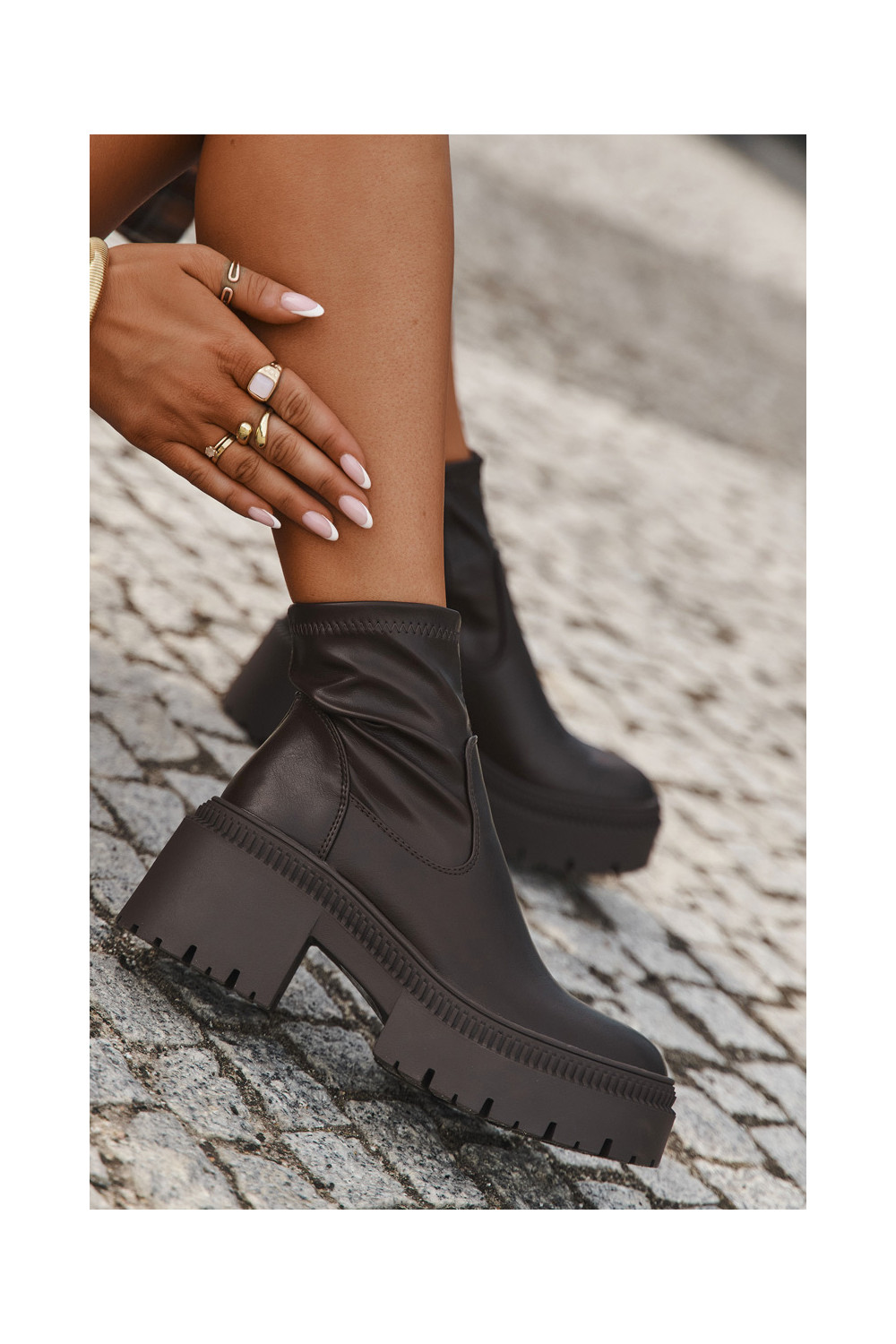 Naiste poolsaapad massiivsete kontsade ja platvormiga pruuni värvi eko nahast Elvianne