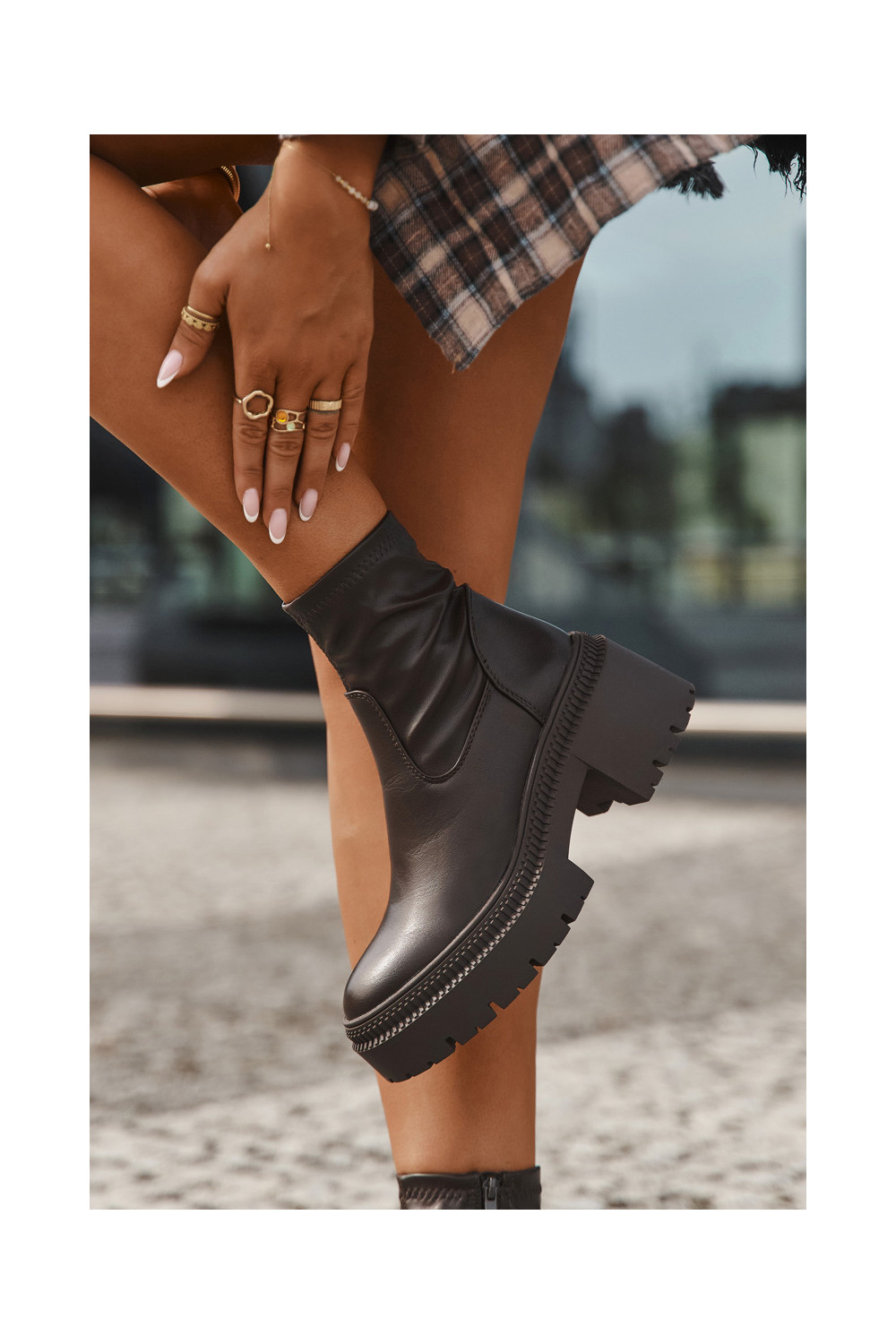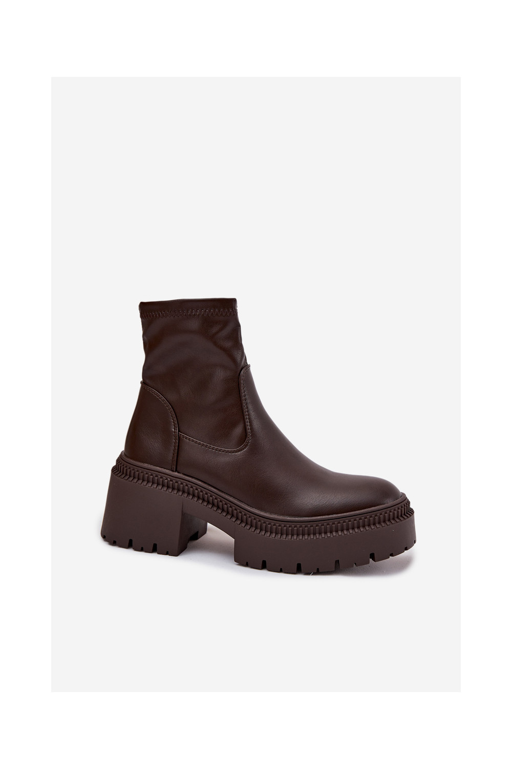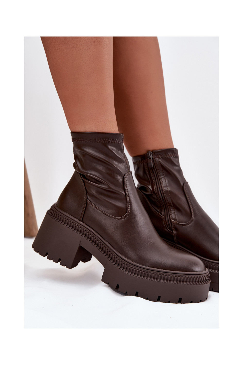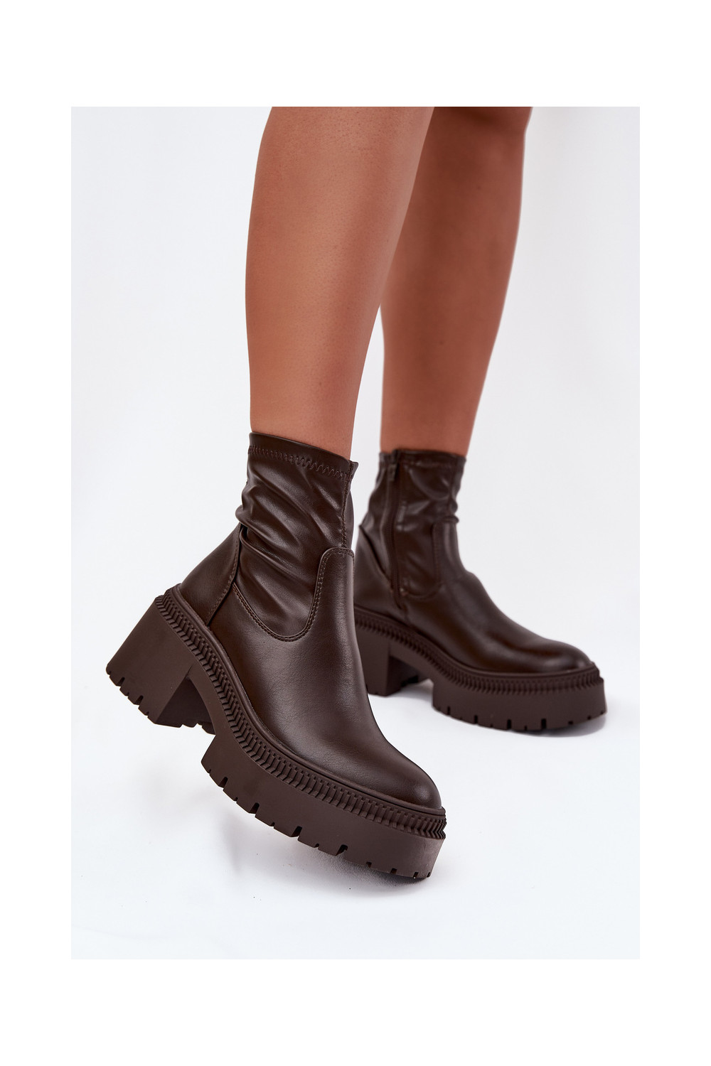 Naiste poolsaapad massiivsete kontsade ja platvormiga pruuni värvi eko nahast Elvianne