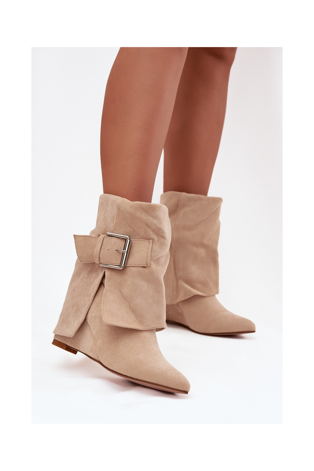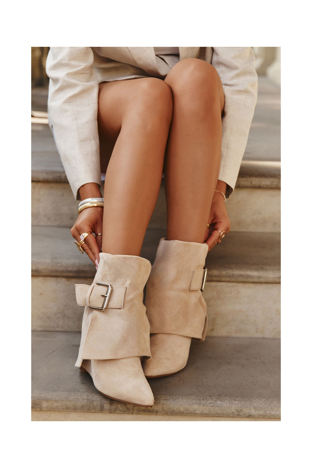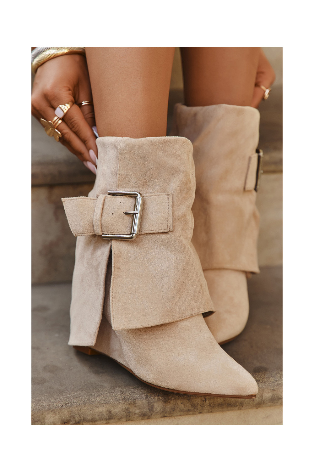 Platvormiga poolsaapad õmmeldud sääre ja pandlitega beeži eko sametist Vortinia