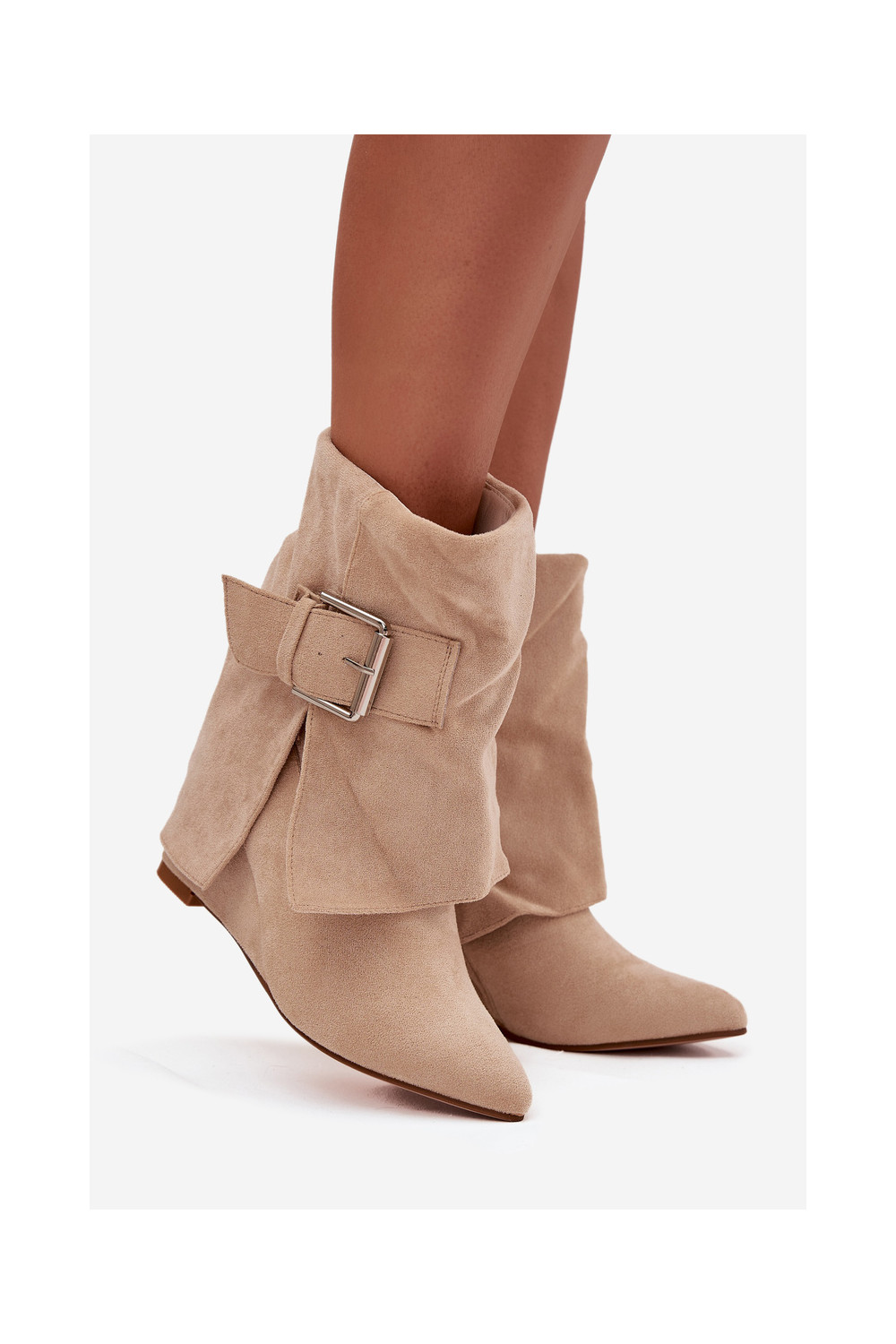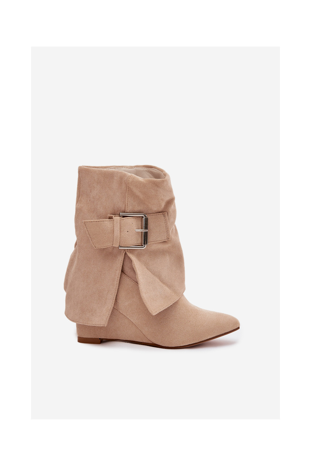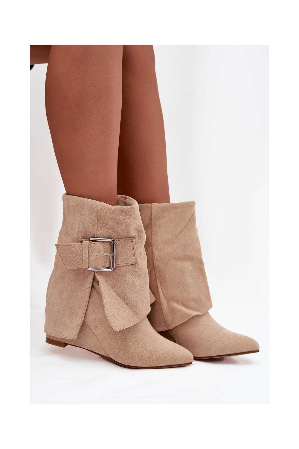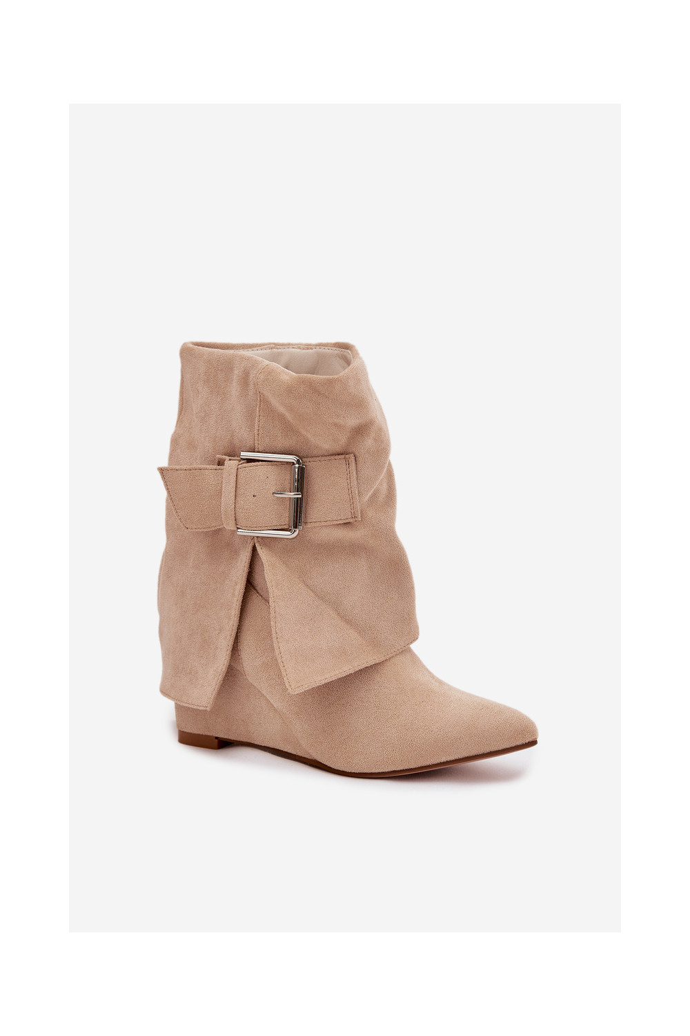 Platvormiga poolsaapad õmmeldud sääre ja pandlitega beeži eko sametist Vortinia