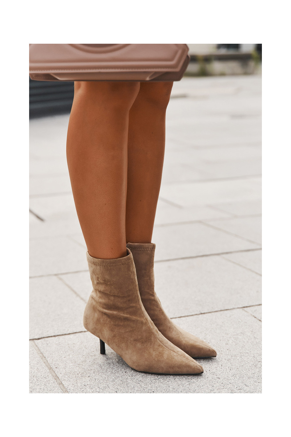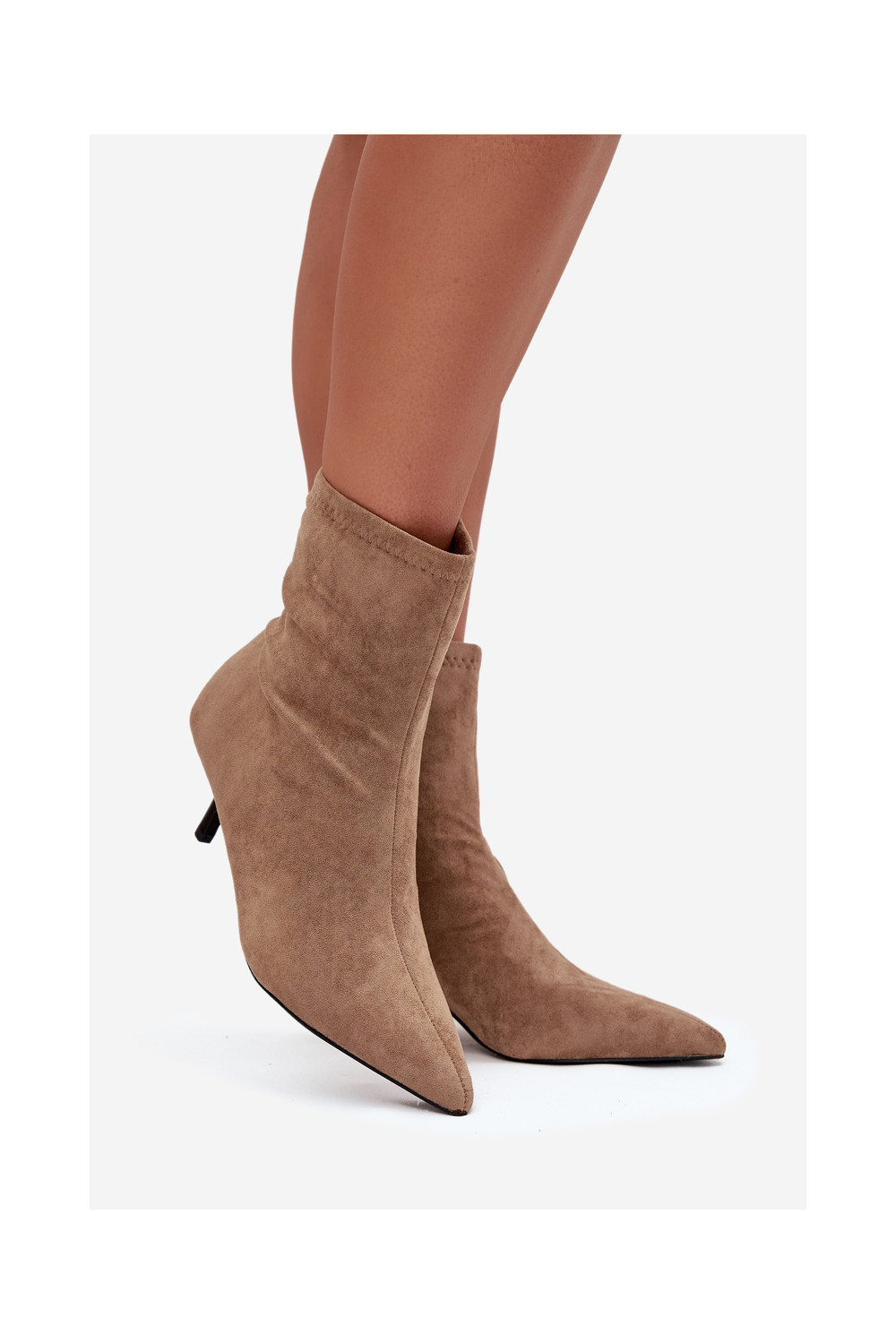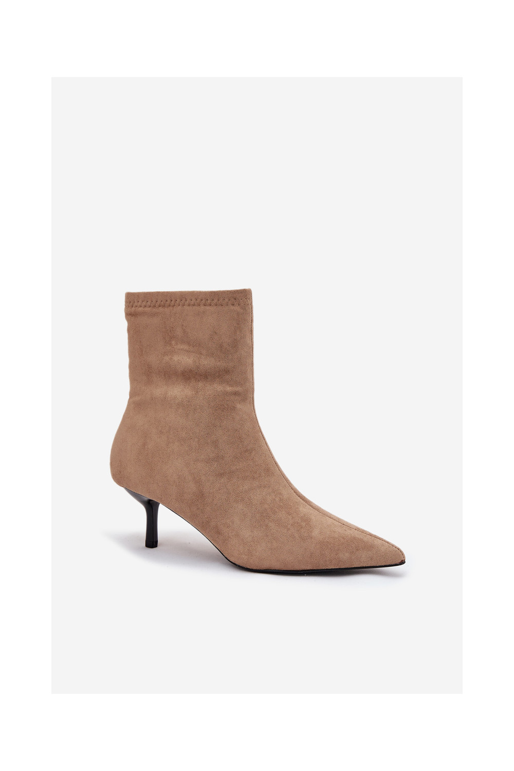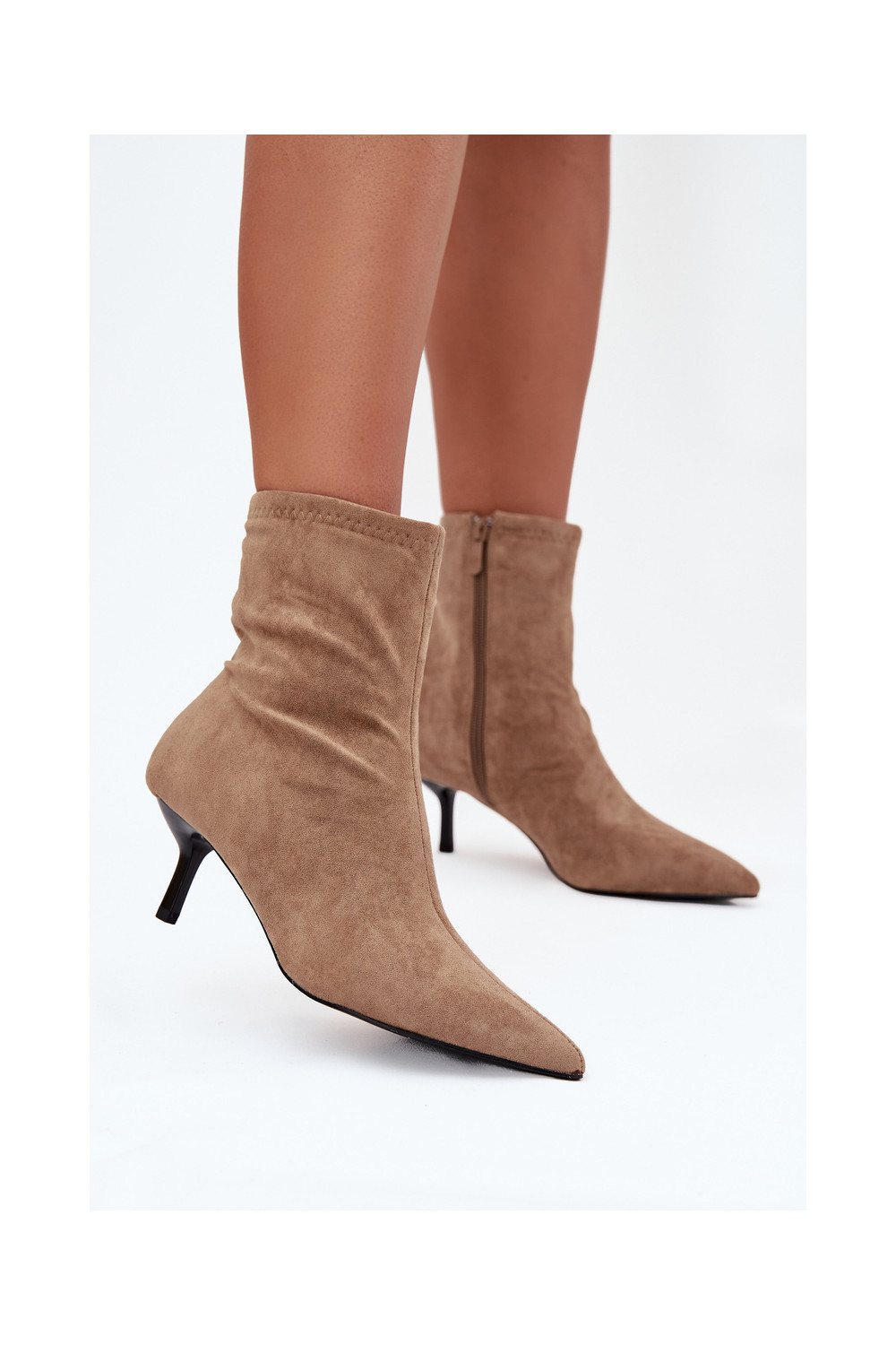 Soojendusega naiste saapad õhukeste kontsadega ökokoesest liiva värvi "Belisse"
