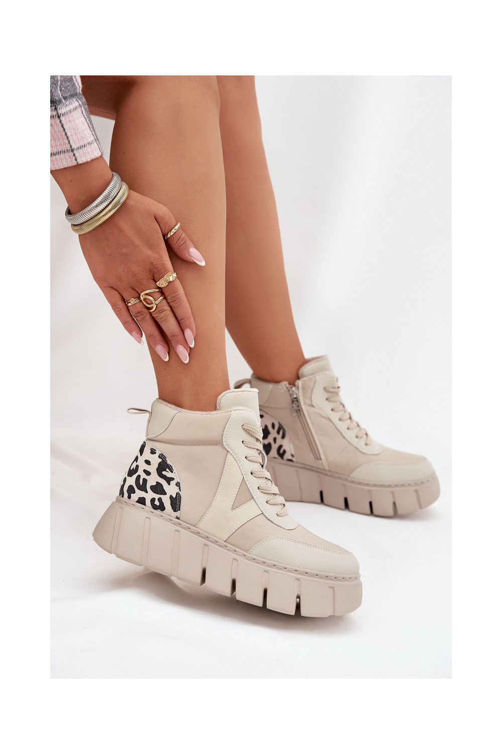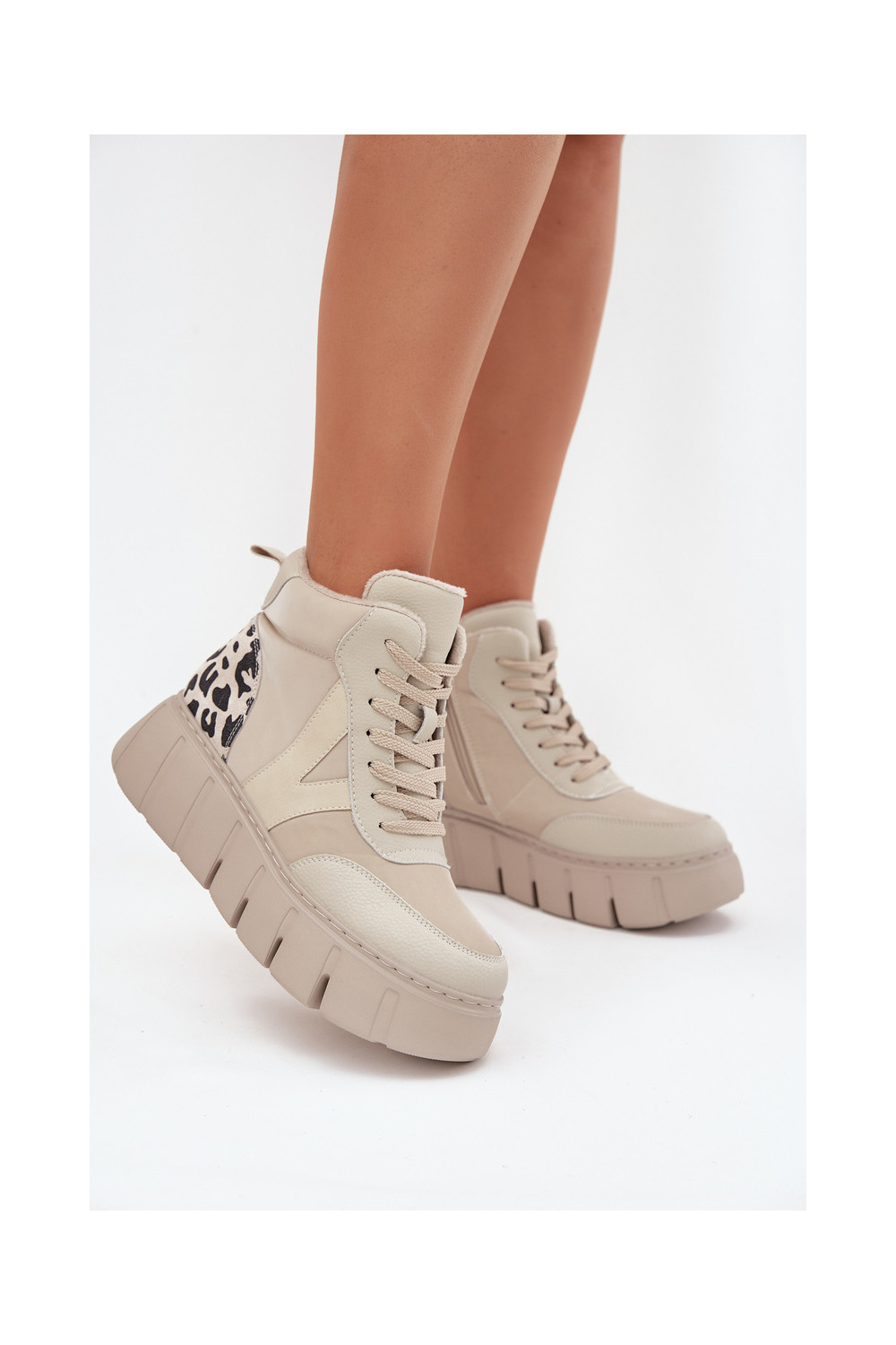 Vinceza 66838 beežid nahksoojad naiste saapad platvormiga