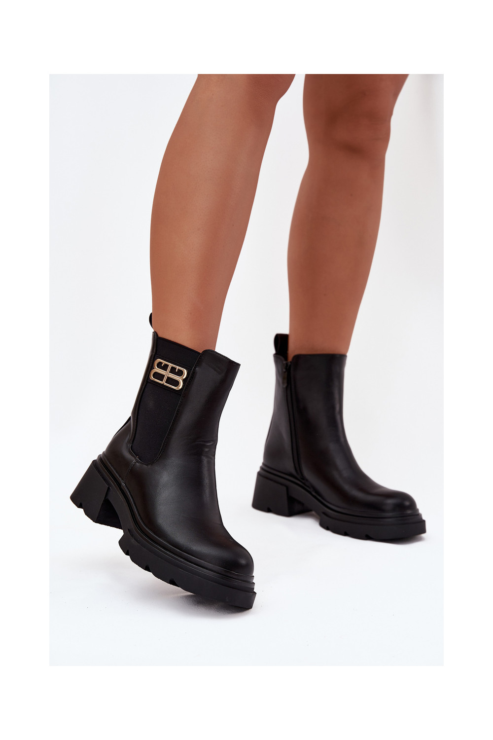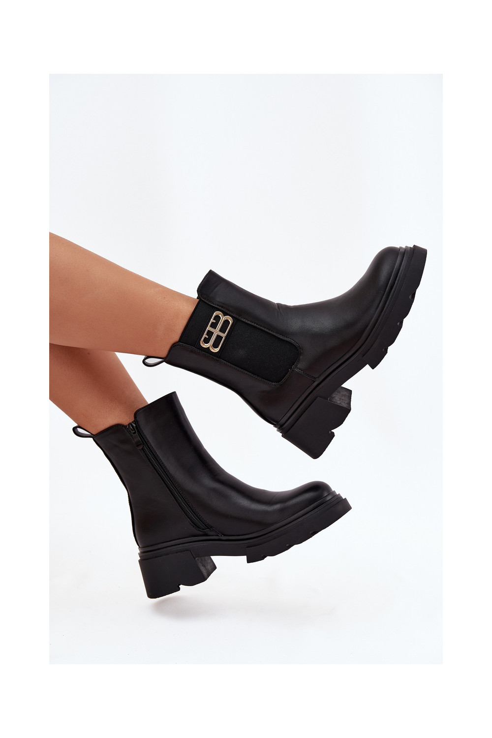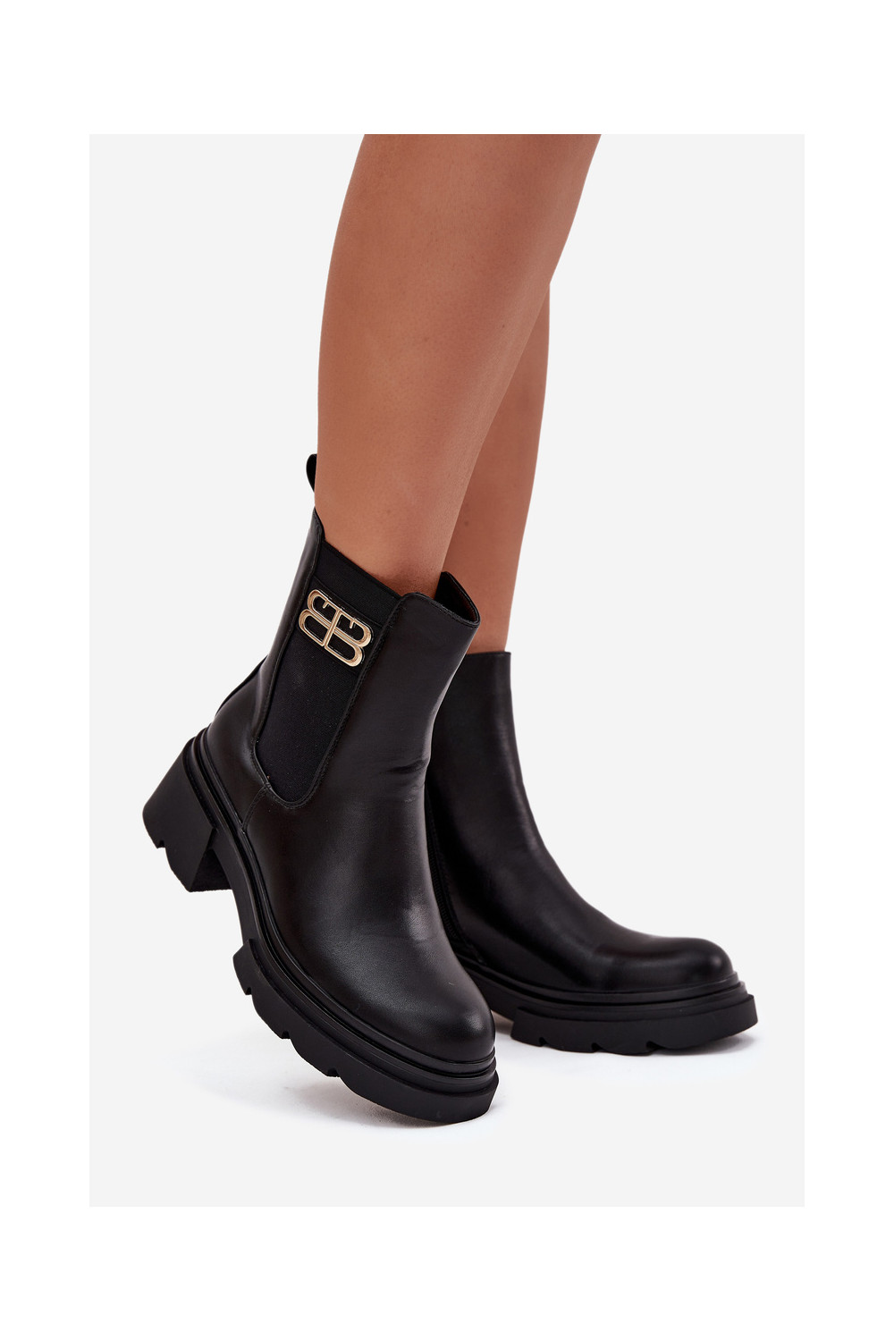 Mustad soojad naiste saapad kuldsete detailidega Serene