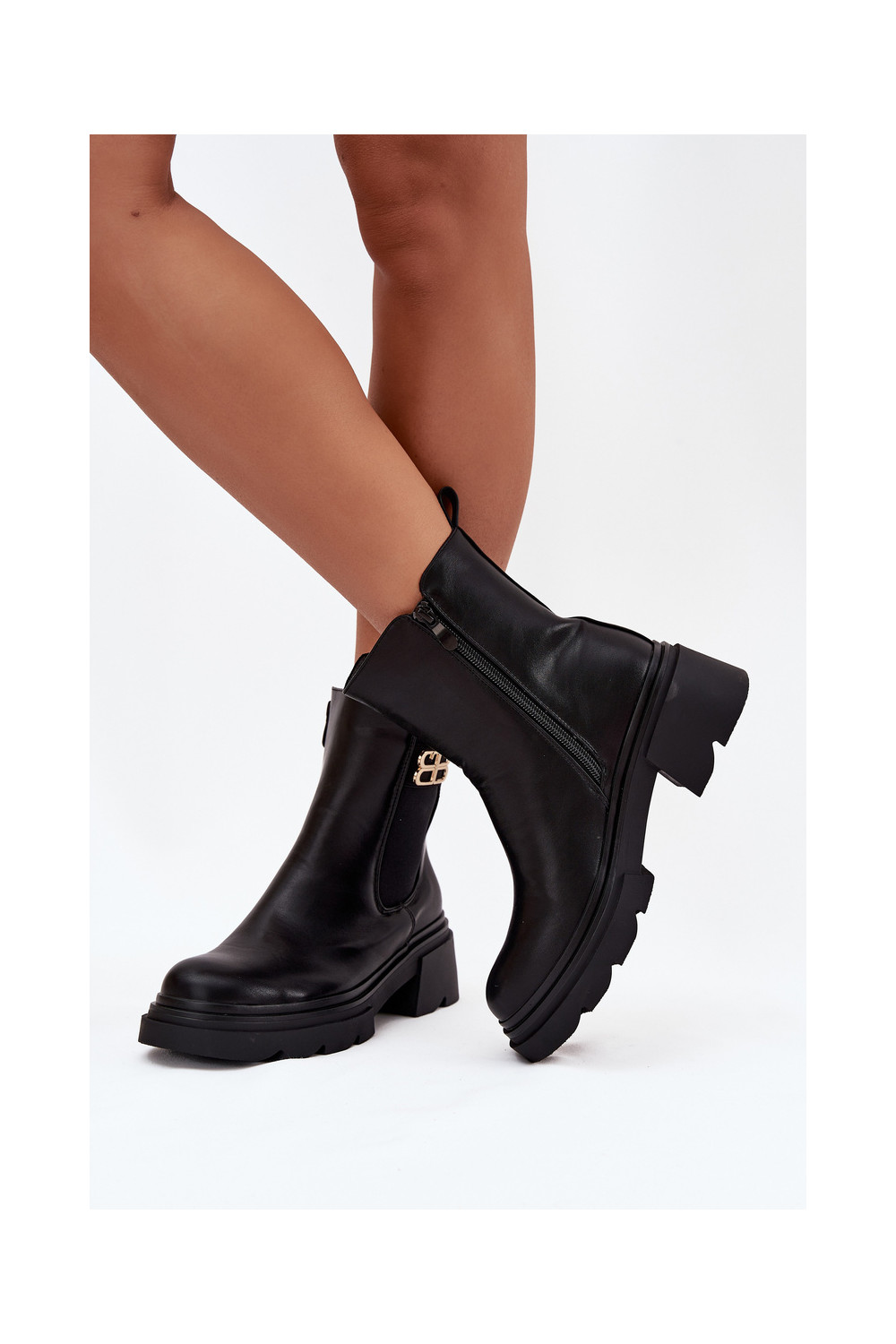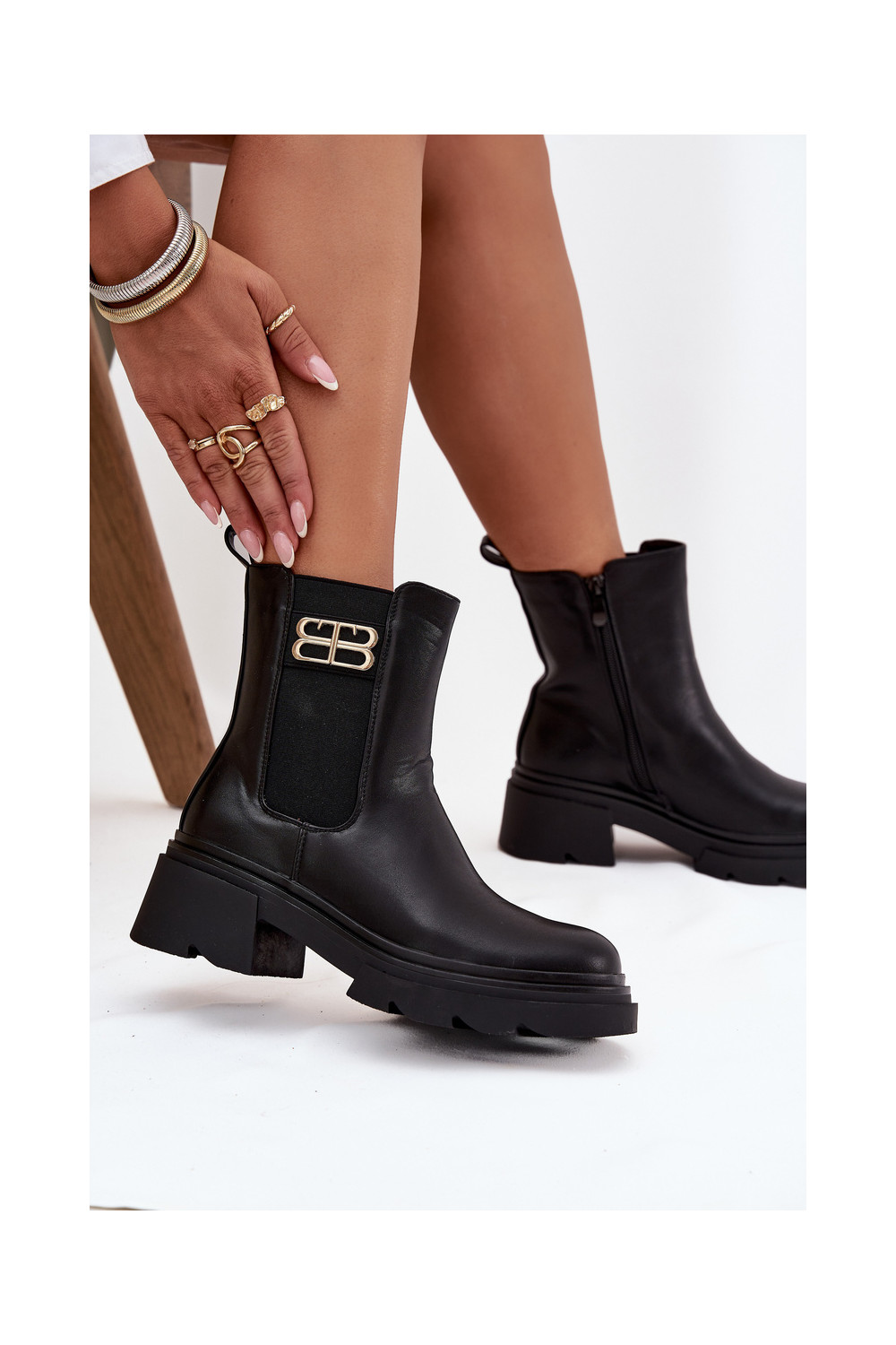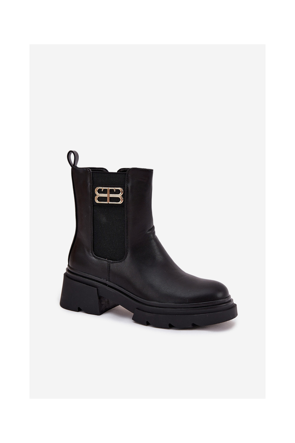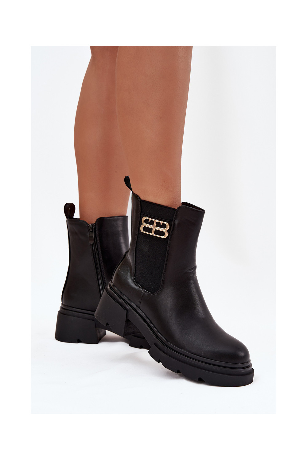 Mustad soojad naiste saapad kuldsete detailidega Serene