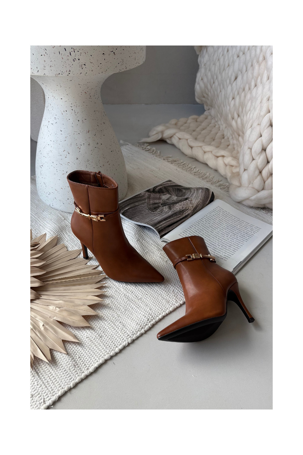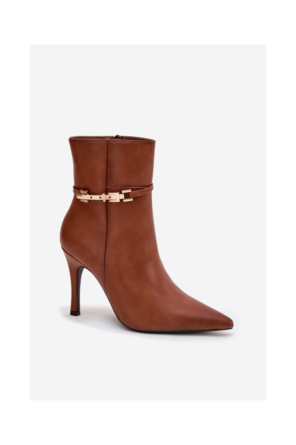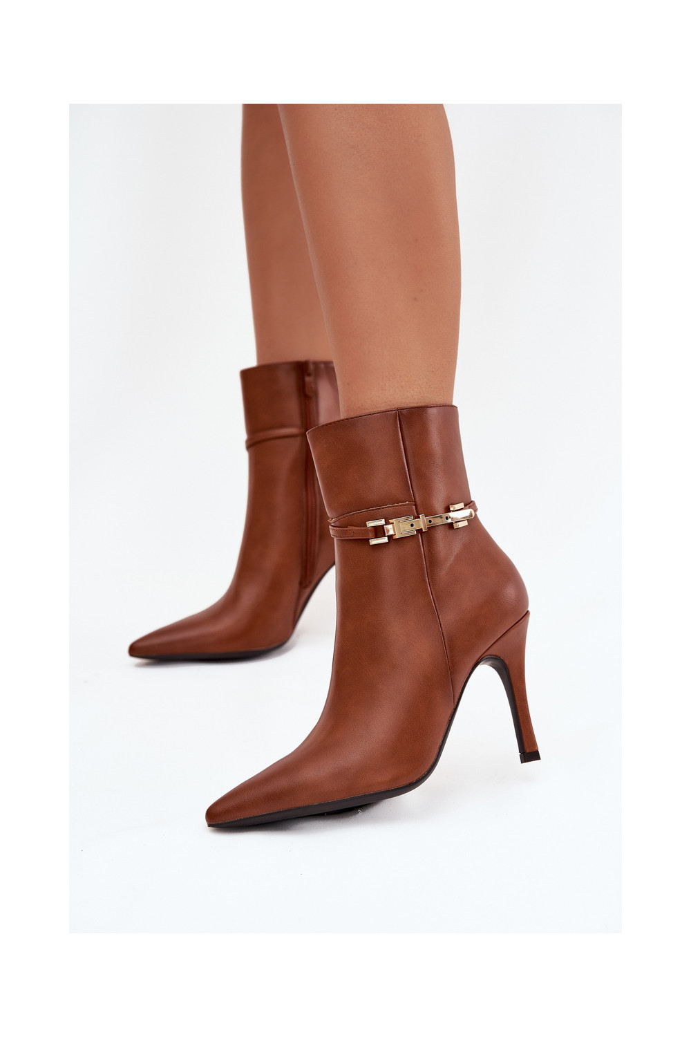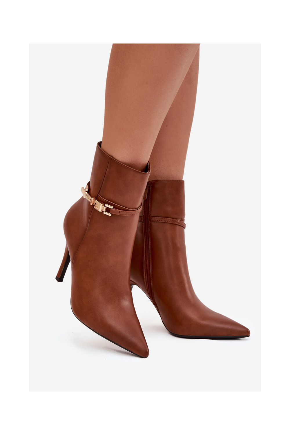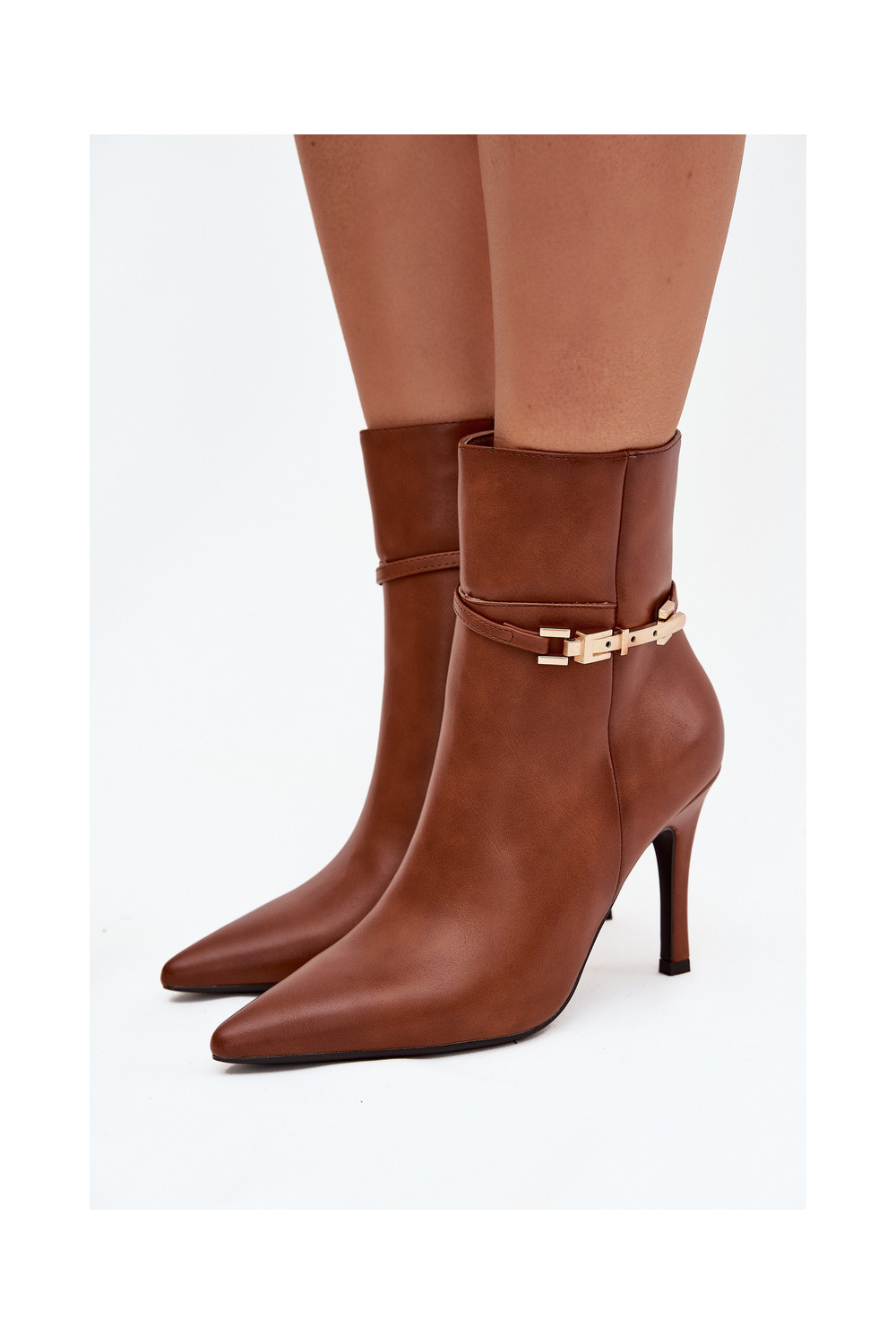 Pruun värv sooja voodriga naiste saapad õhukeste kontsadega, rihmade ja kuldsete elementidega „Bellisse"