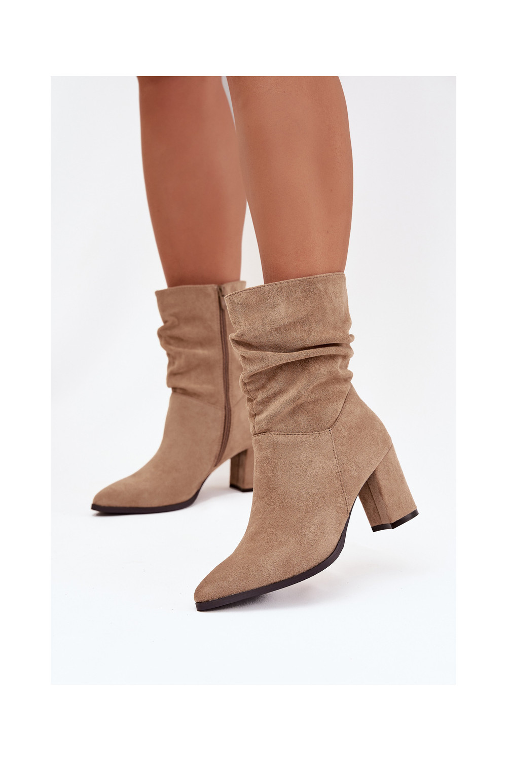 Amelise naiste saapad ruffles'iga soojendatud beeži värvi