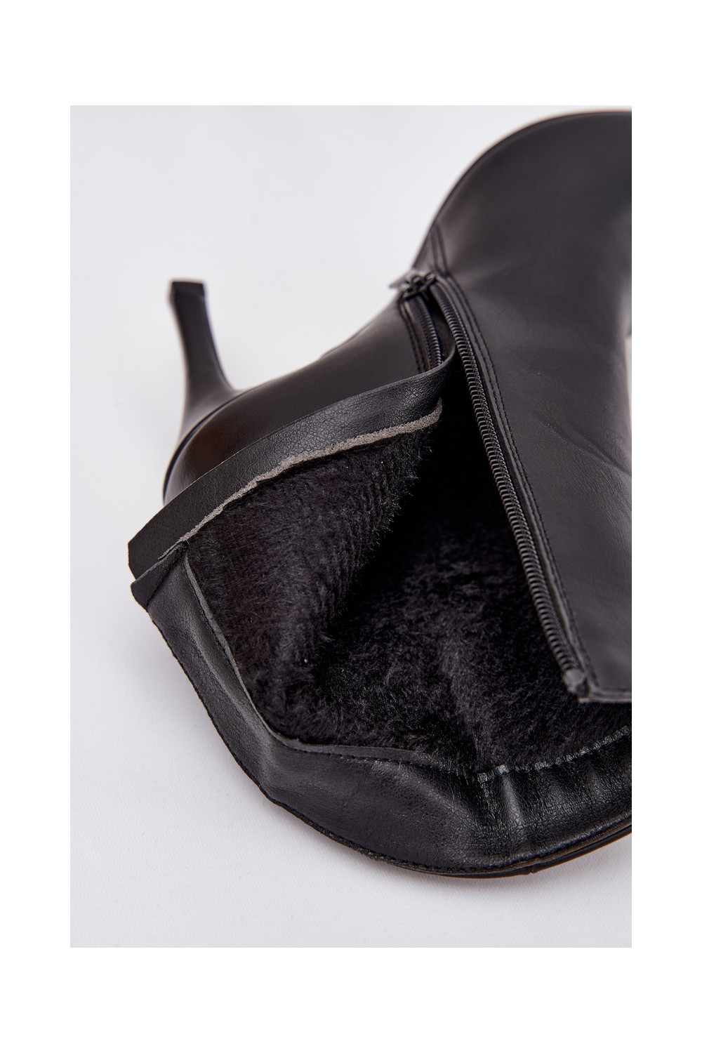 Soojad naiste saapikud õhukeste kontsadega eko nahast, musta värvi, Nolisse
