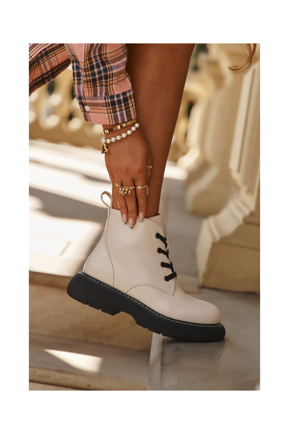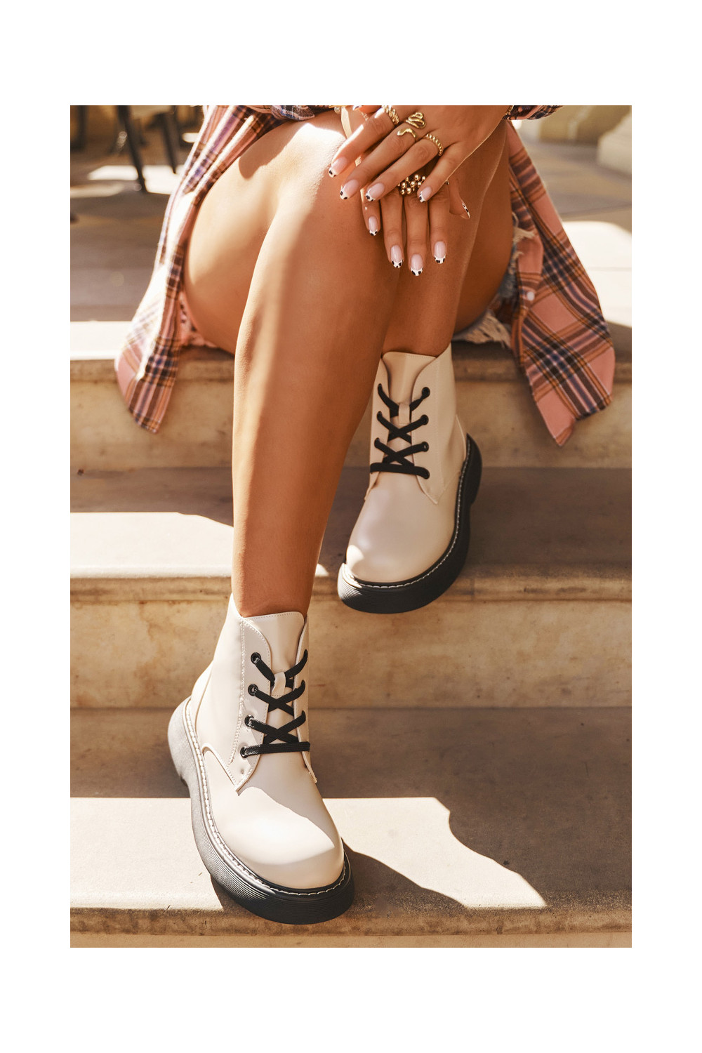 Soojad naiste saapikud platvormiga ja paeltega, elevandiluu värvi, Harmine