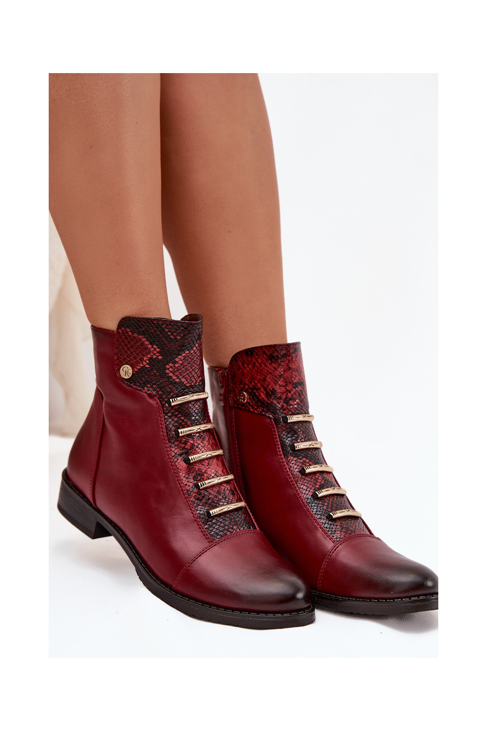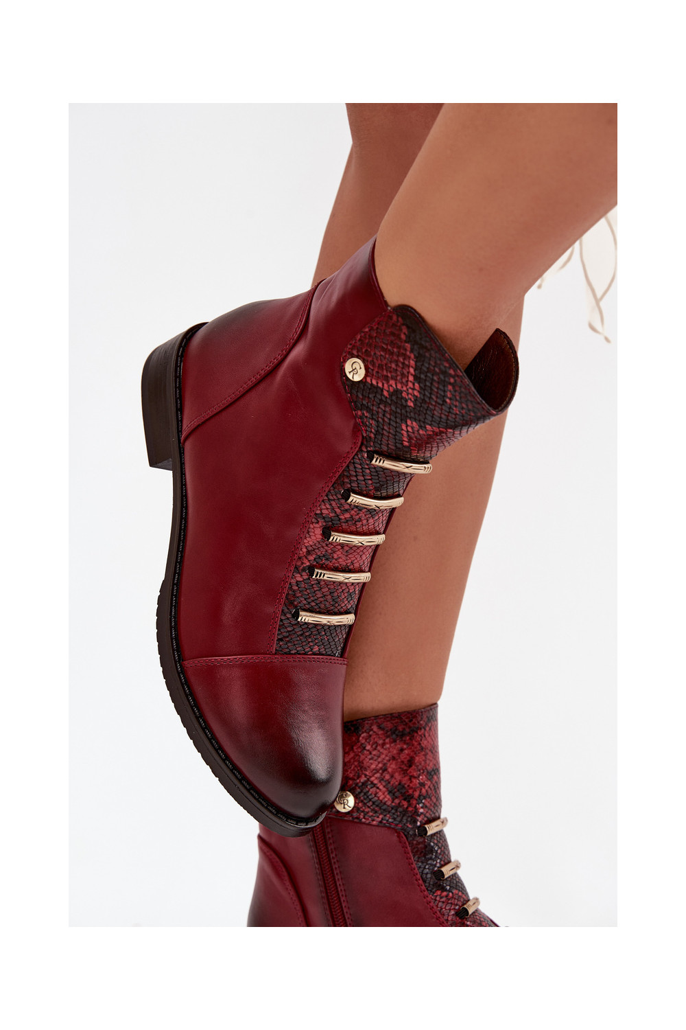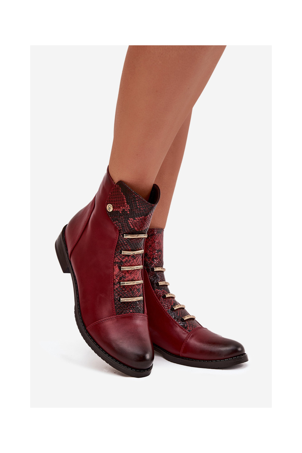 Insulated Women's Ankle Boots Low Heel Animal Pattern Bordeaux Labise