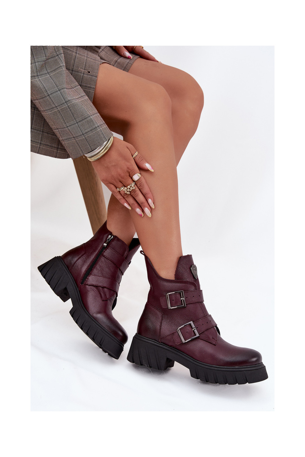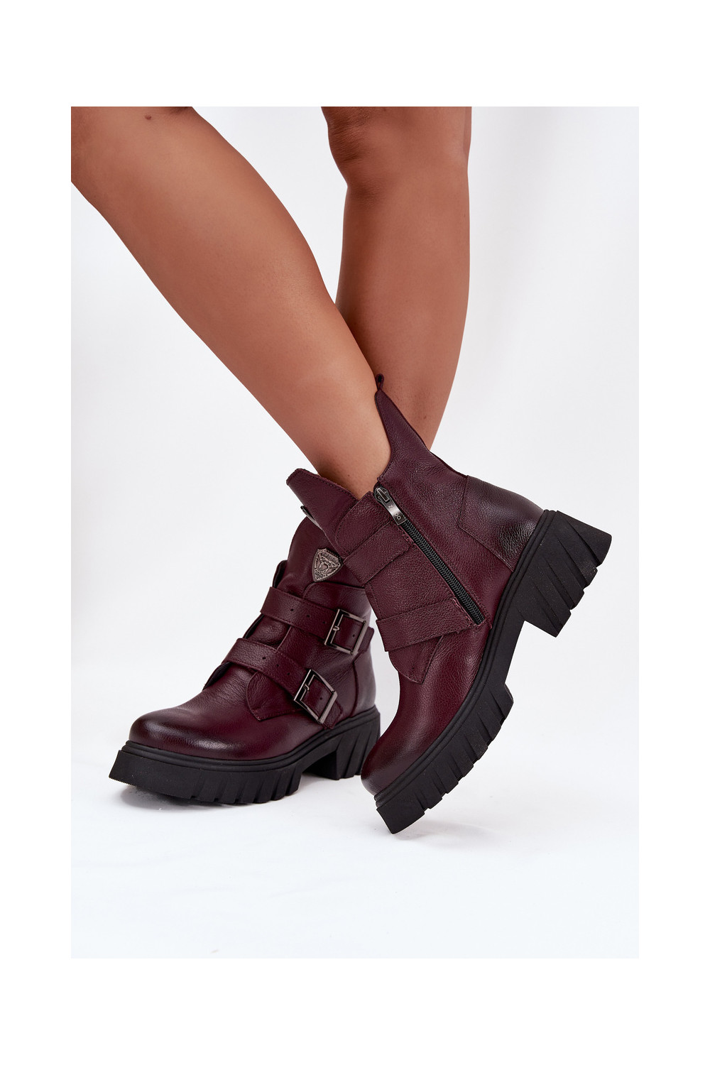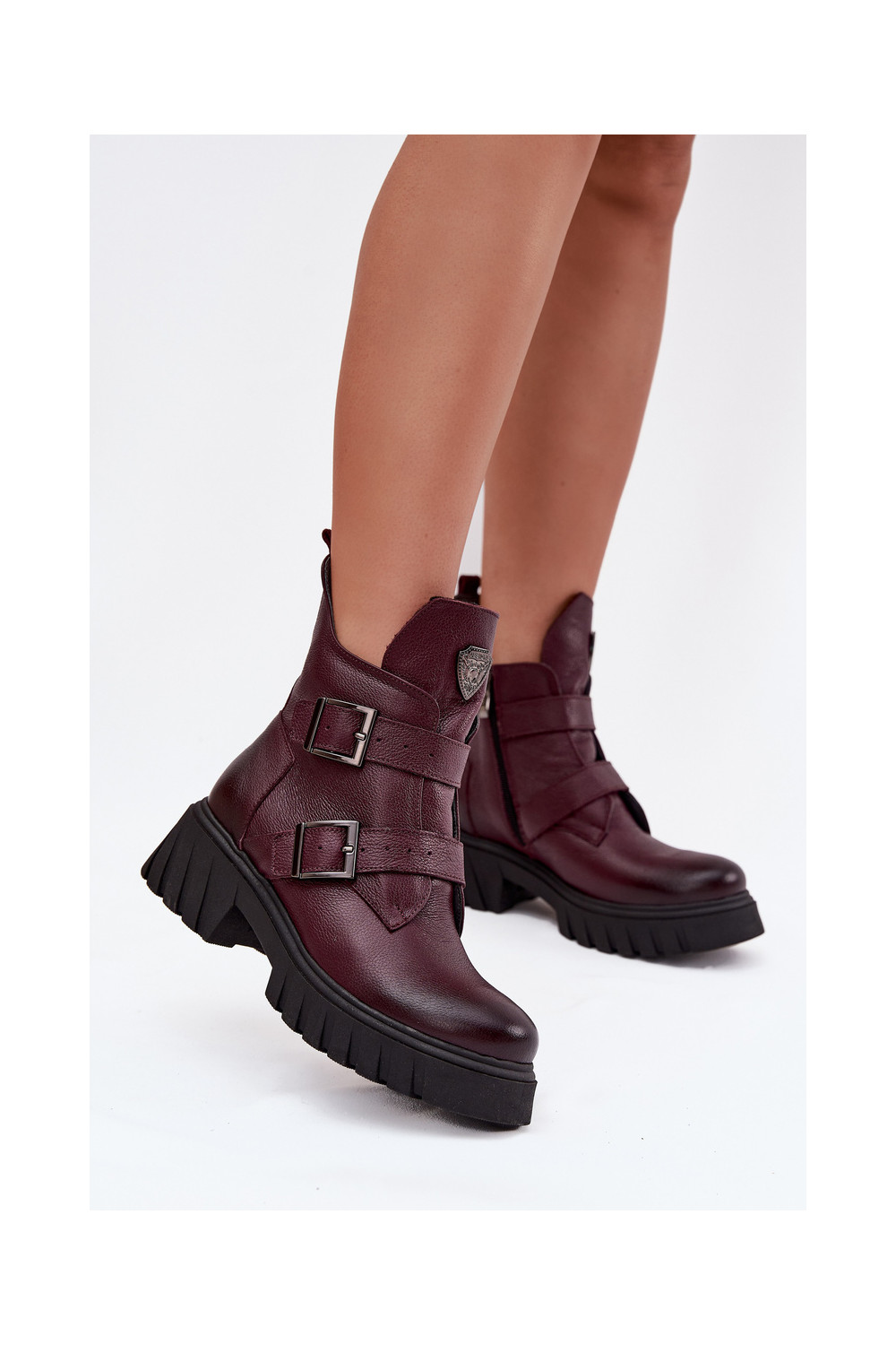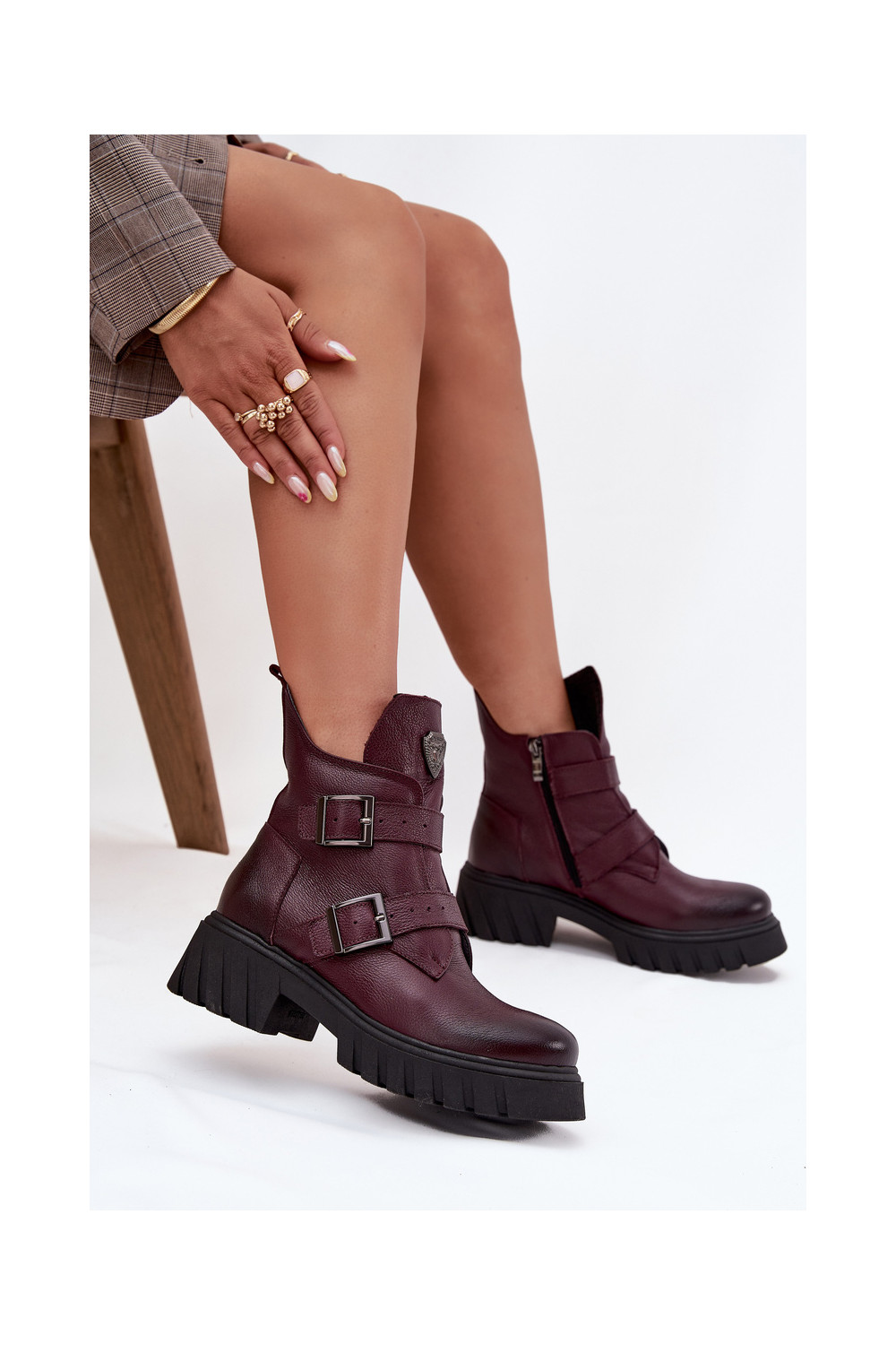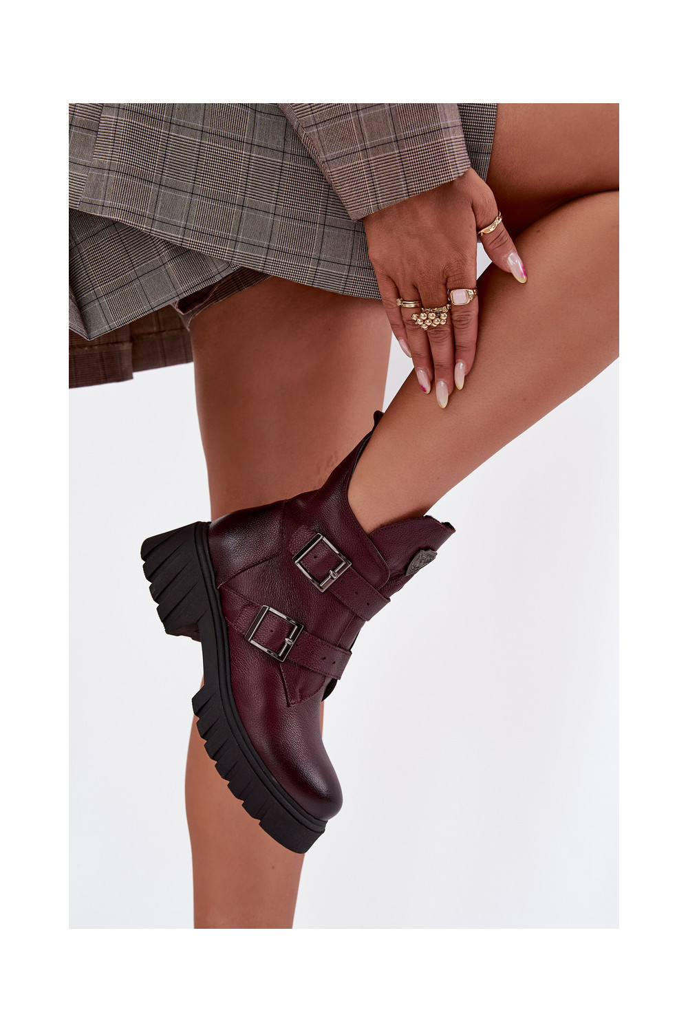 Nahast soojad naiste saapad pandlatega ja dekoratiivsete detailidega Zazoo 60482 bordoo värvi