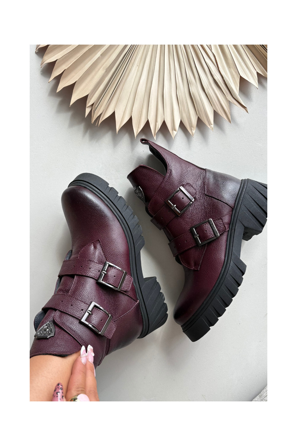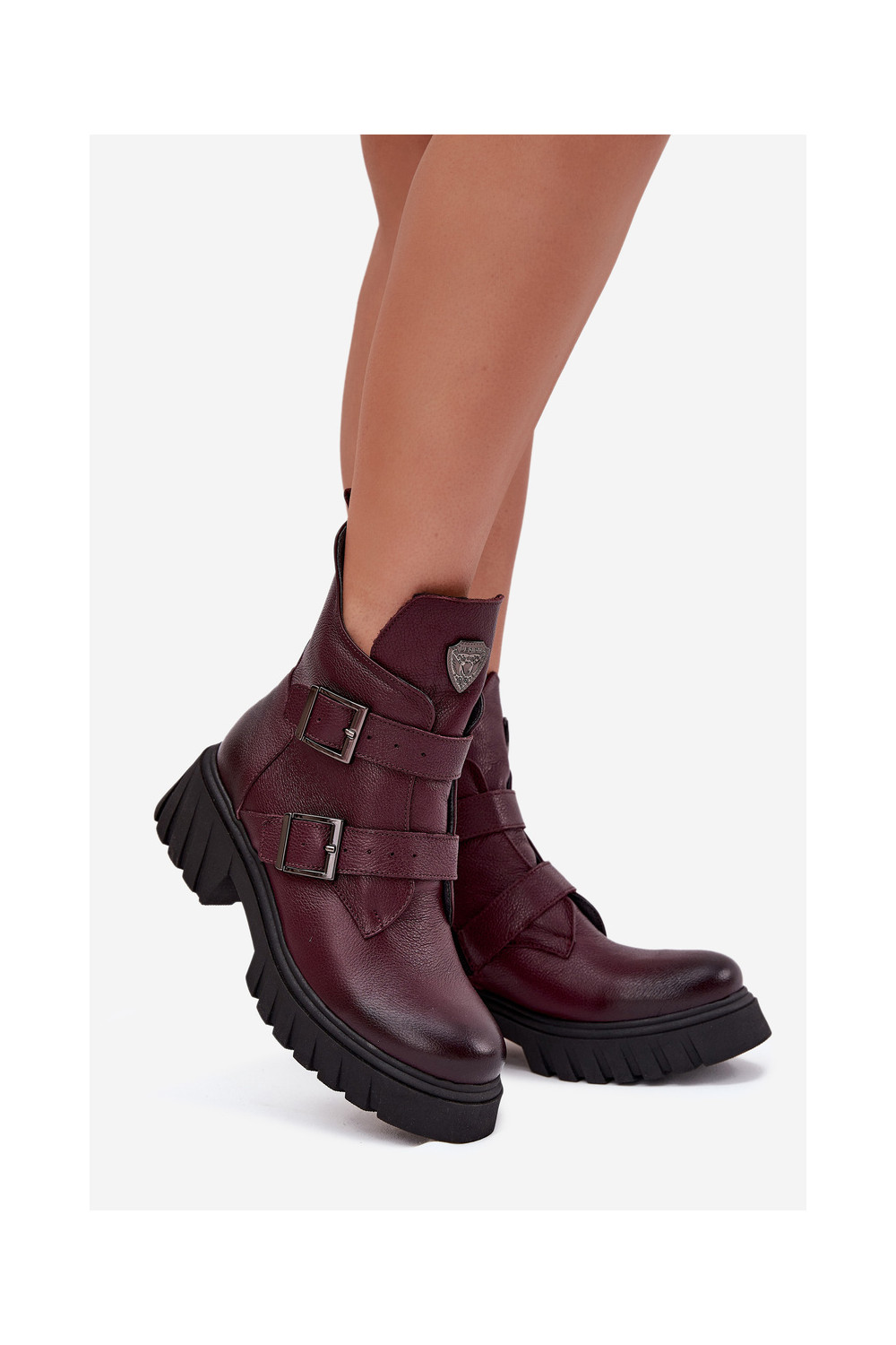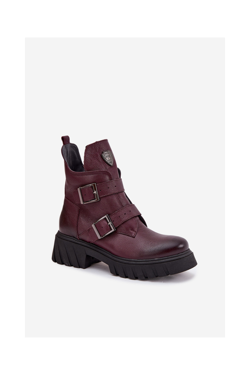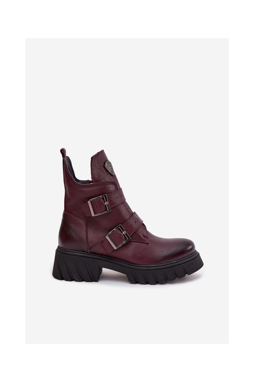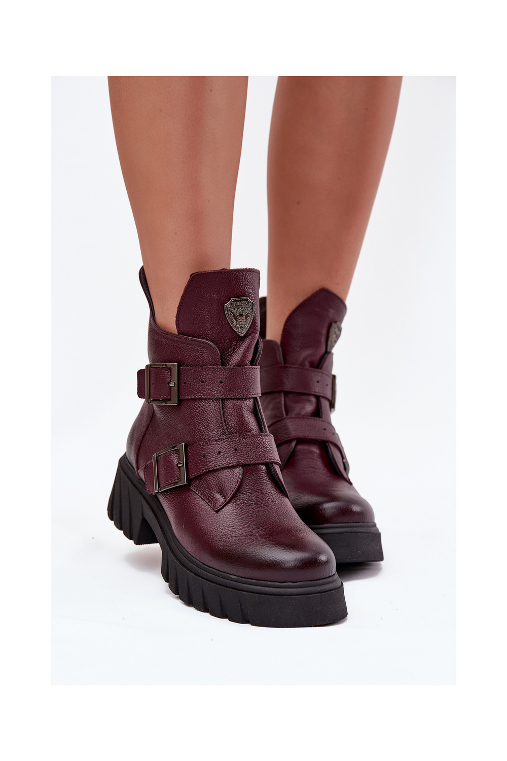 Nahast soojad naiste saapad pandlatega ja dekoratiivsete detailidega Zazoo 60482 bordoo värvi