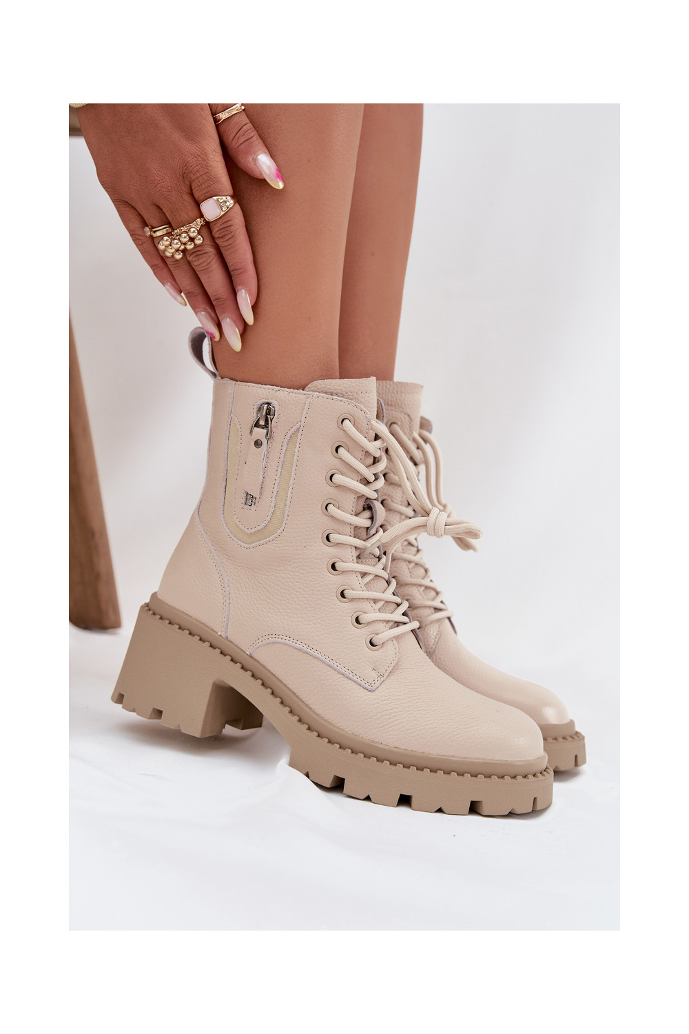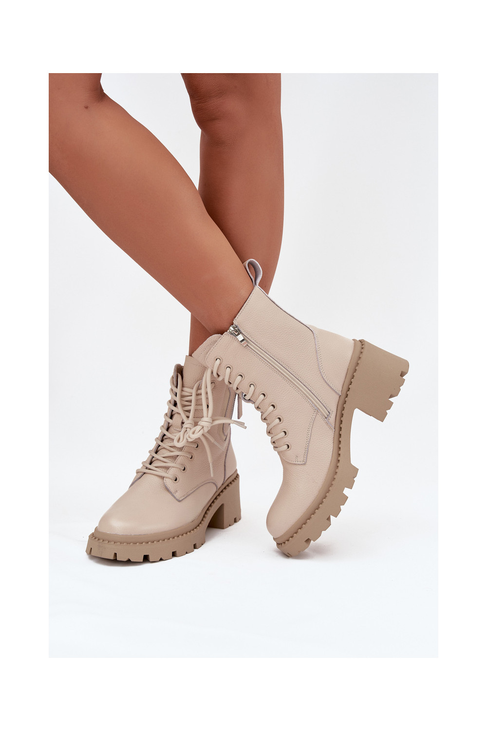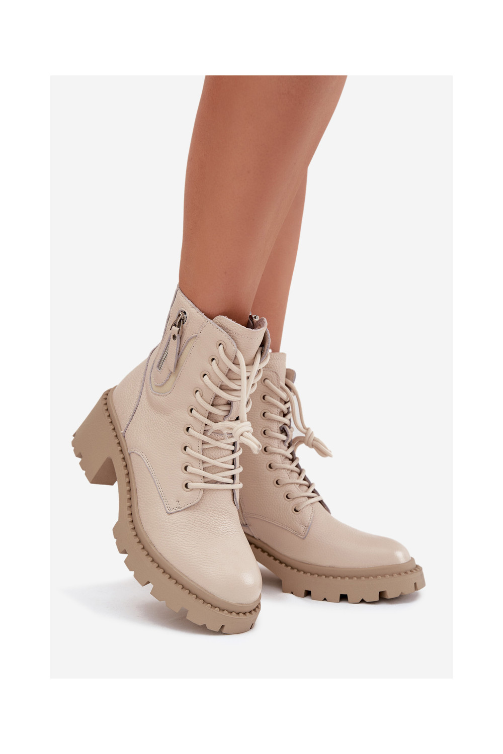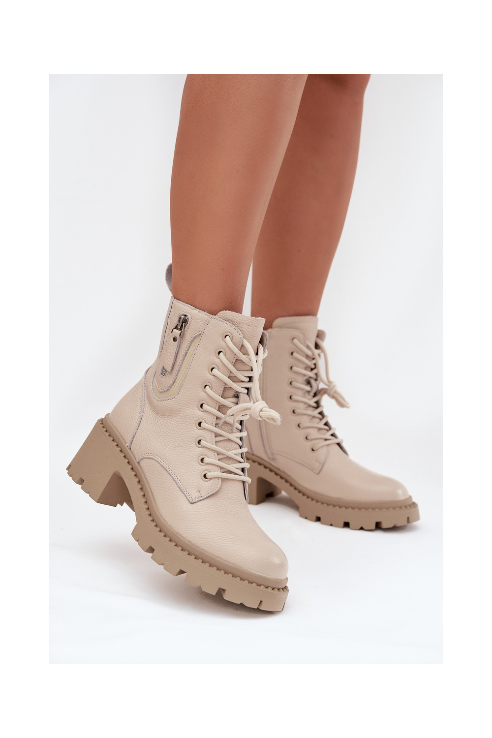 Nahast naiste saapad kontsaga, soojad Vinceza 86418 beeži värvi