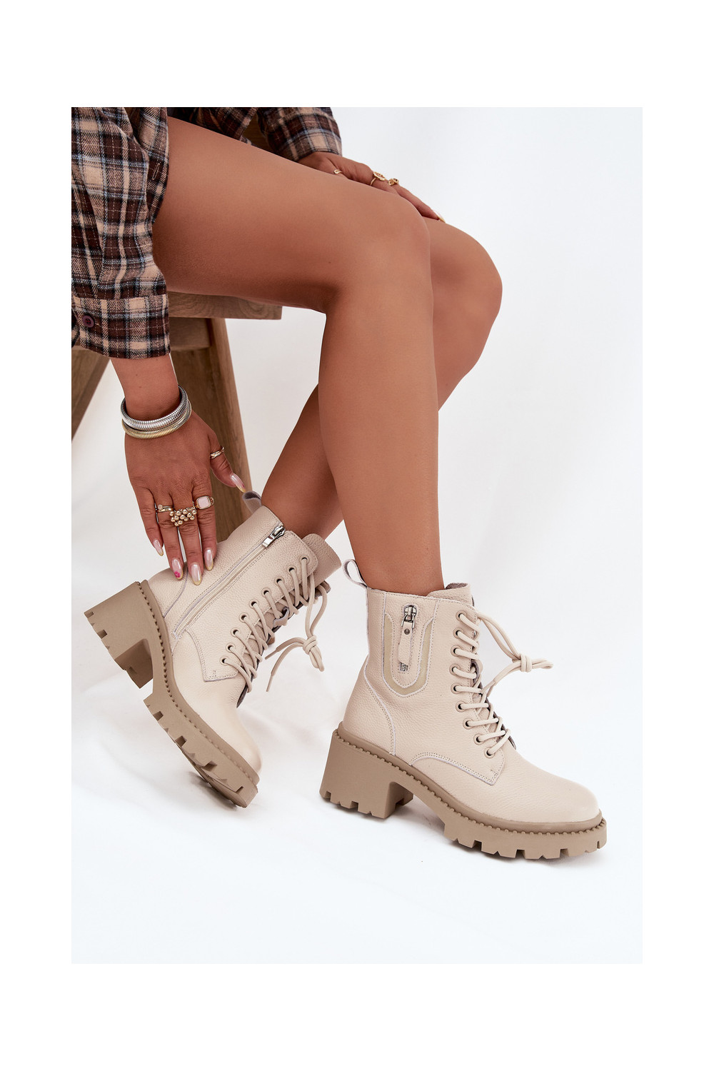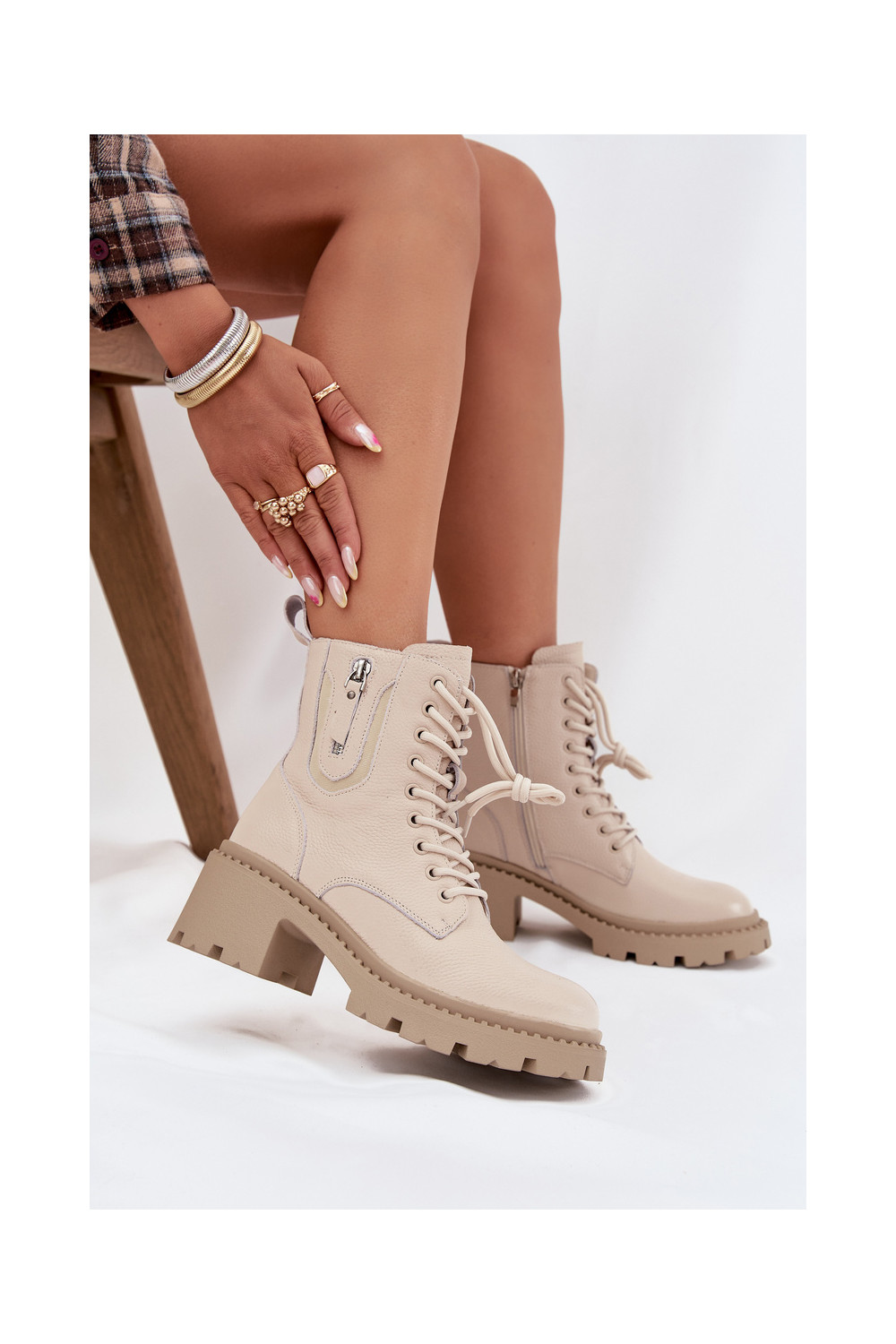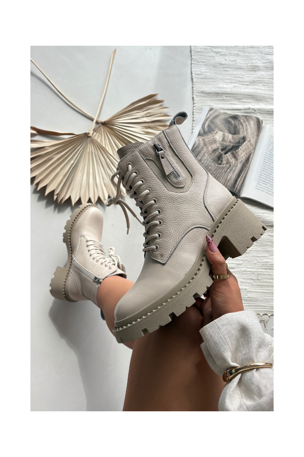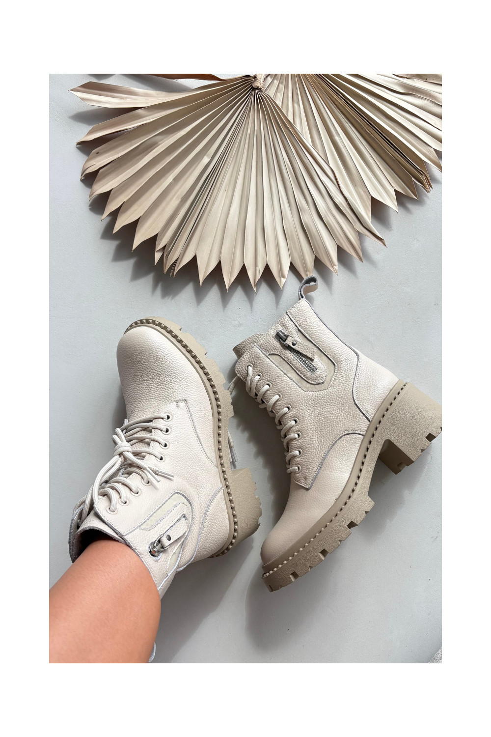 Nahast naiste saapad kontsaga, soojad Vinceza 86418 beeži värvi