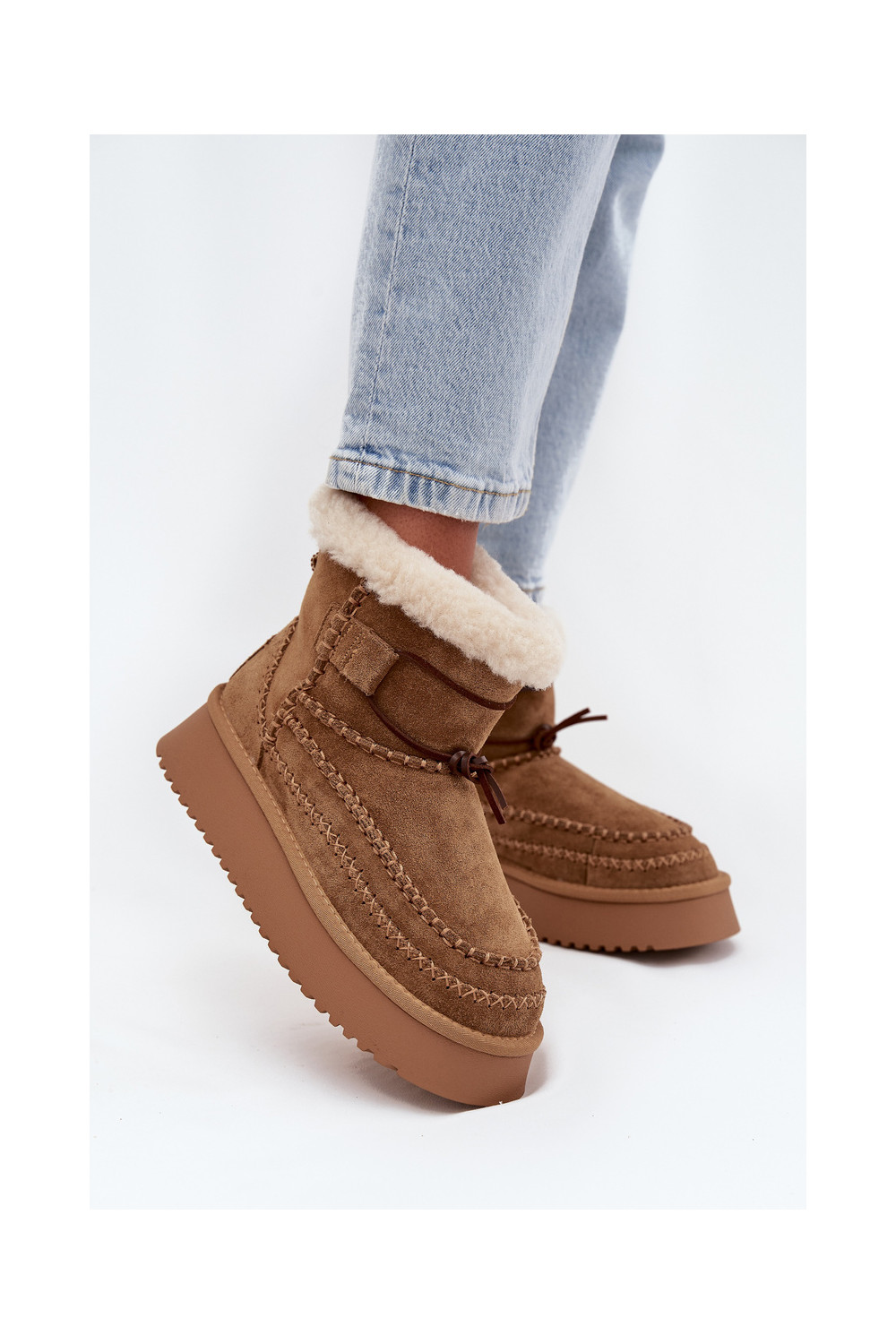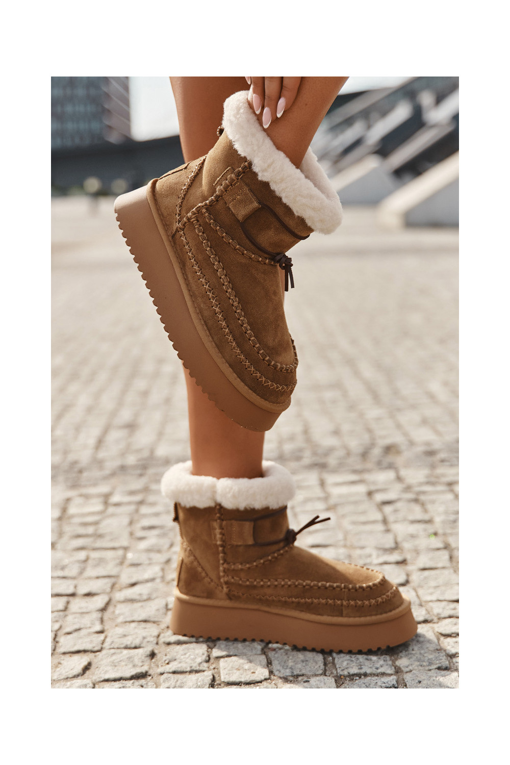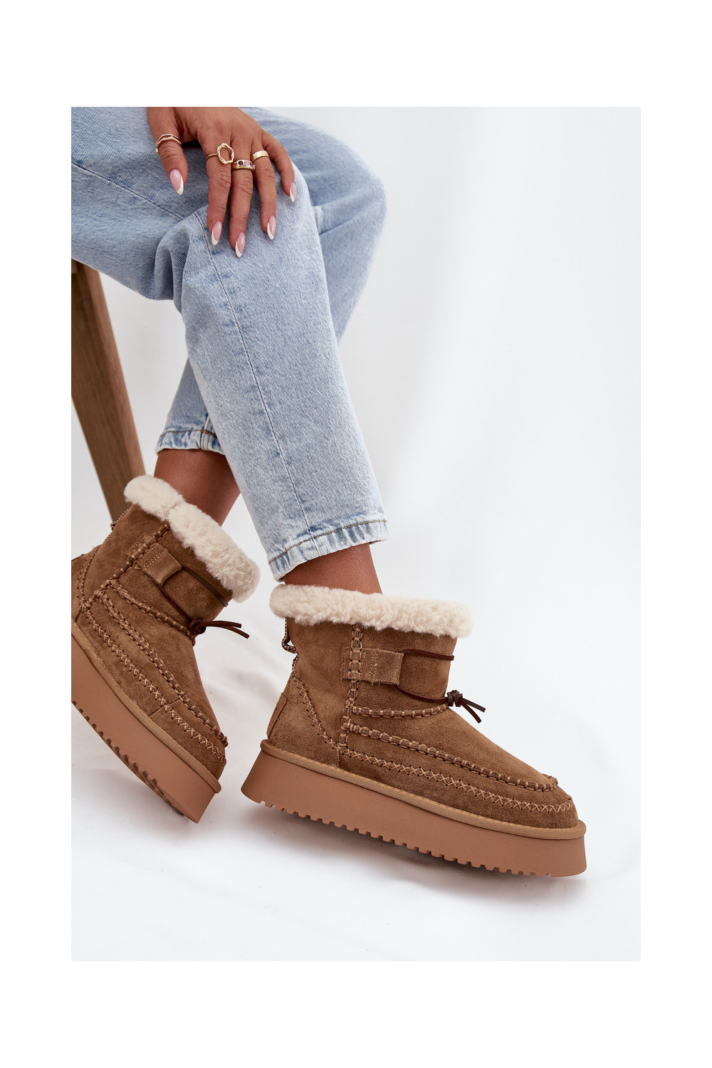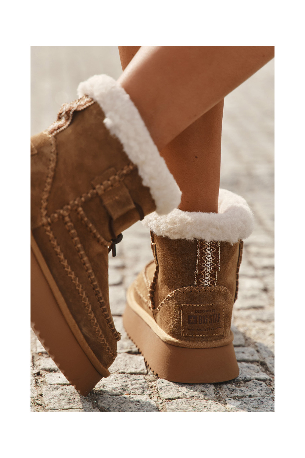 Soomusnahast talvesaapad naistele dekoratiivsete õmblustega, Big Star SS274373, pruuni värv