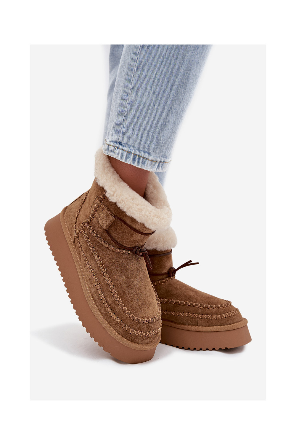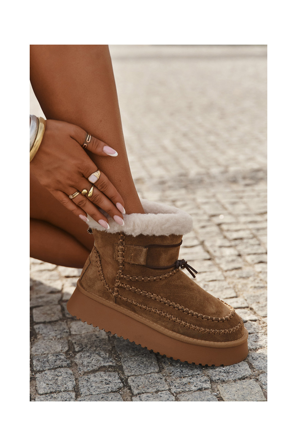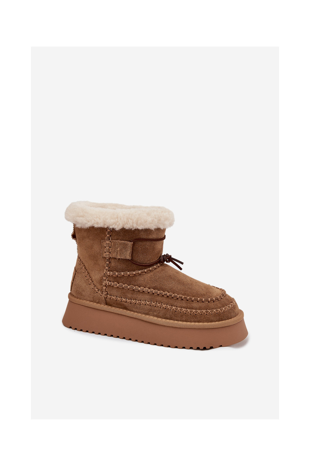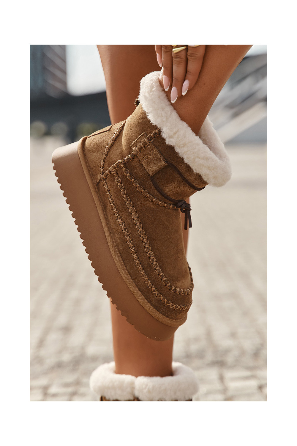 Soomusnahast talvesaapad naistele dekoratiivsete õmblustega, Big Star SS274373, pruuni värv