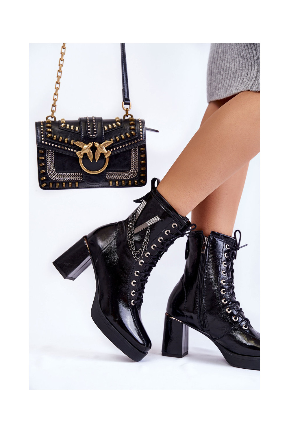 Soojad mustad nahast lühikesed saapad ornamentidega „Tai turilta"
