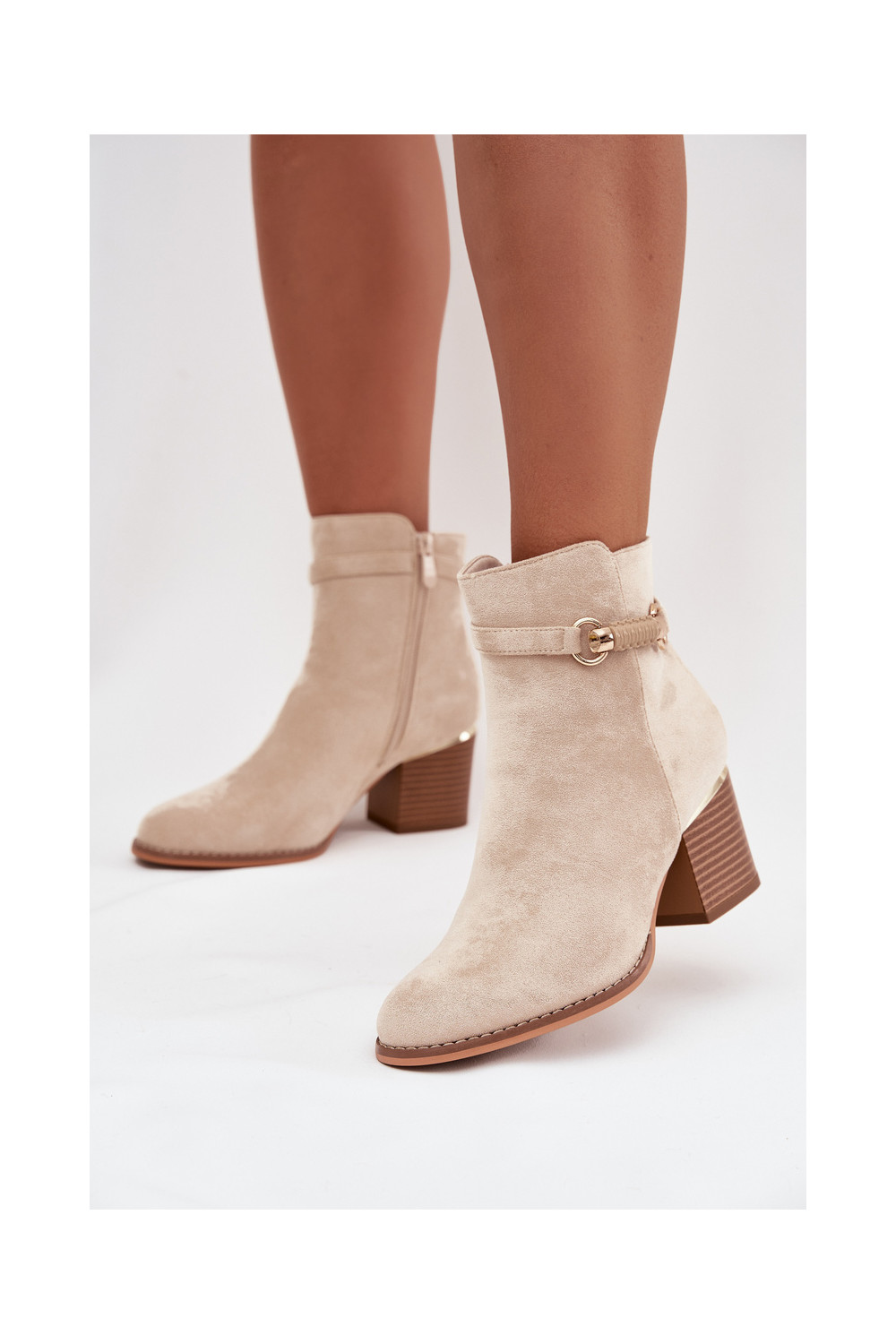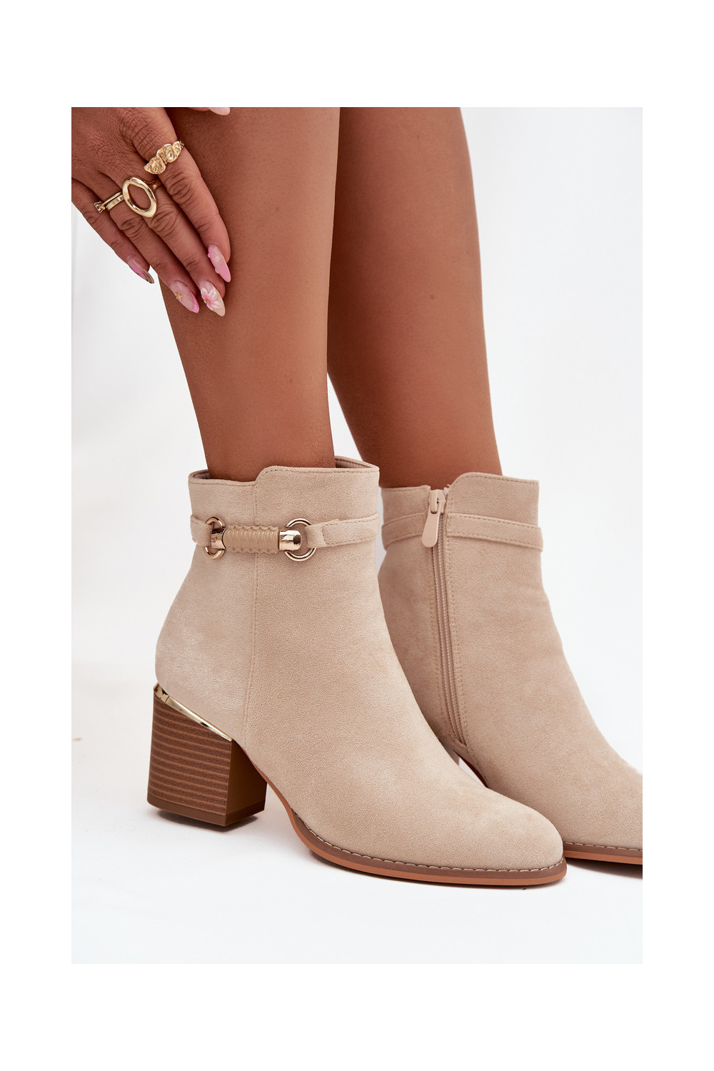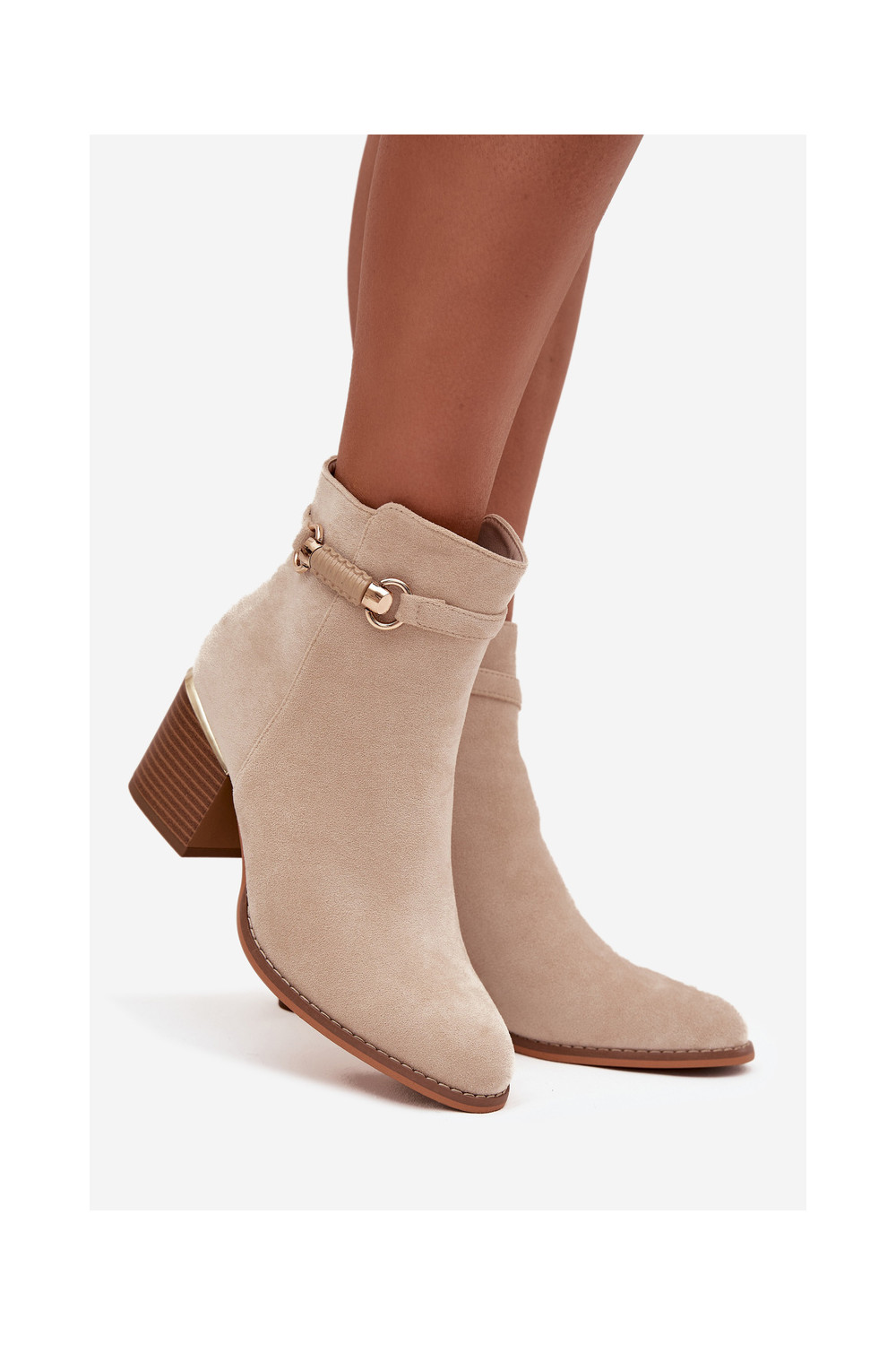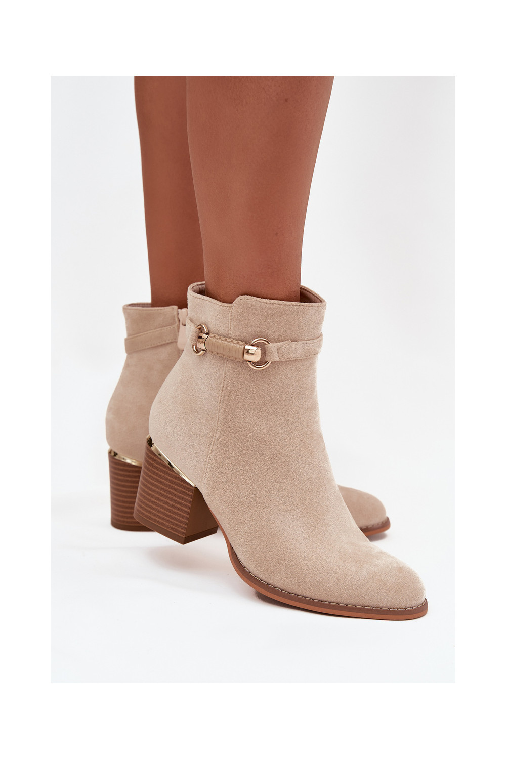 Galissa beežid pehmendatud saapad kontsade ja kaunistatud kontsadega