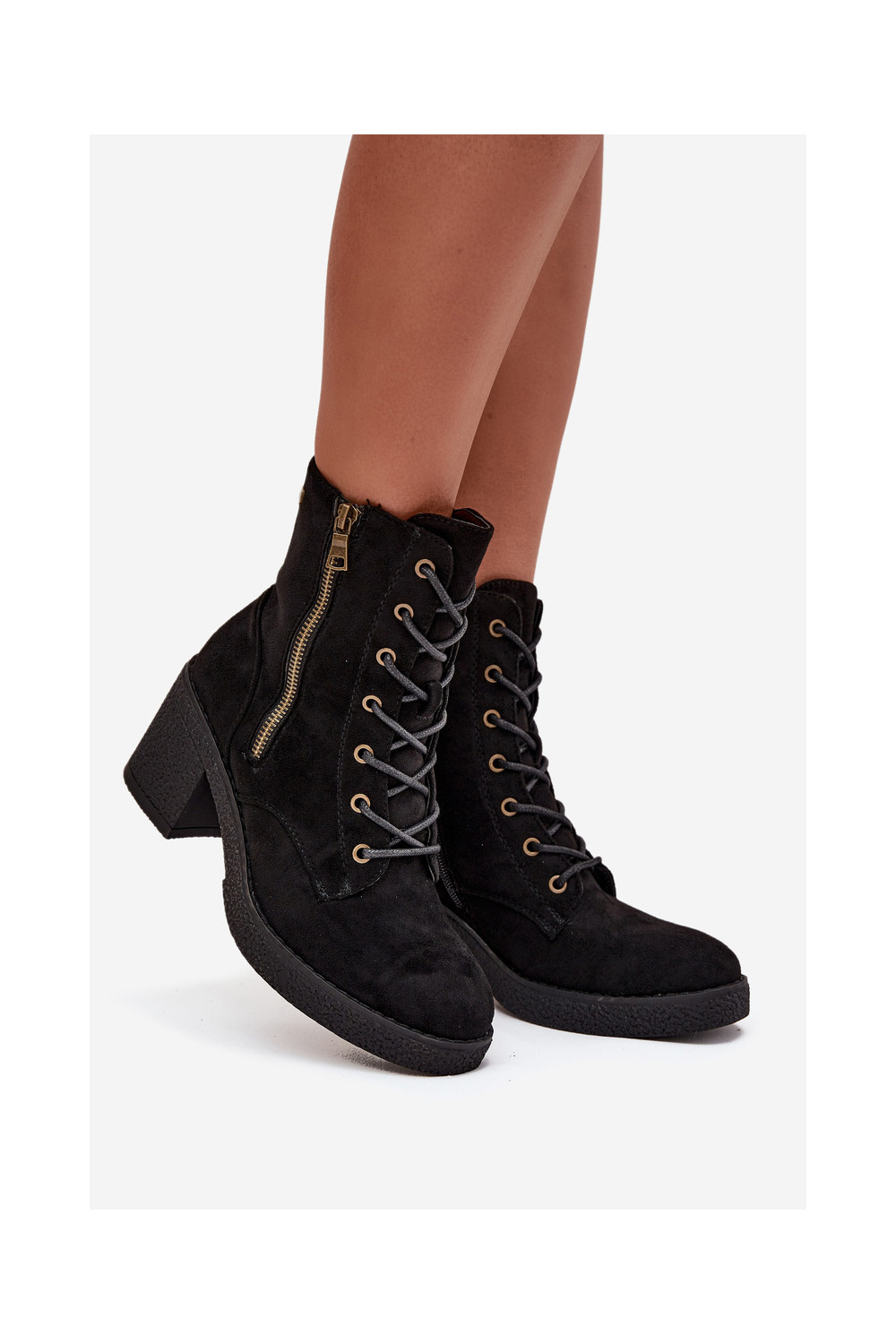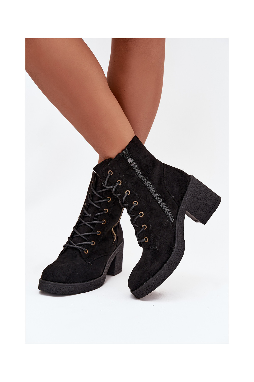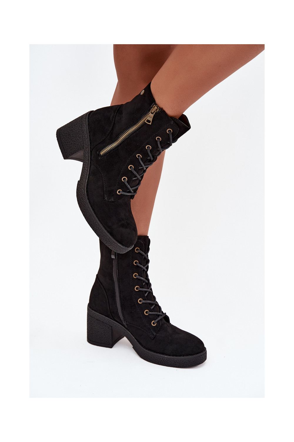Paressa mustad pehmendatud saapad lipsude ja lukudega