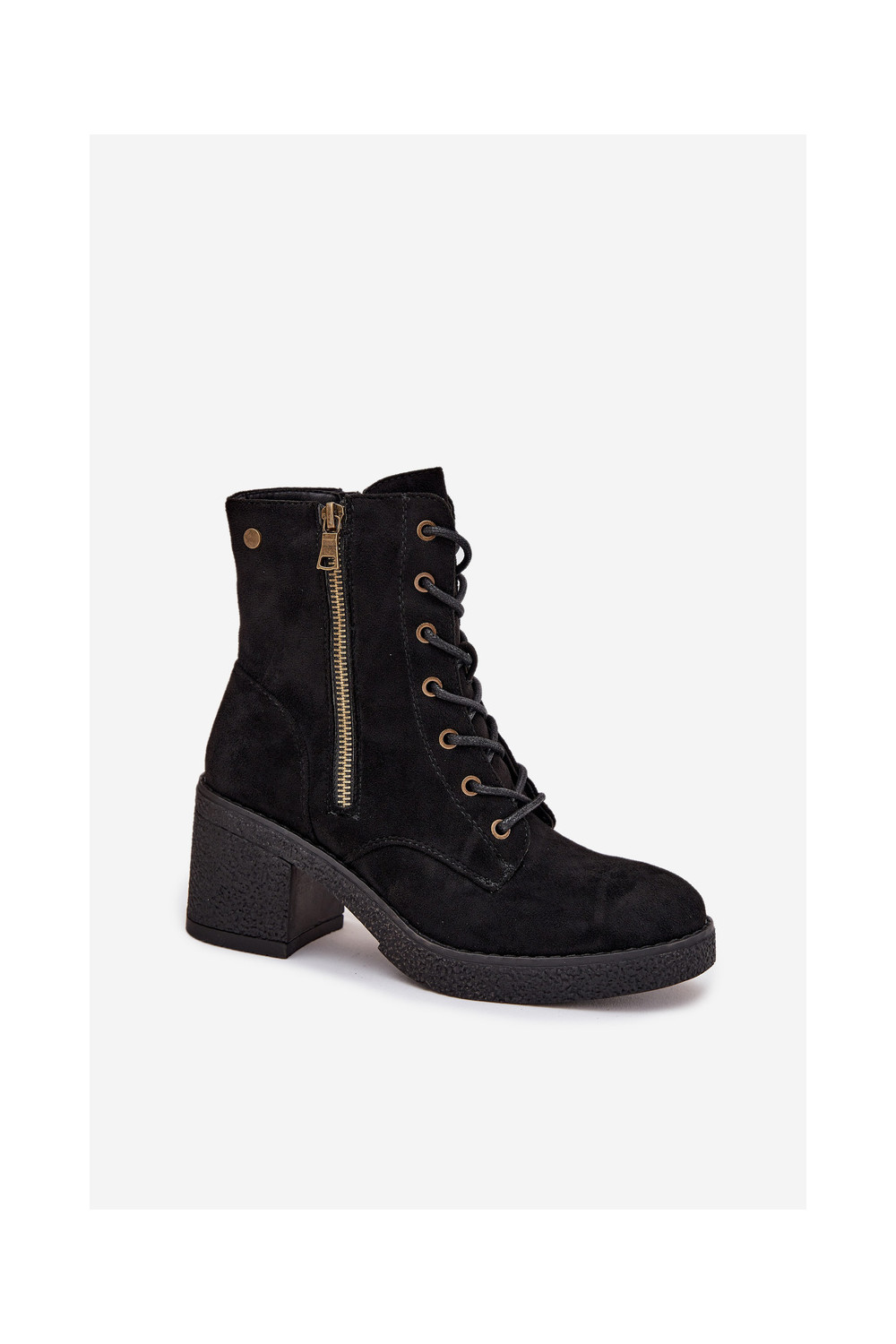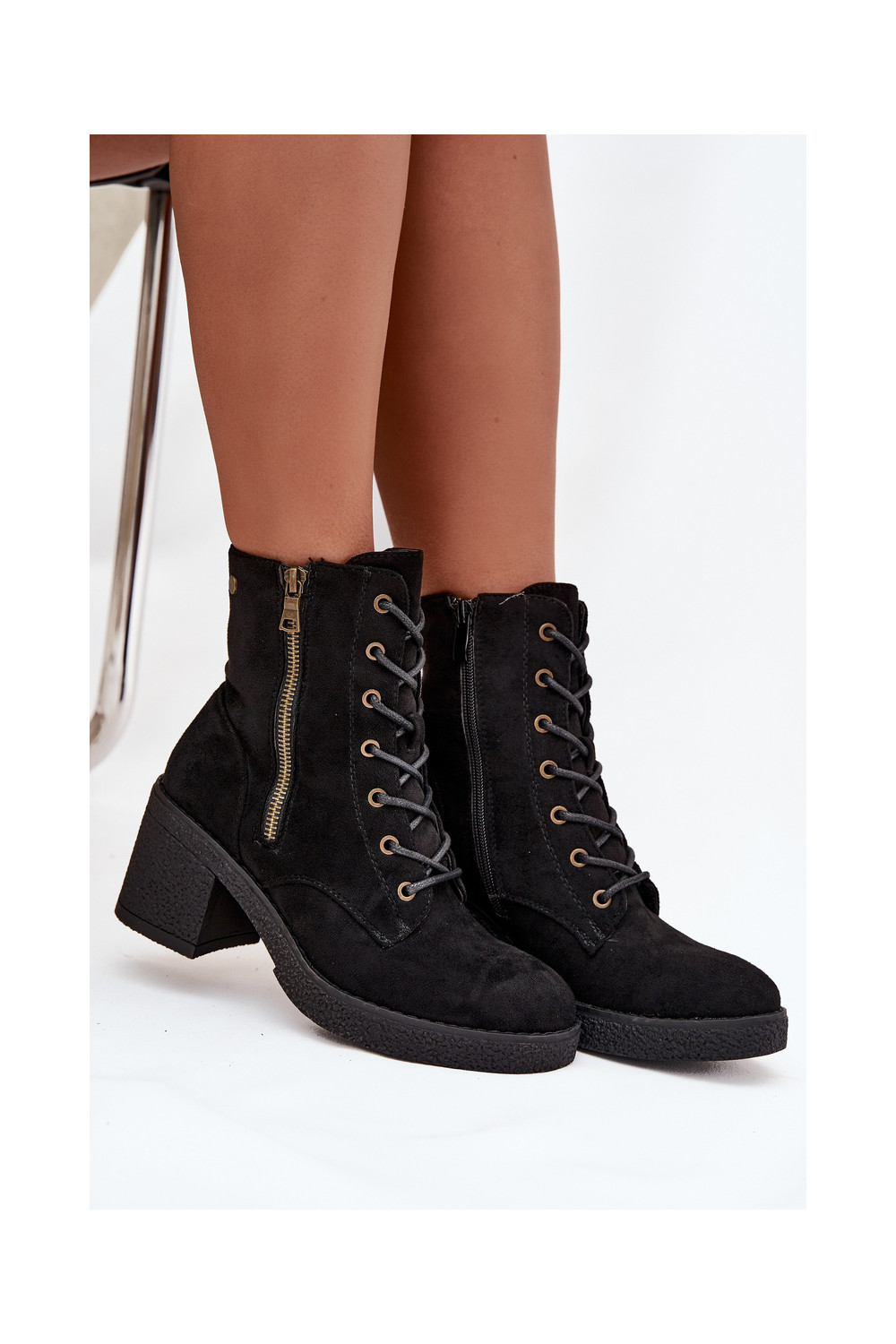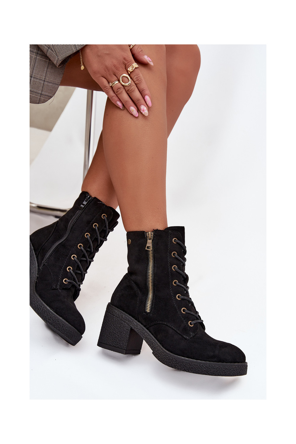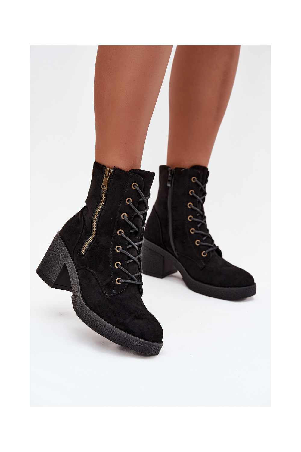 Paressa mustad pehmendatud saapad lipsude ja lukudega