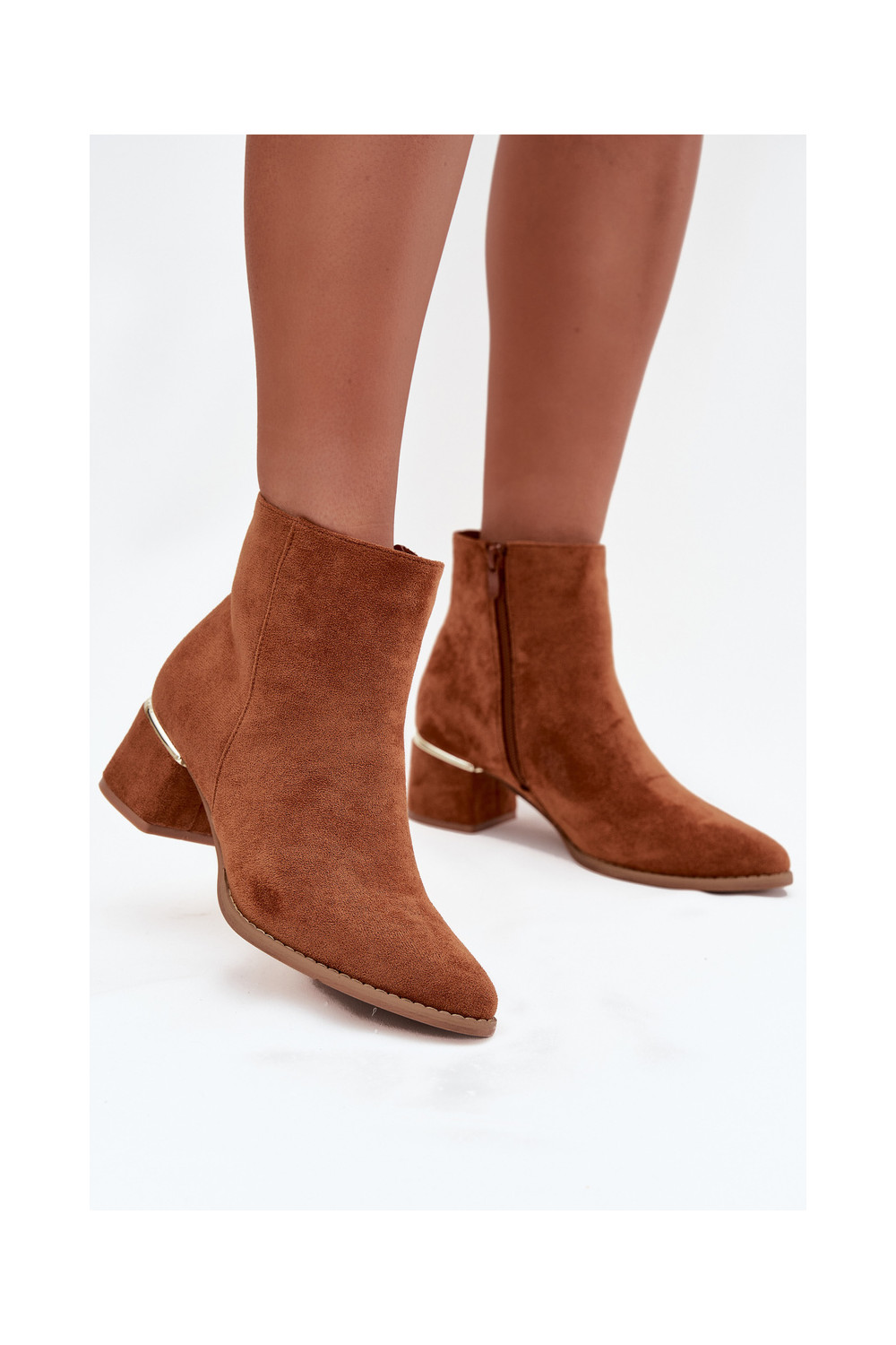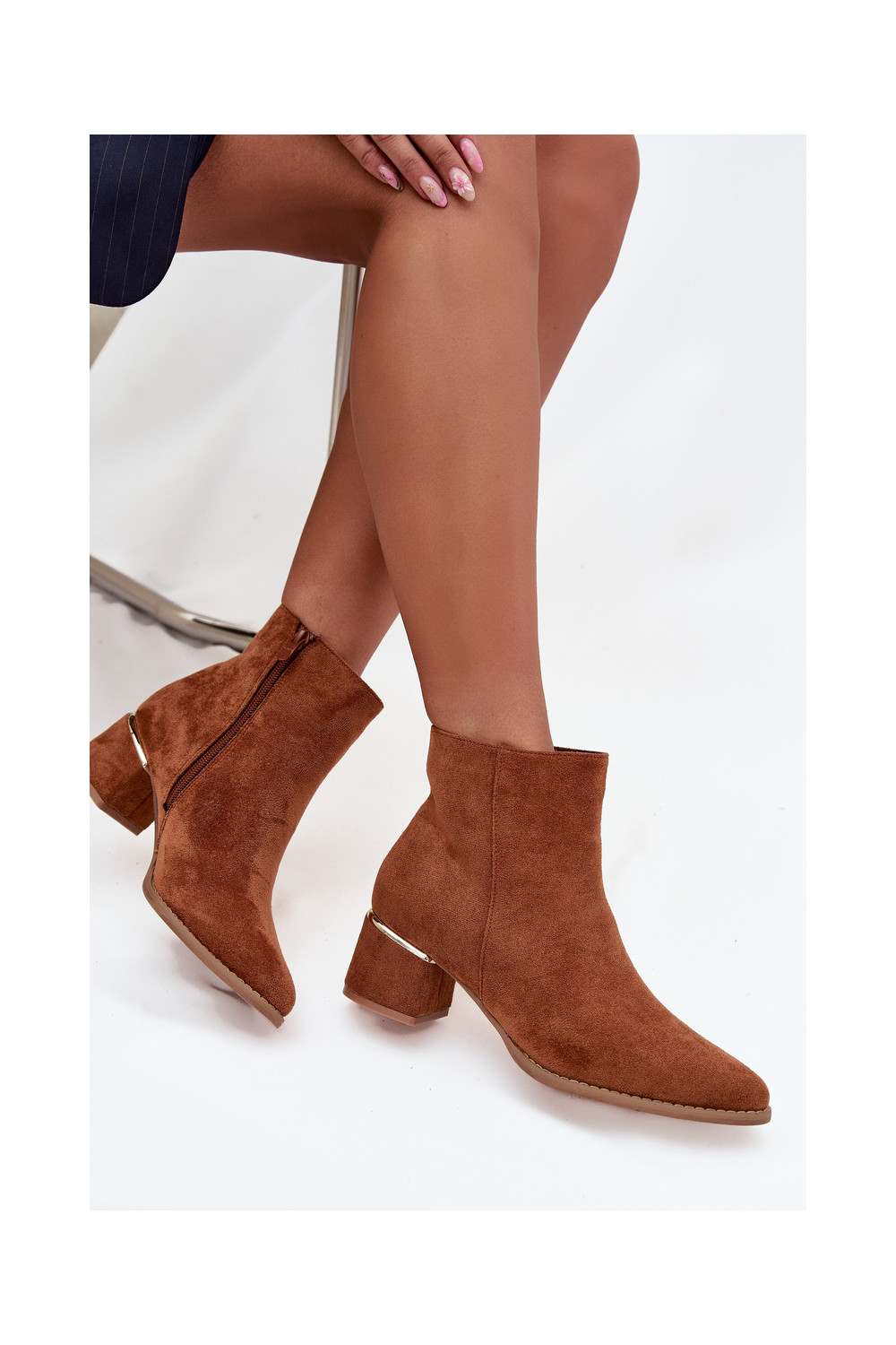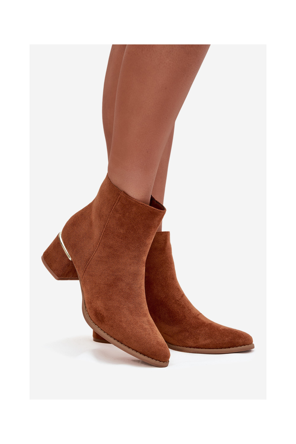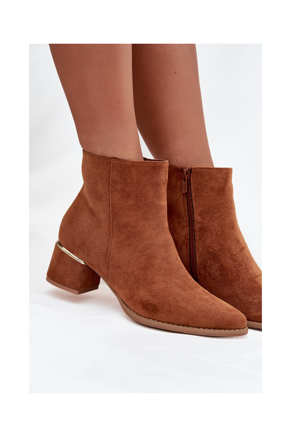 Nolessa pruunid pehmendatud saapad kontsade ja kuldsete elementidega