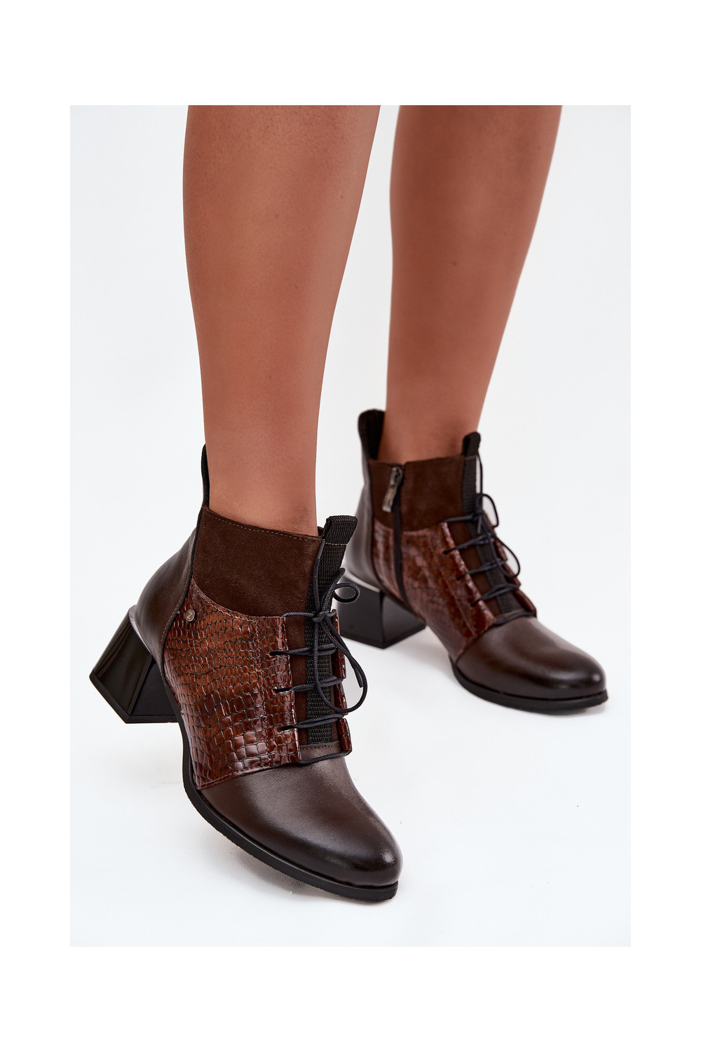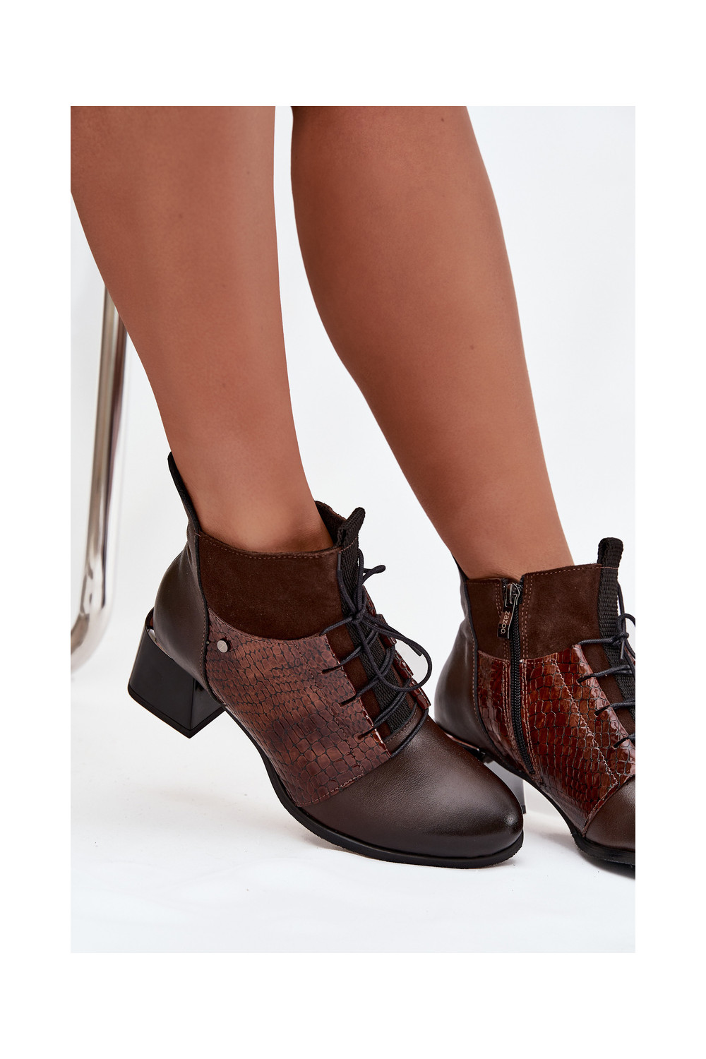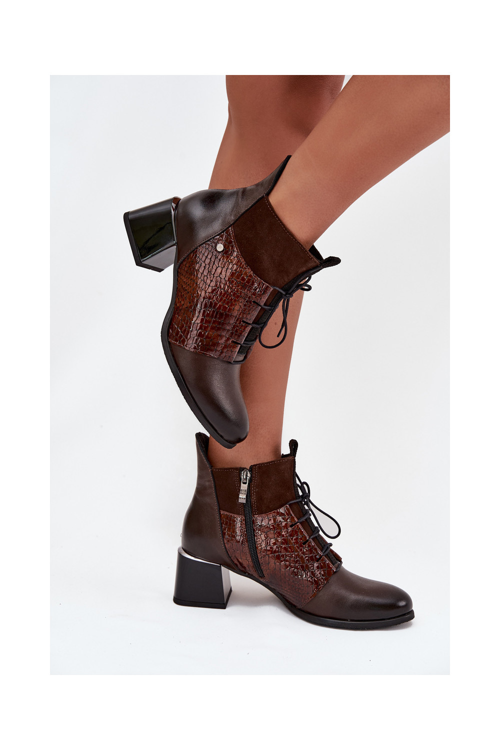 Šokolaadipruunid nahksed soojad saapad kontsadega Zazoo 60503