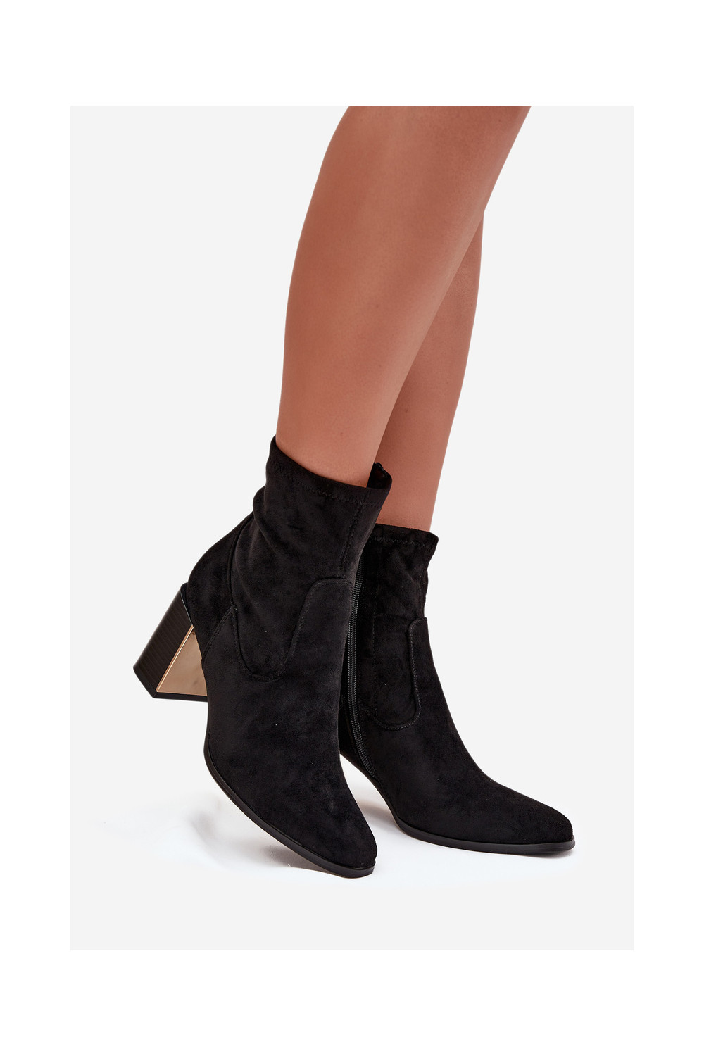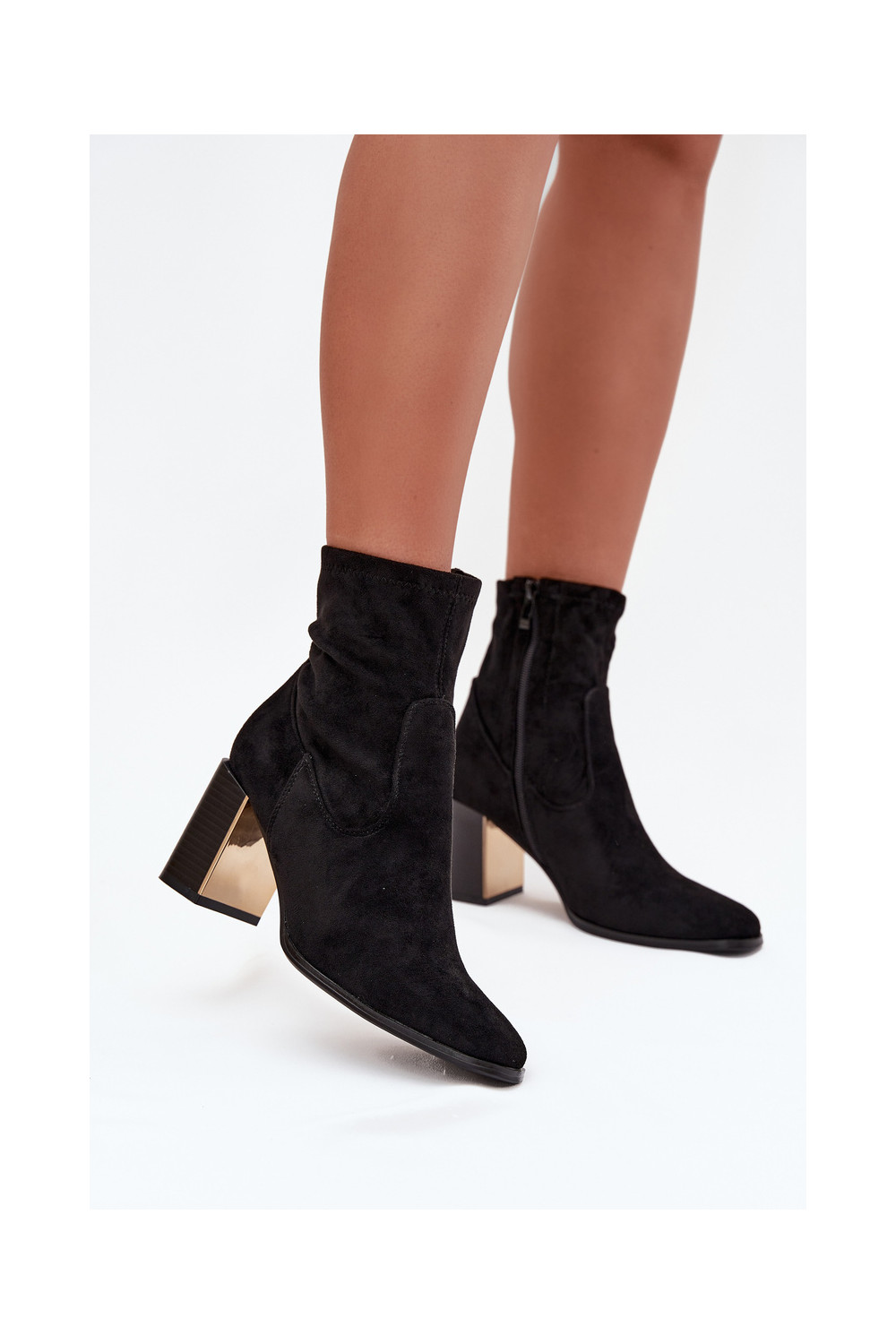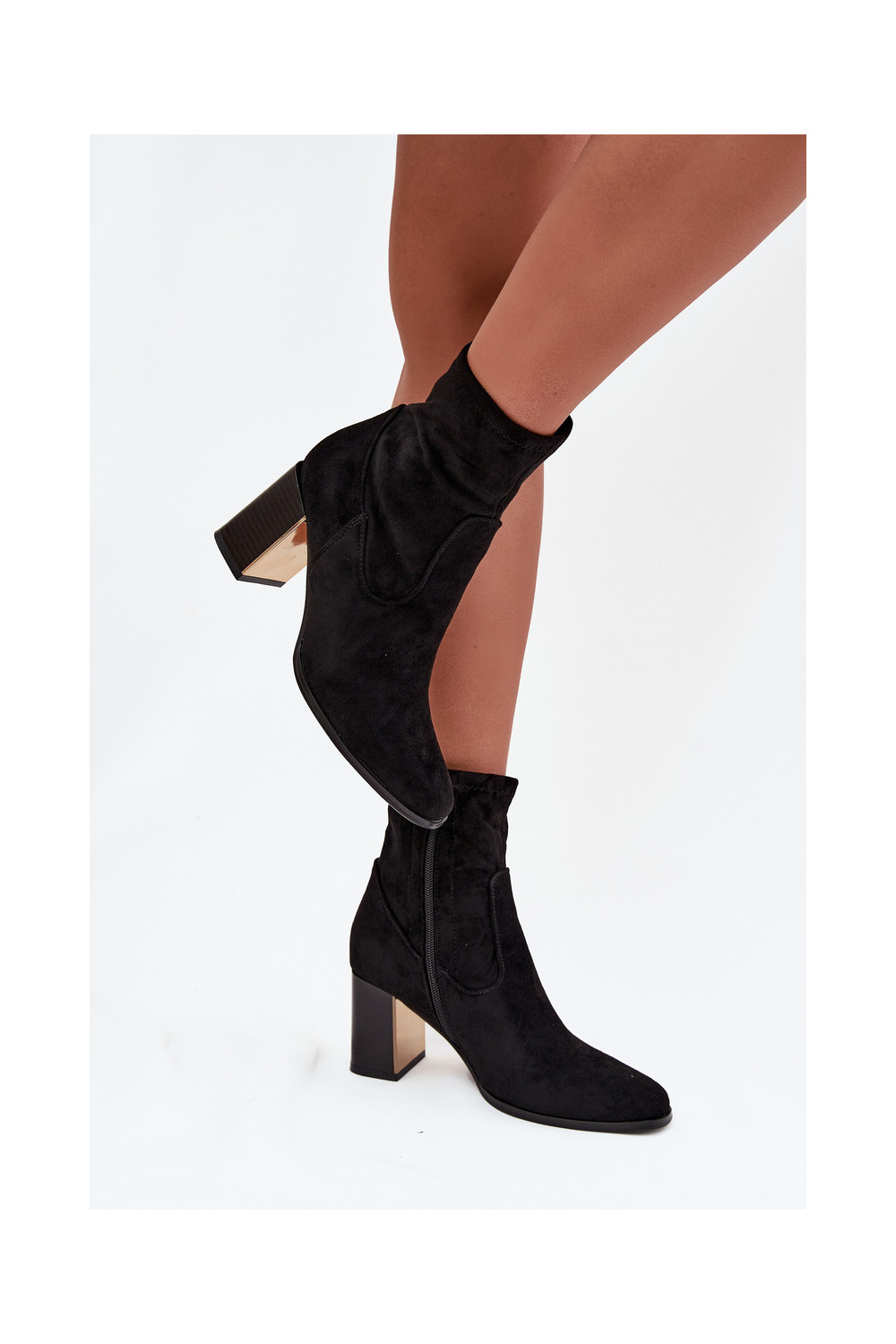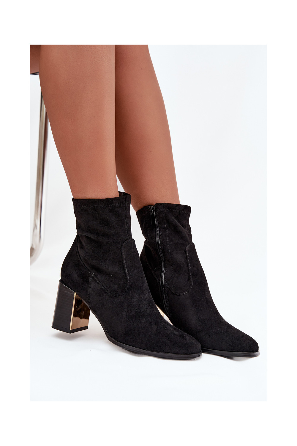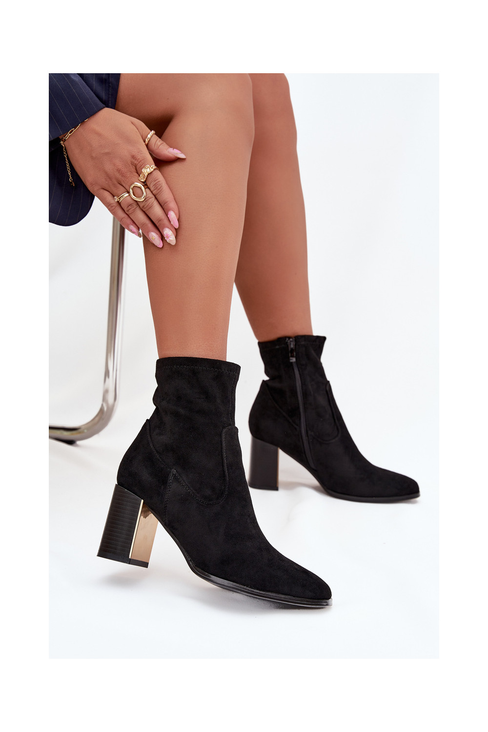 Mustad naiste saapad kuldsete elementidega, soojad Amelisse
