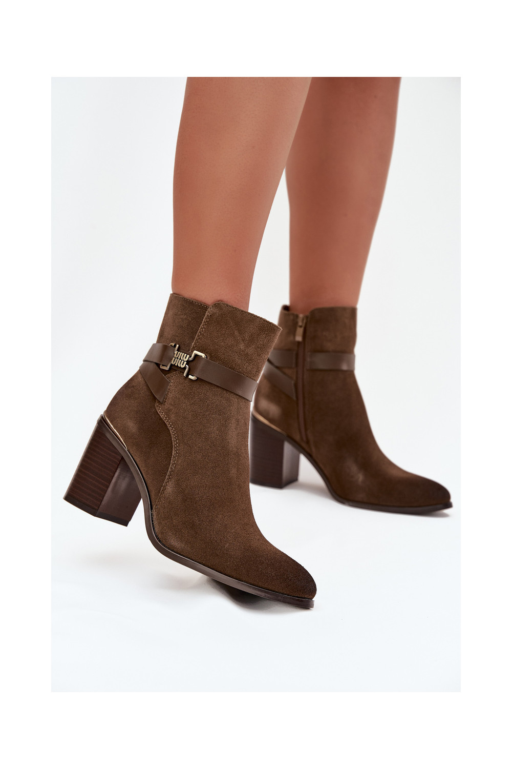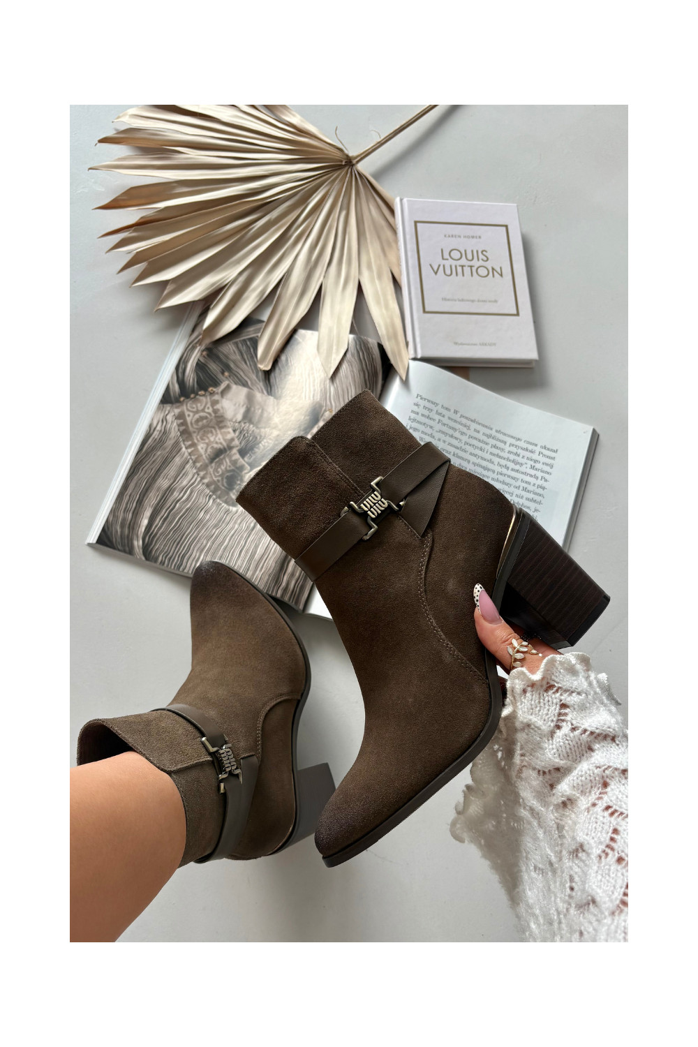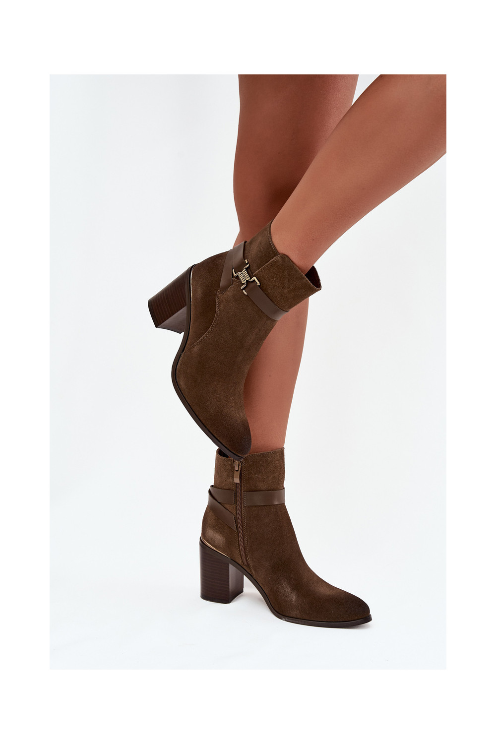 Khaki naiste soojad sametised saapad kontsadega naturaalsest nahast Sergio Leone BT25384-S