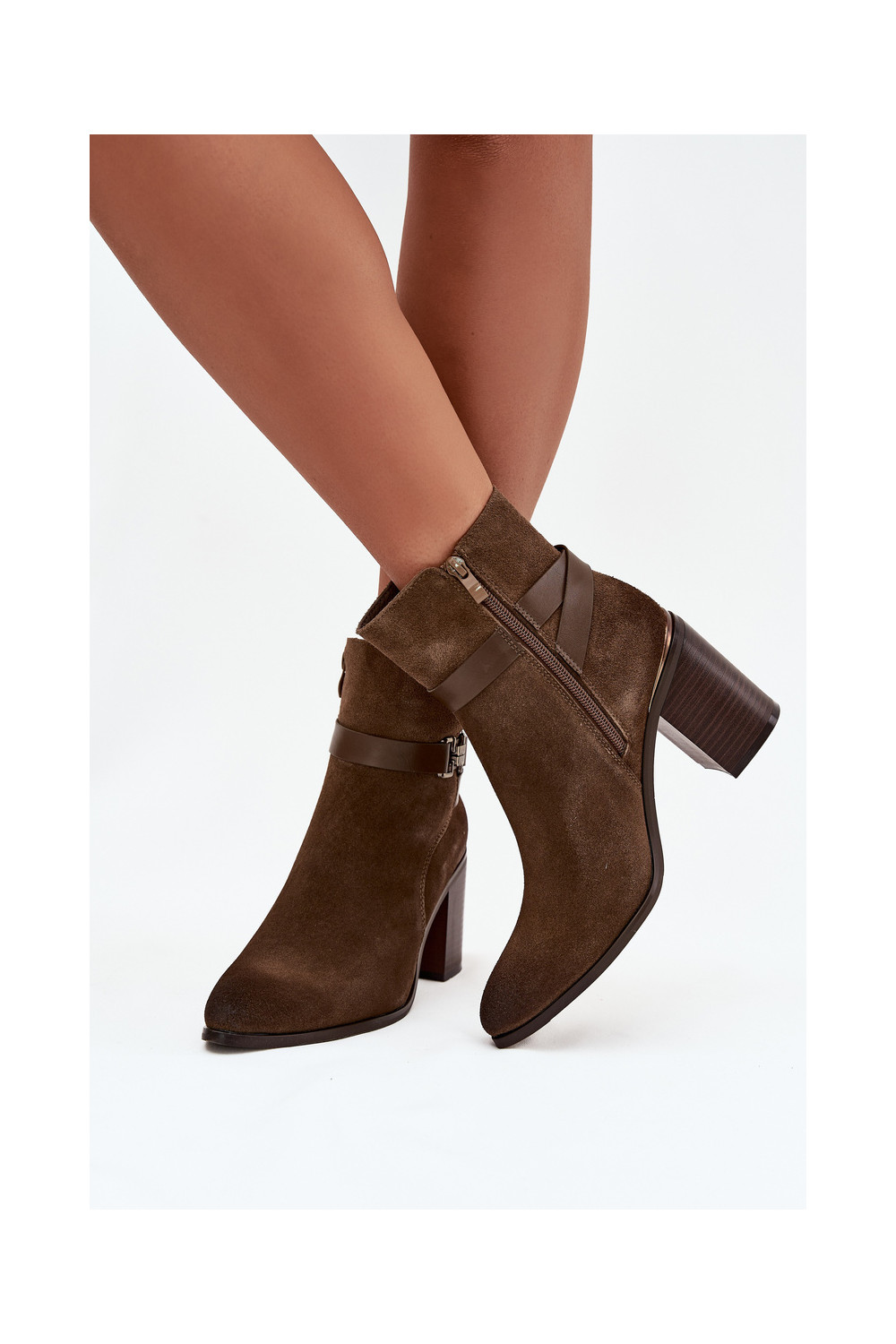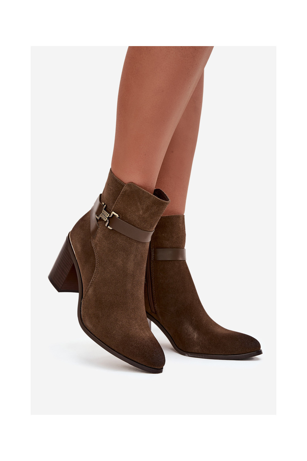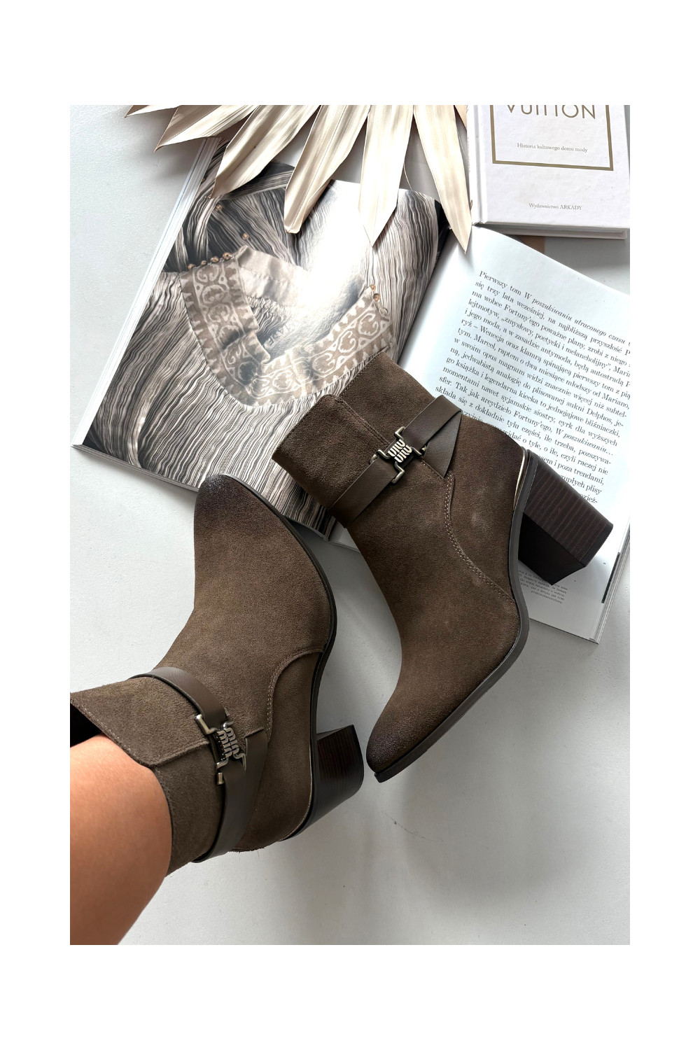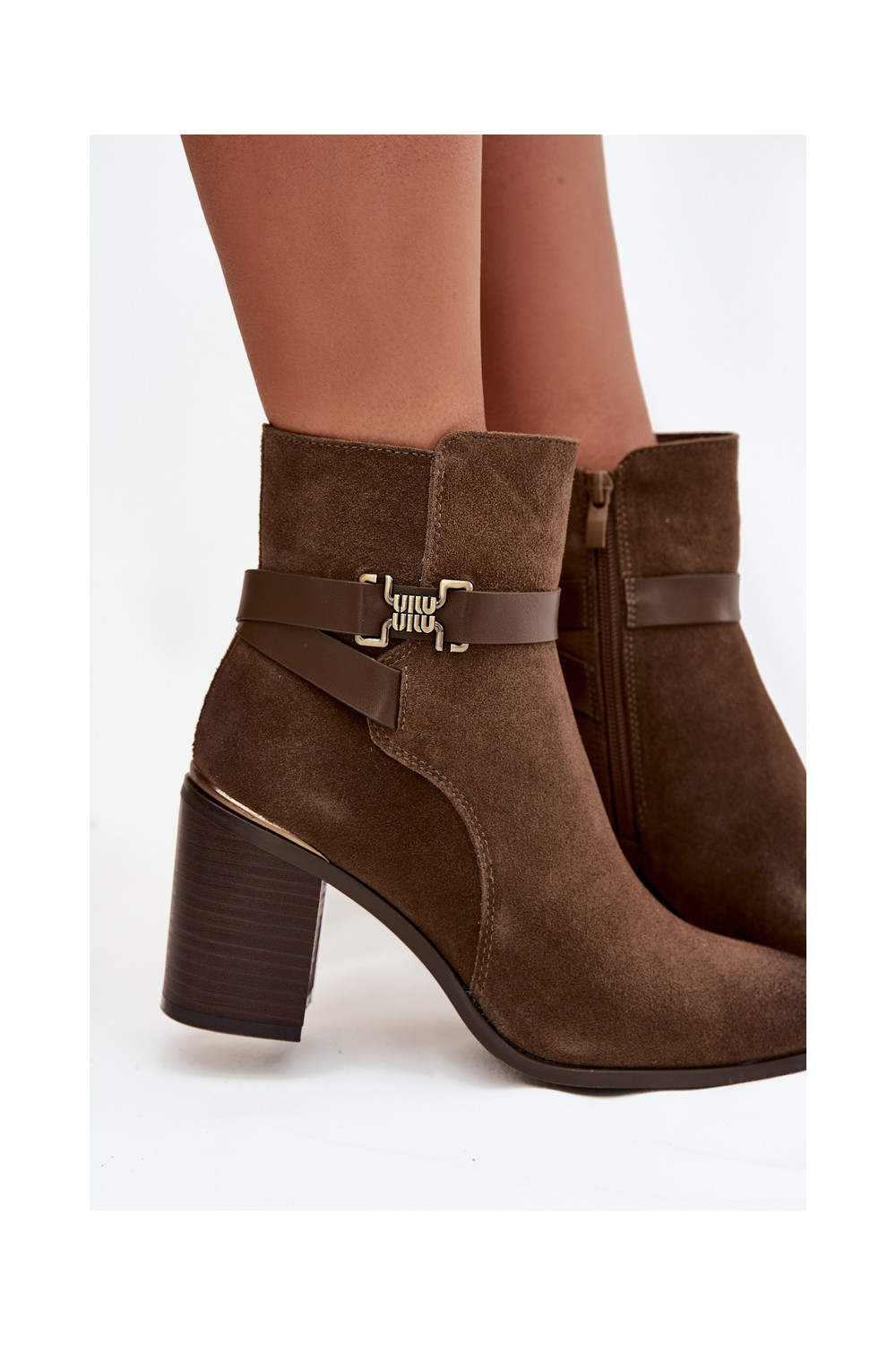 Khaki naiste soojad sametised saapad kontsadega naturaalsest nahast Sergio Leone BT25384-S