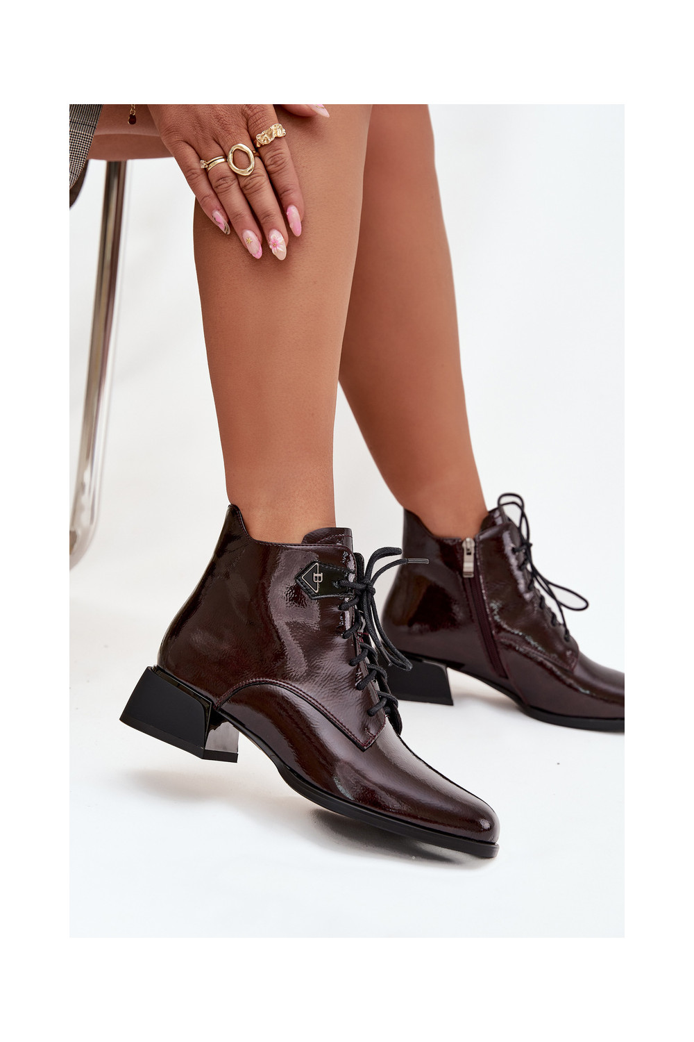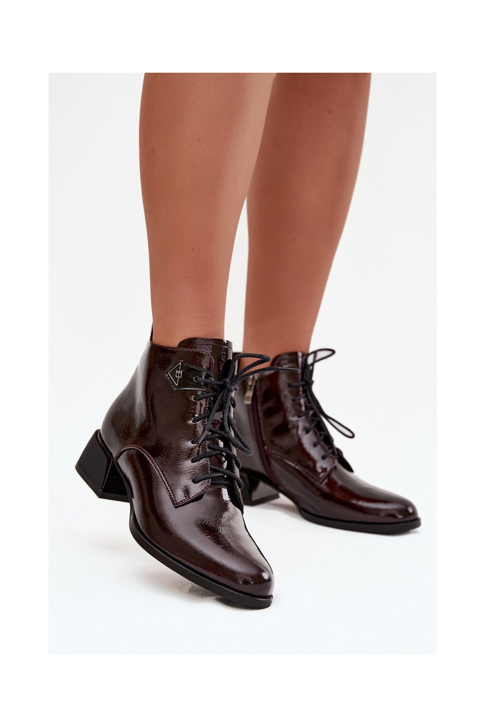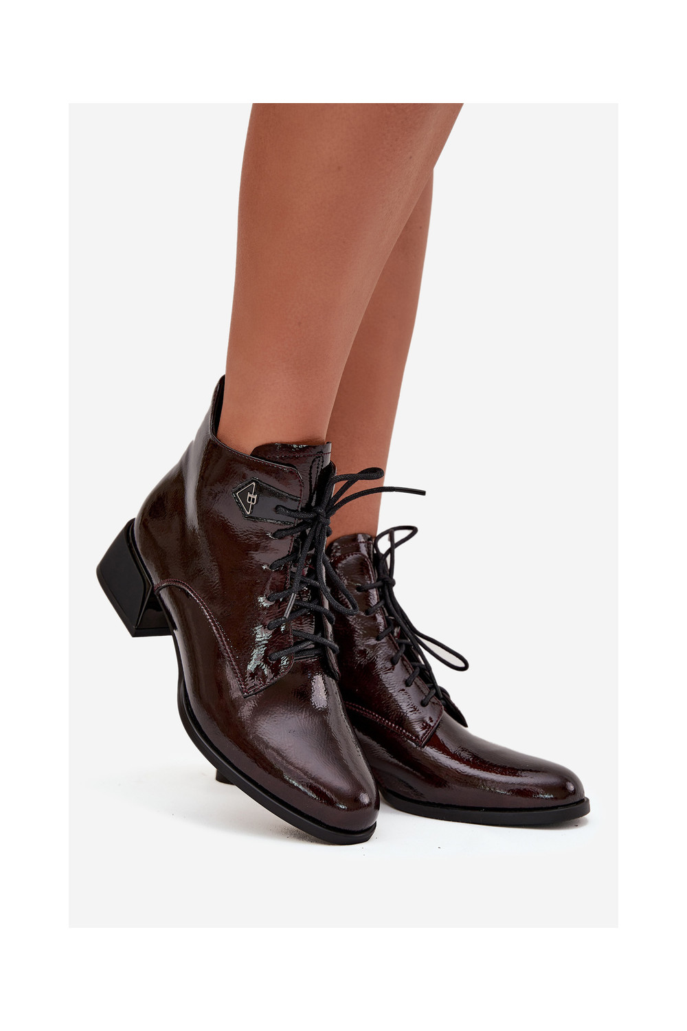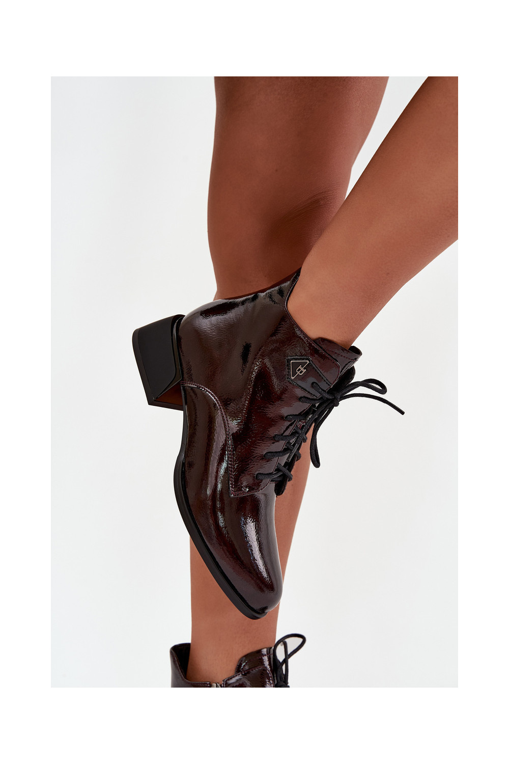 Naisterikkad saapad nahast lakiefektiga Artiker 57C1119 bordoopunased