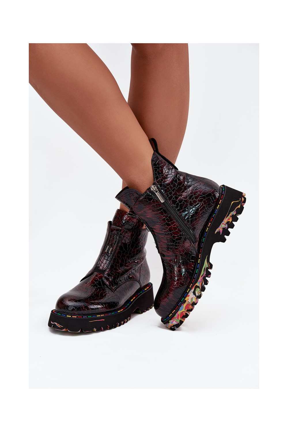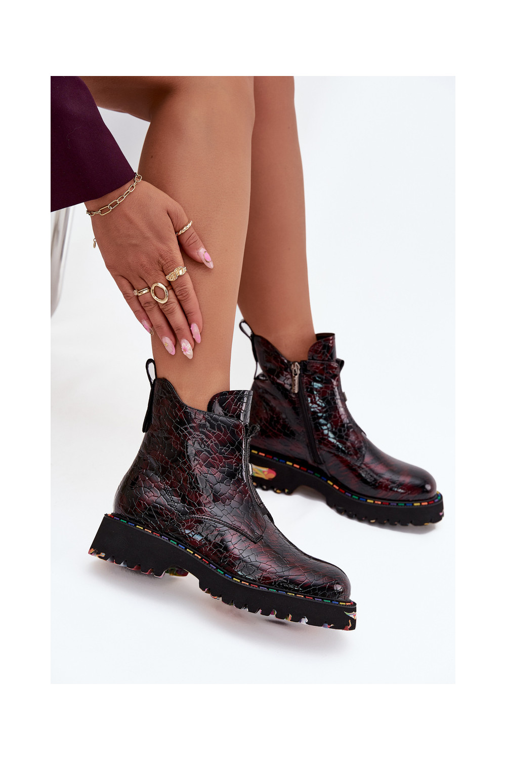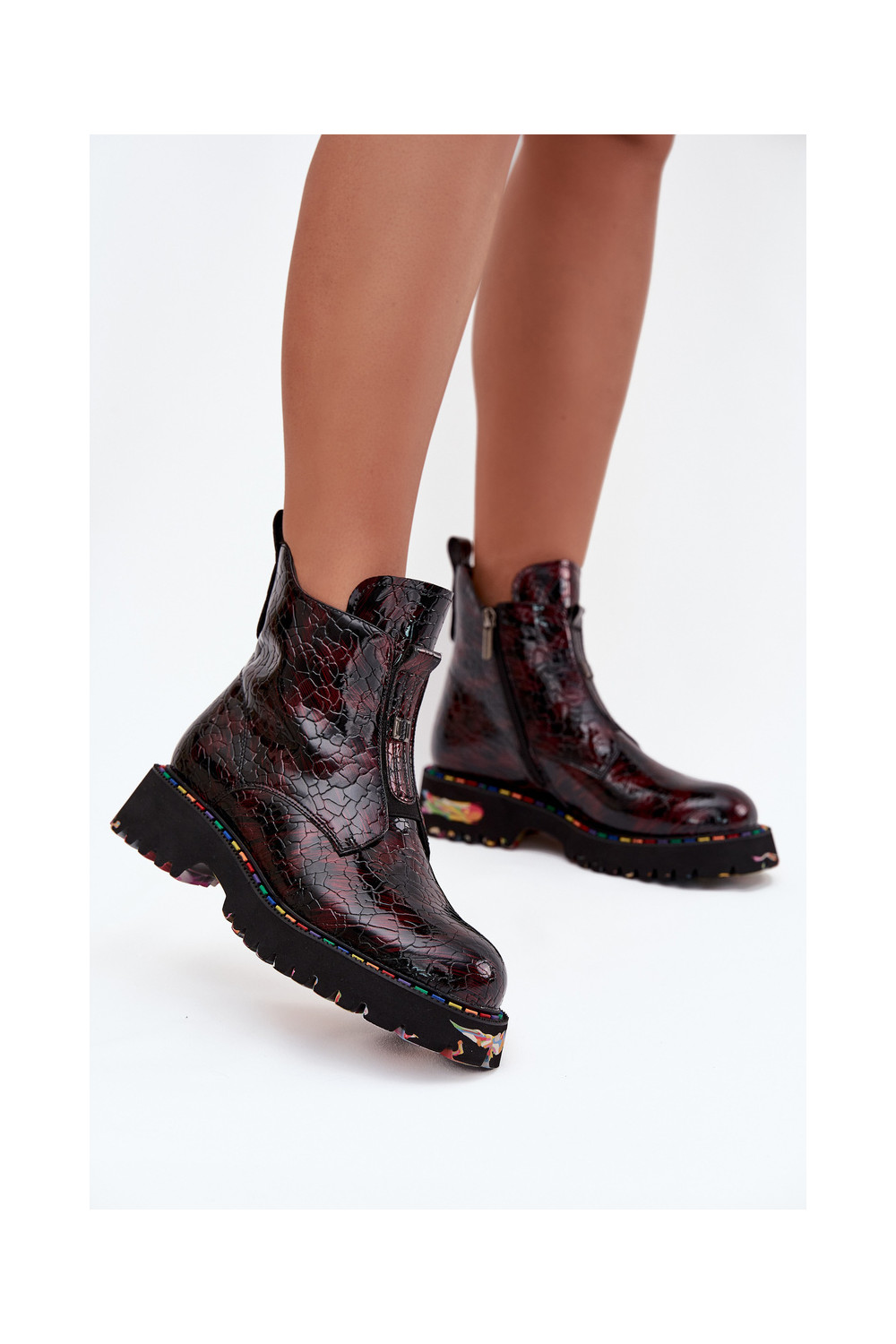 Soojustatud naisteriiklikud saapad naturaalnahast lakiefektiga Artiker 57C0165 bordoopunased
