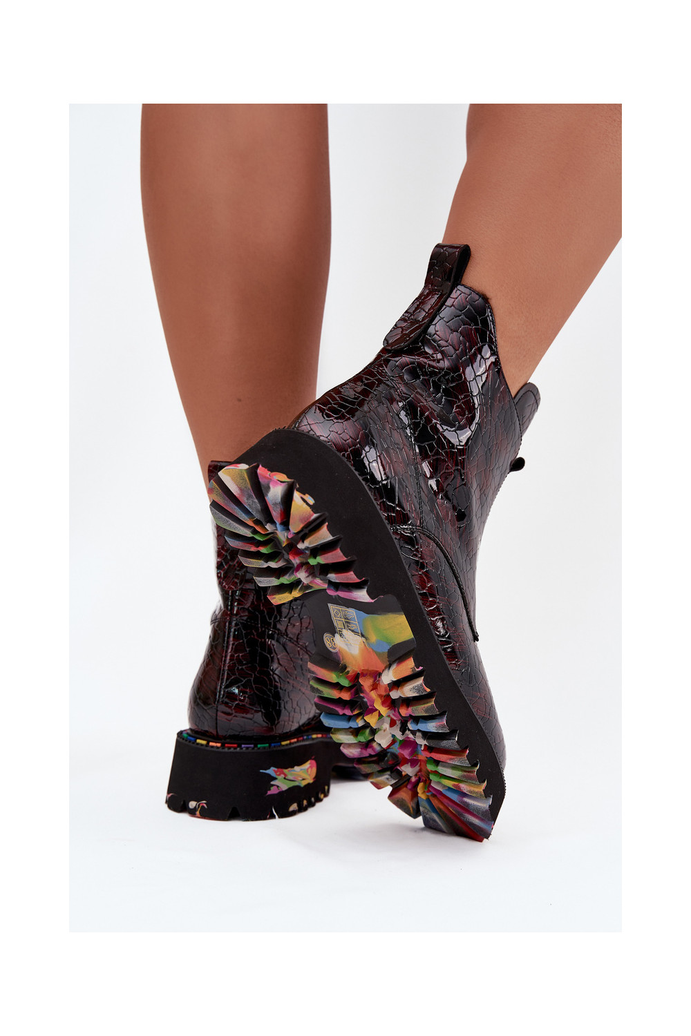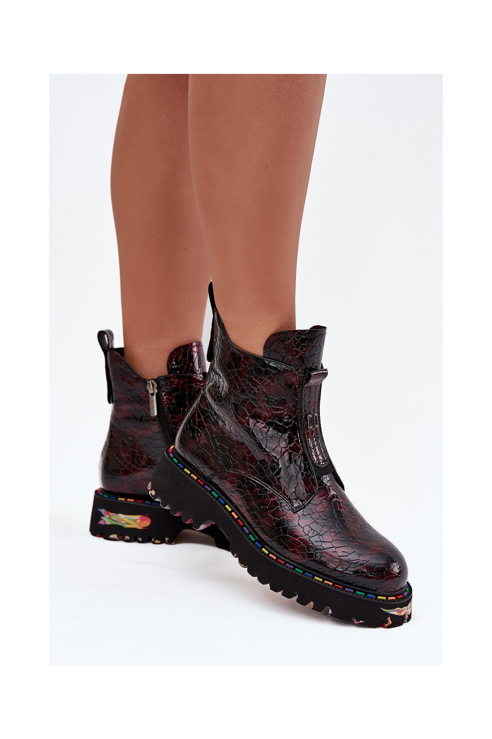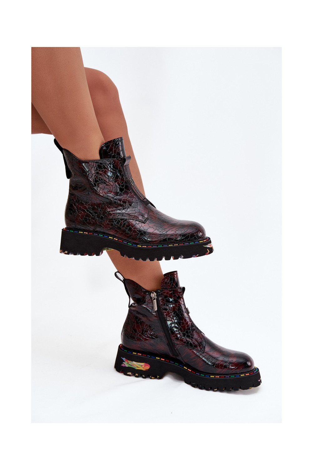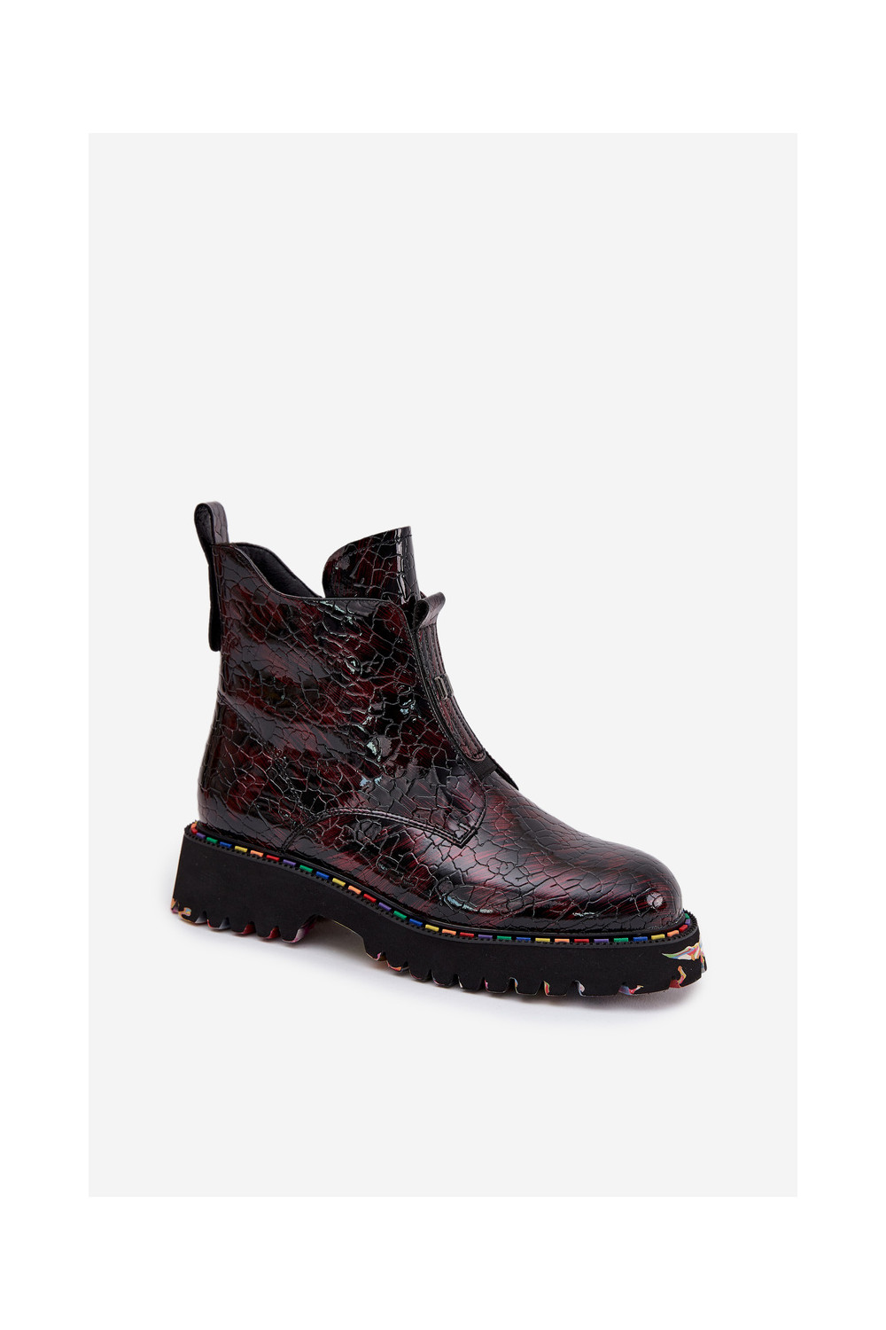 Soojustatud naisteriiklikud saapad naturaalnahast lakiefektiga Artiker 57C0165 bordoopunased