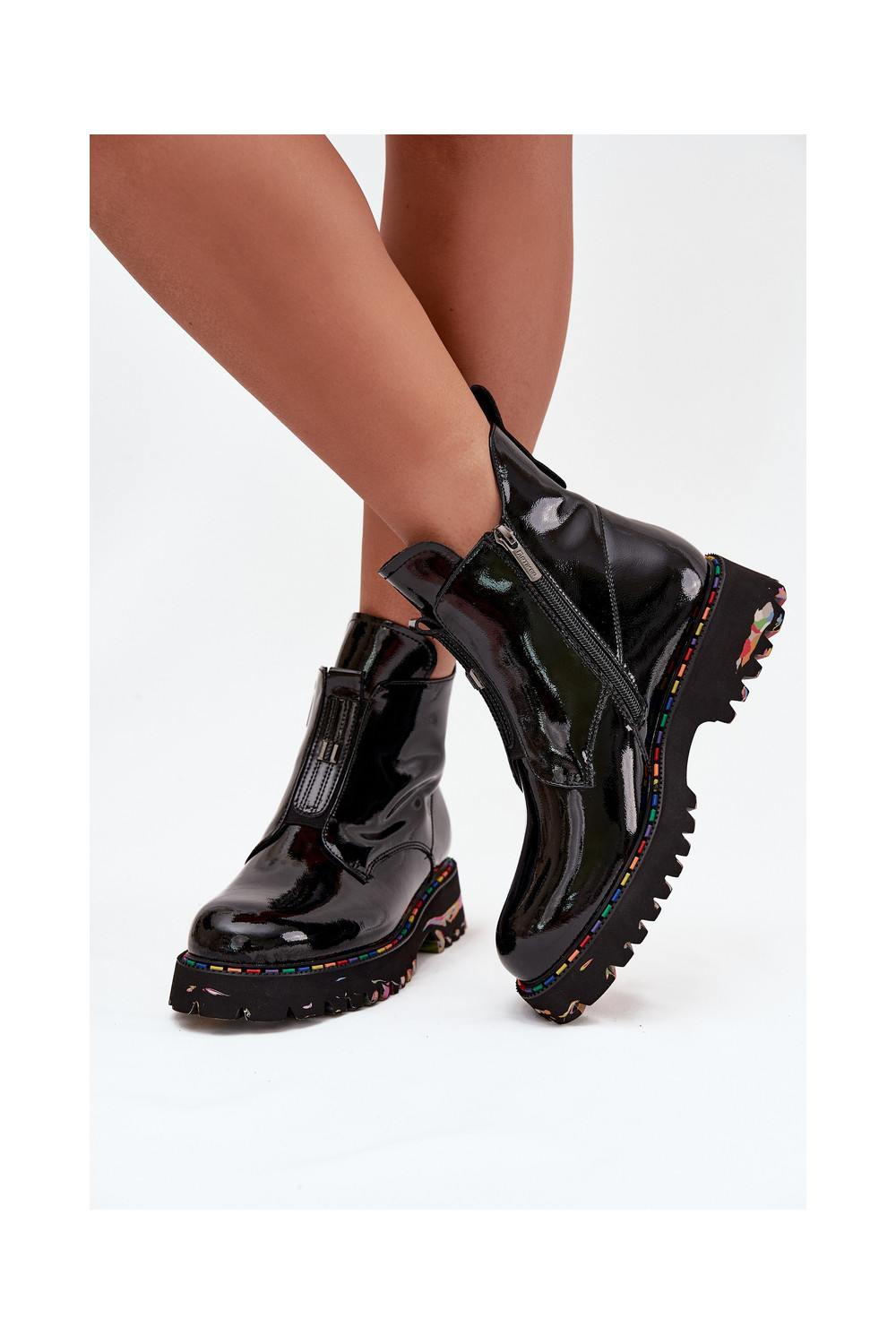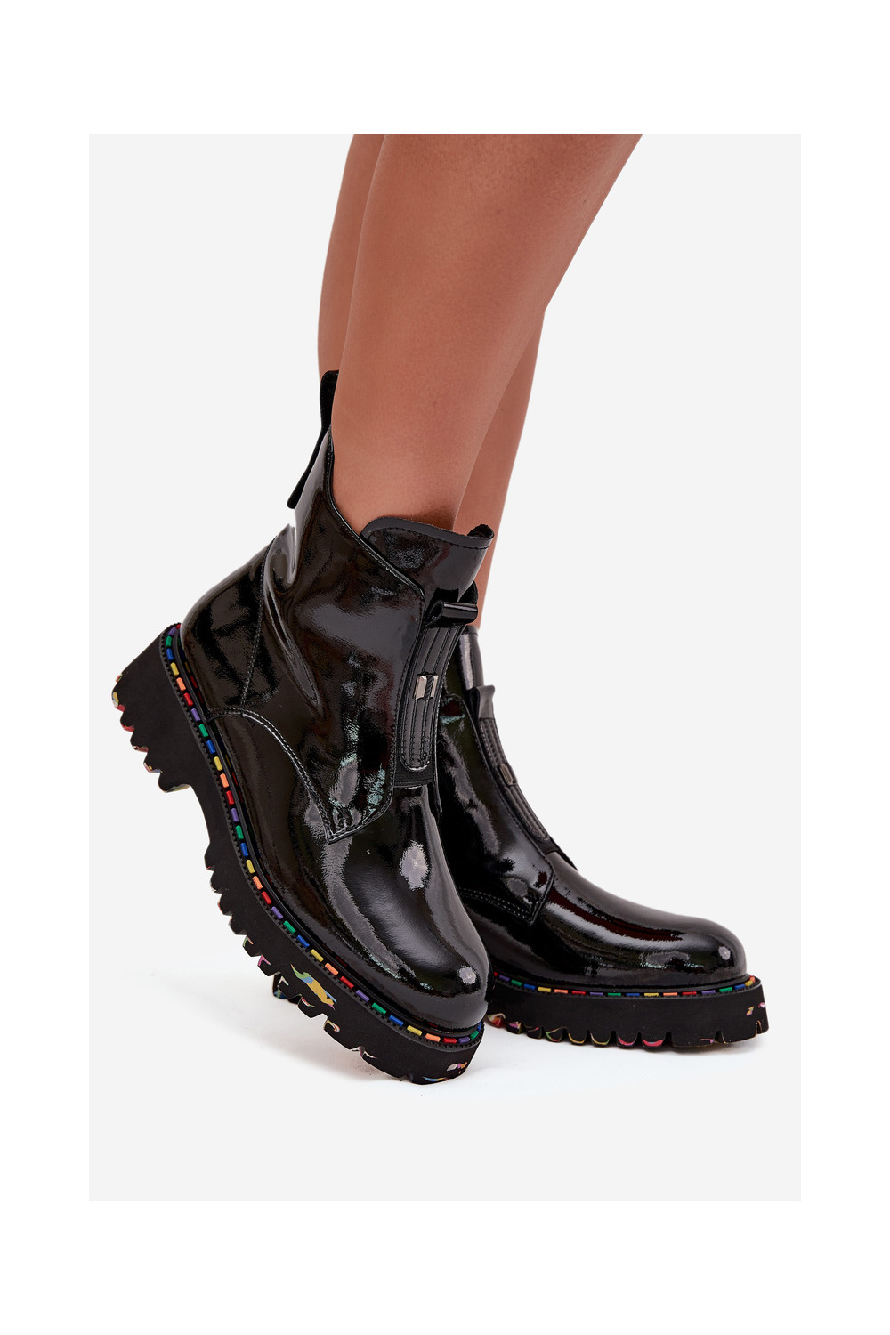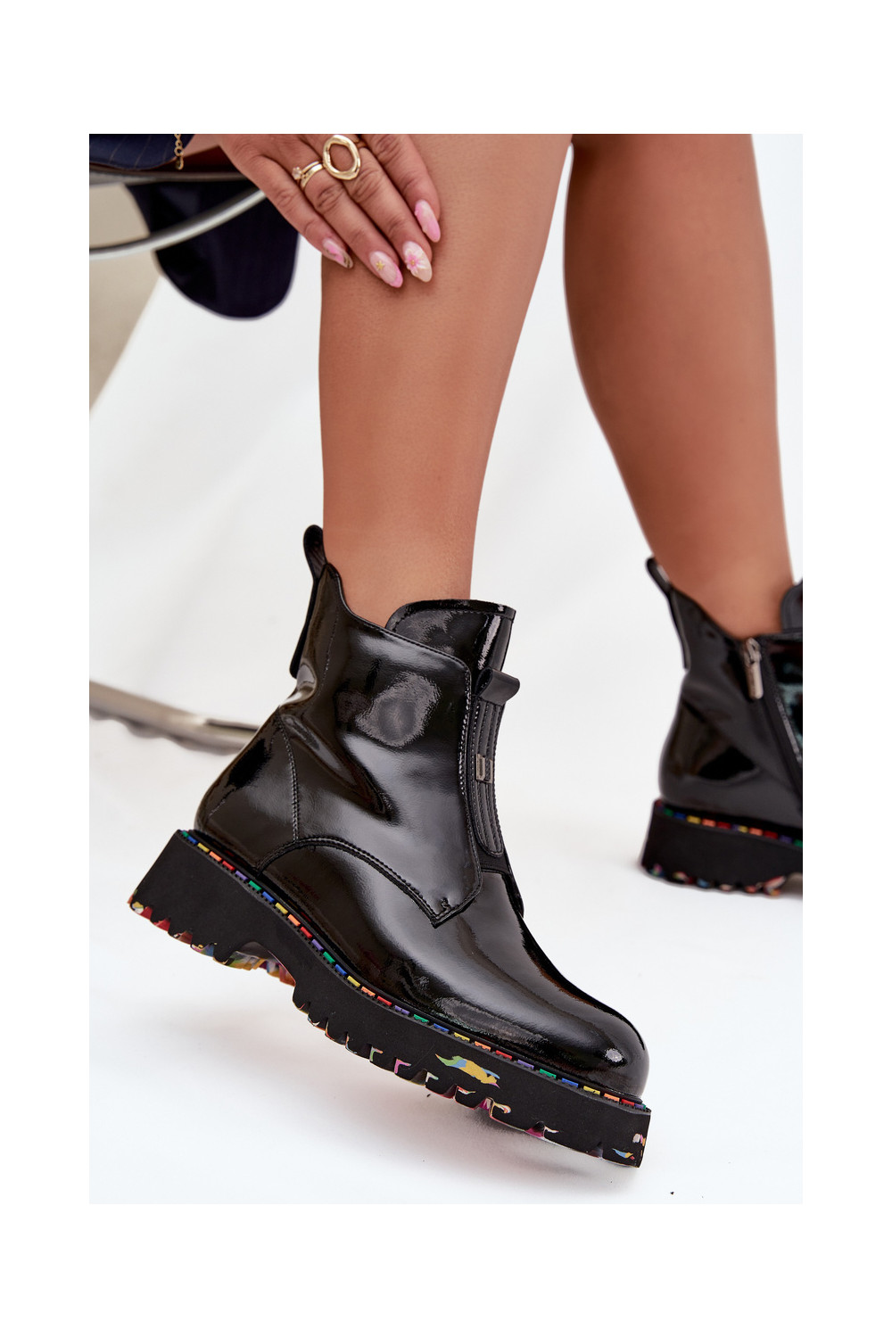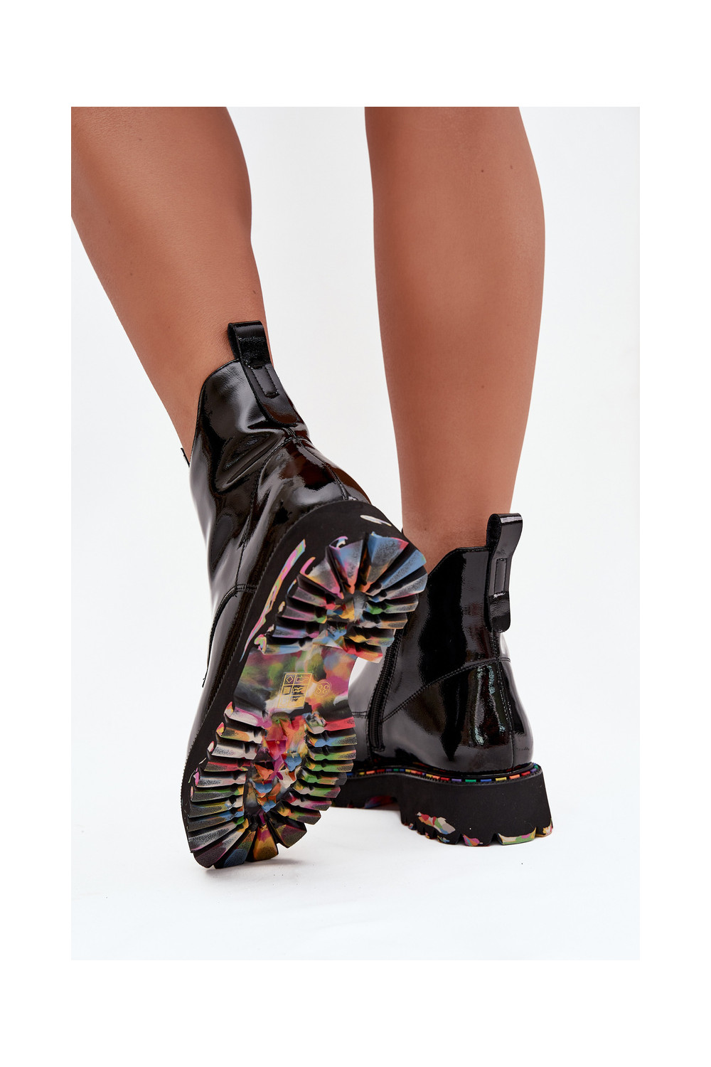 Soojustatud naisteriiklikud saapad naturaalnahast lakiefektiga Artiker 57C0166 mustad